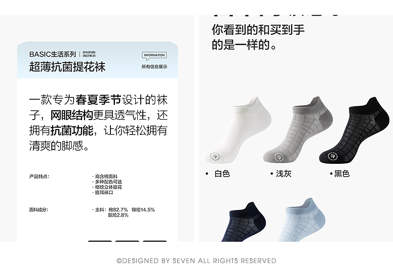 柒牌男士提耳袜子夏季薄款短袜格纹休闲百搭男式防臭抗菌透气男袜 126F70320