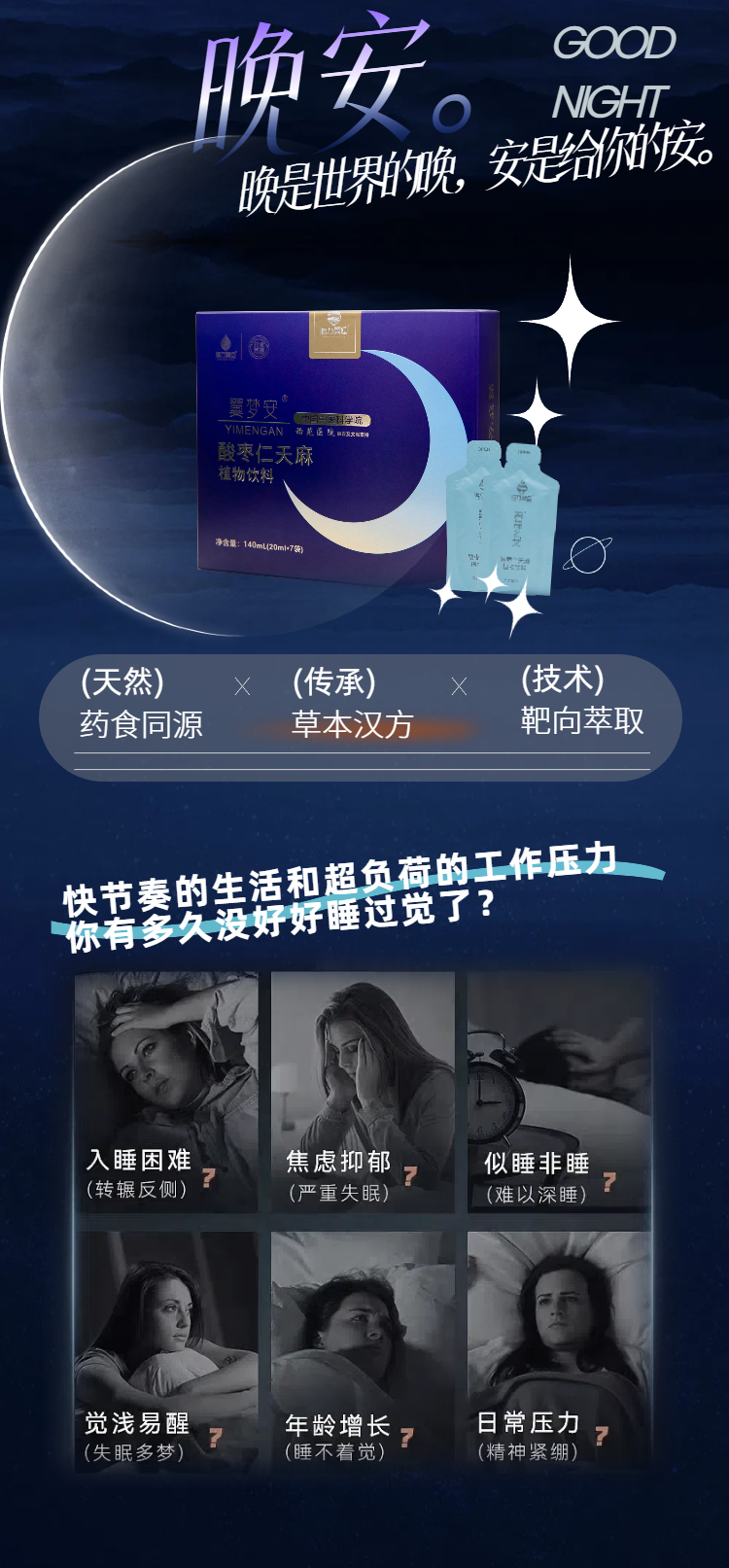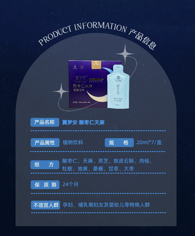 活动【膳方翼堂】翼梦安 酸枣仁天麻植物饮料 140ml(20ml*7袋)