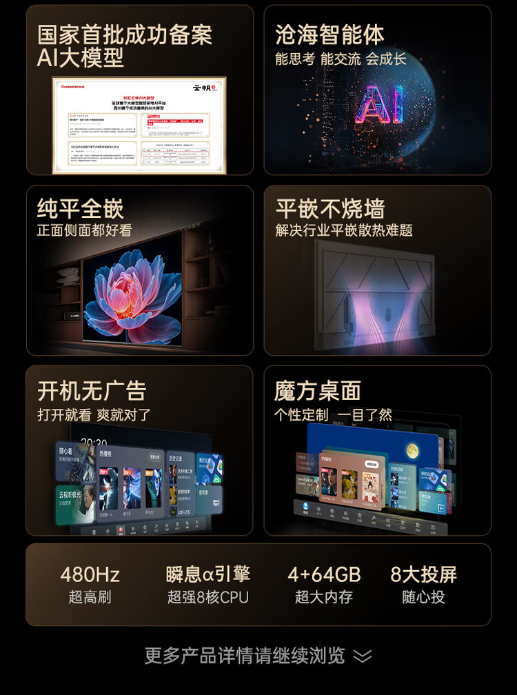 长虹电视85X90H 85英寸MiniLED 4K家庭观影K歌王液晶平板电视机 一级能效 家电以旧换新