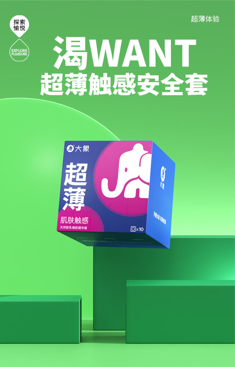 大象避孕套20只装 超薄男用成人计生用品情趣安全套超薄超润款