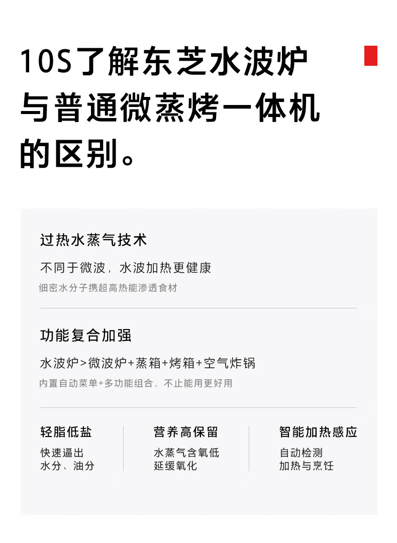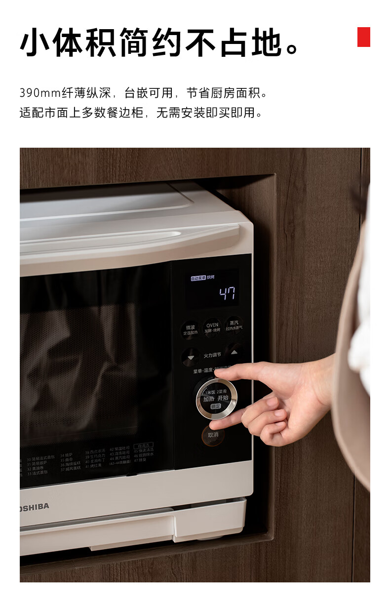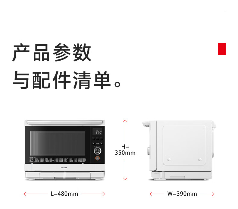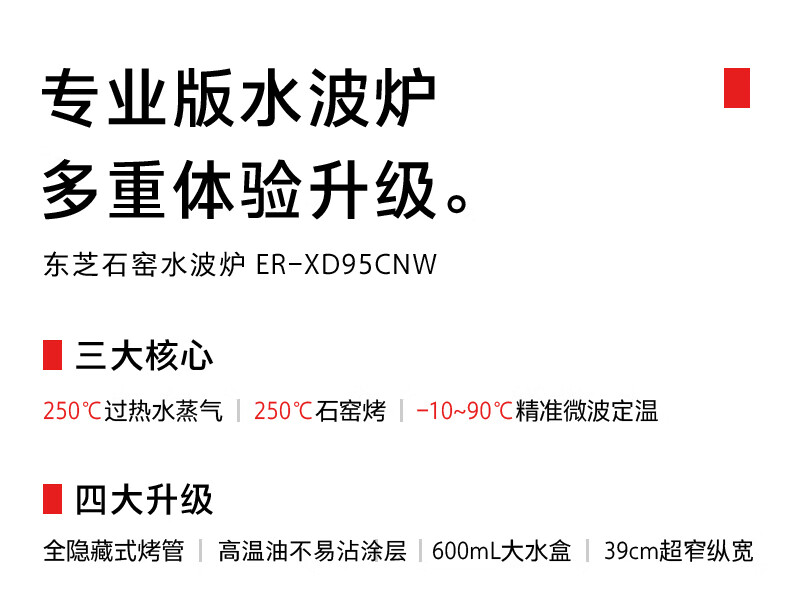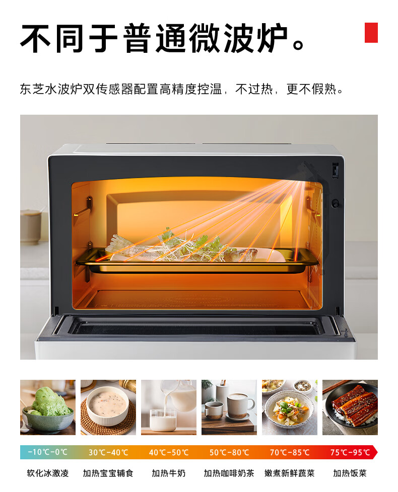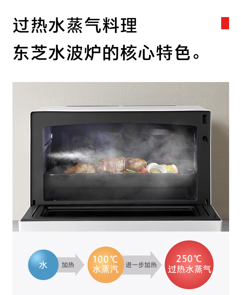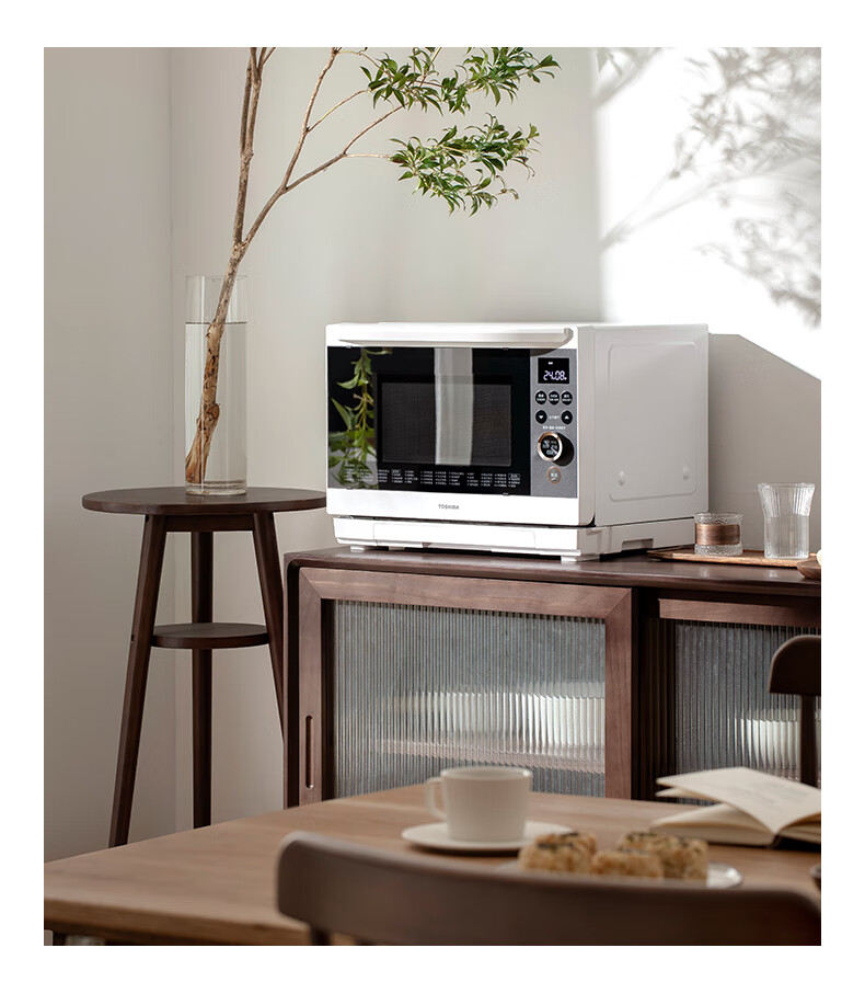 东芝XD95CNW微蒸烤炸一体机水波炉家用台式变频微波炉电烤箱空气炸蒸箱平板隐藏烤管白色26L