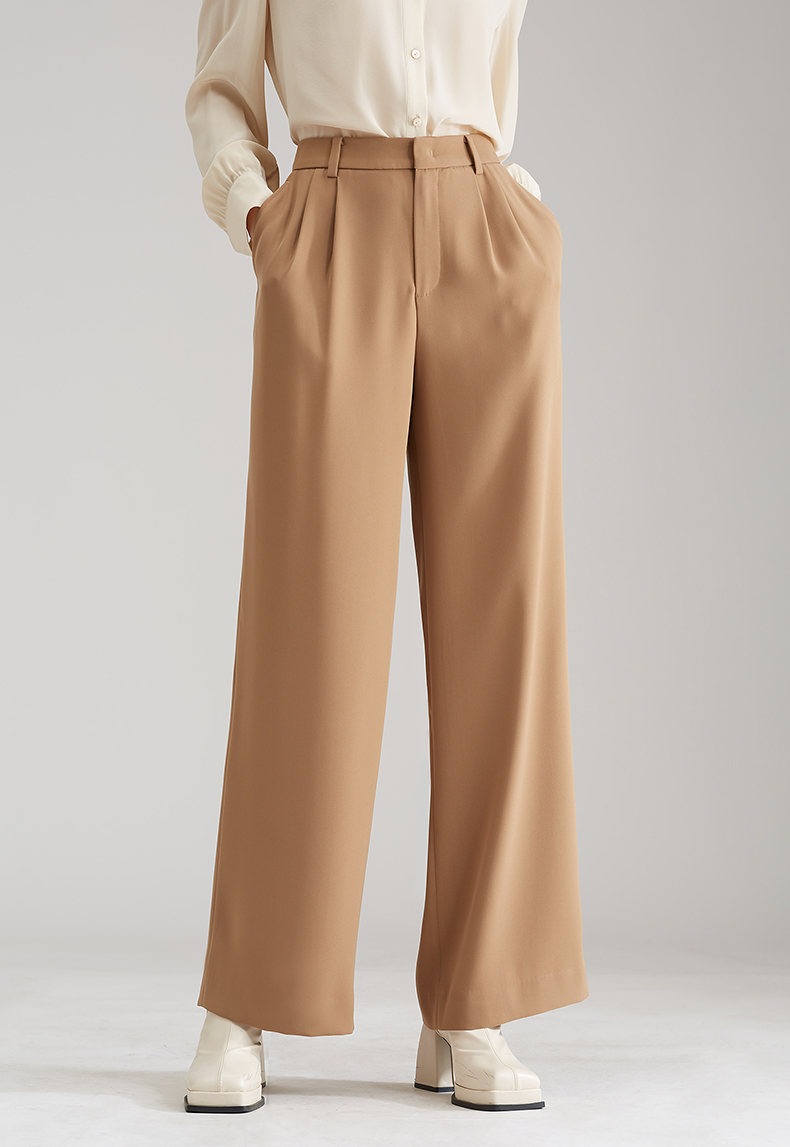 【特价不退换】阿菁娜飒爽大美前打褶直筒阔腿高腰裤A26Q110023