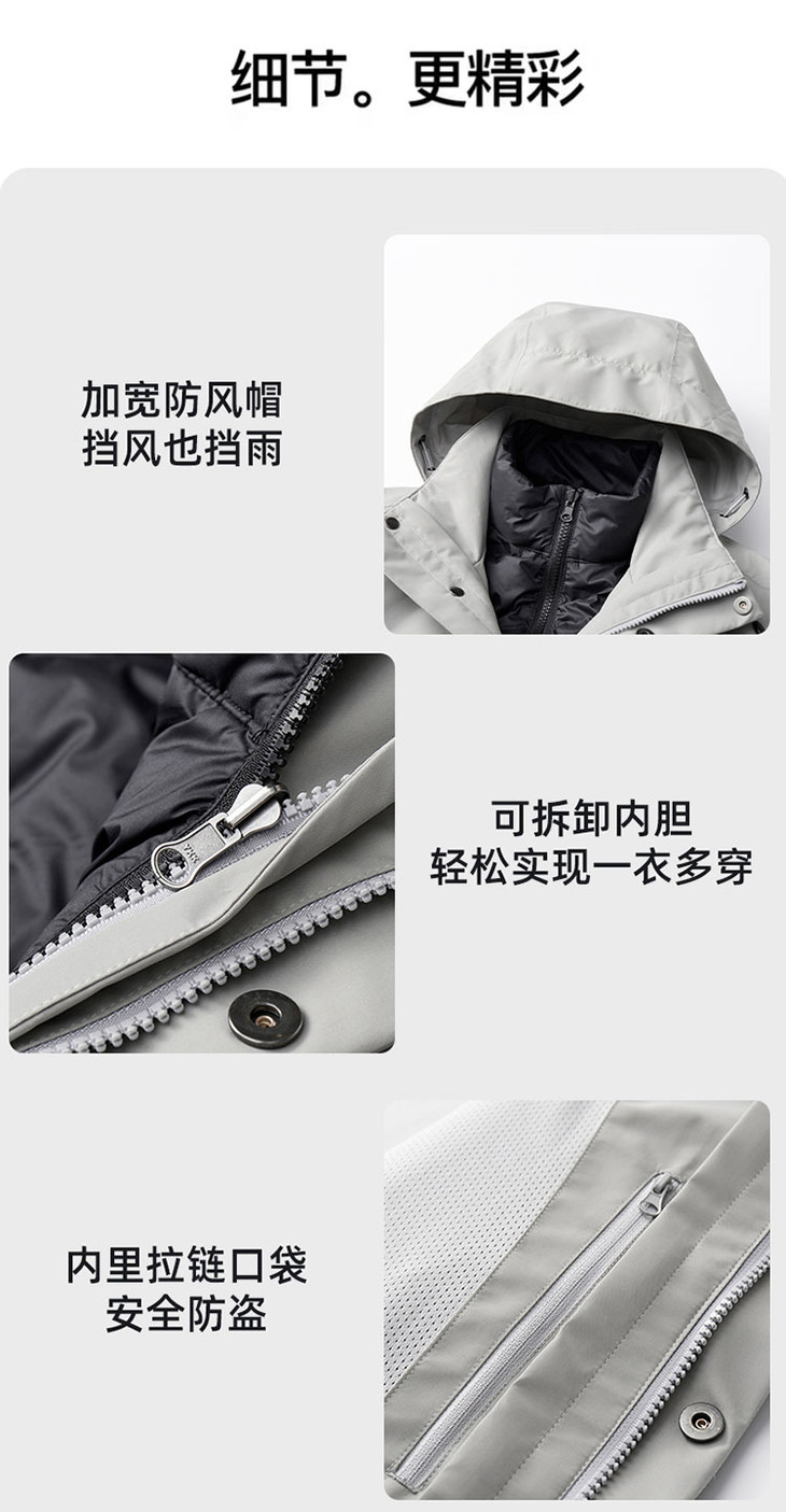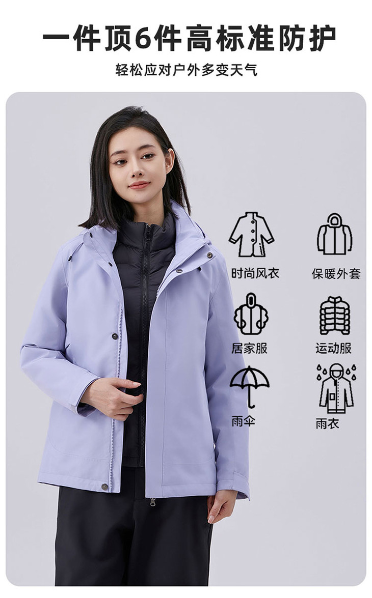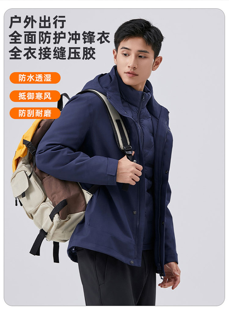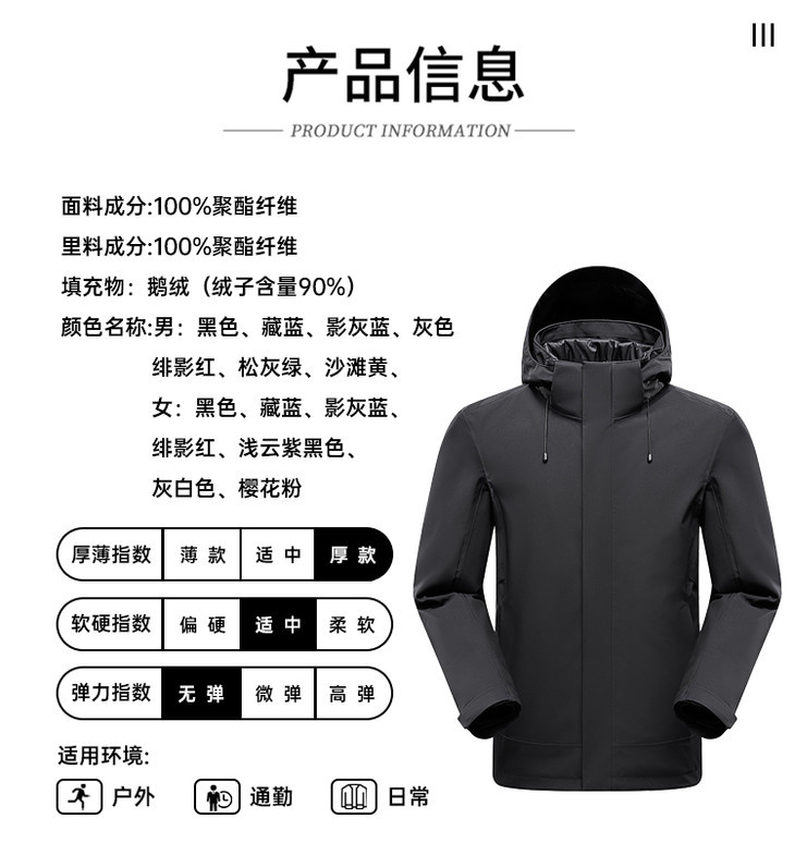 【三合一鹅绒冲锋衣】羽绒内胆休闲外套男女同款户外登山服FT502