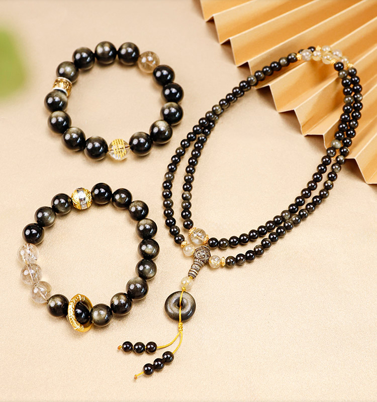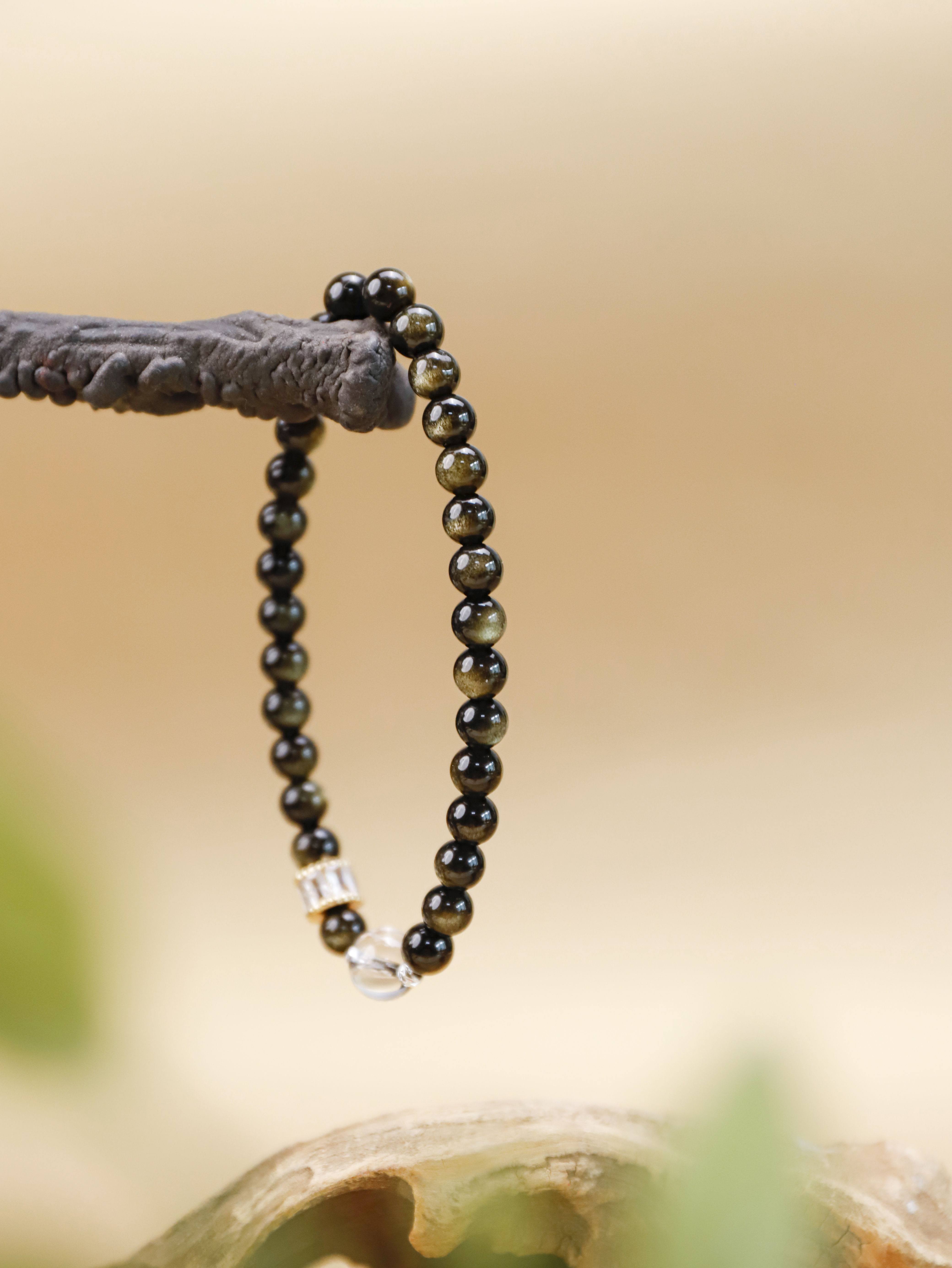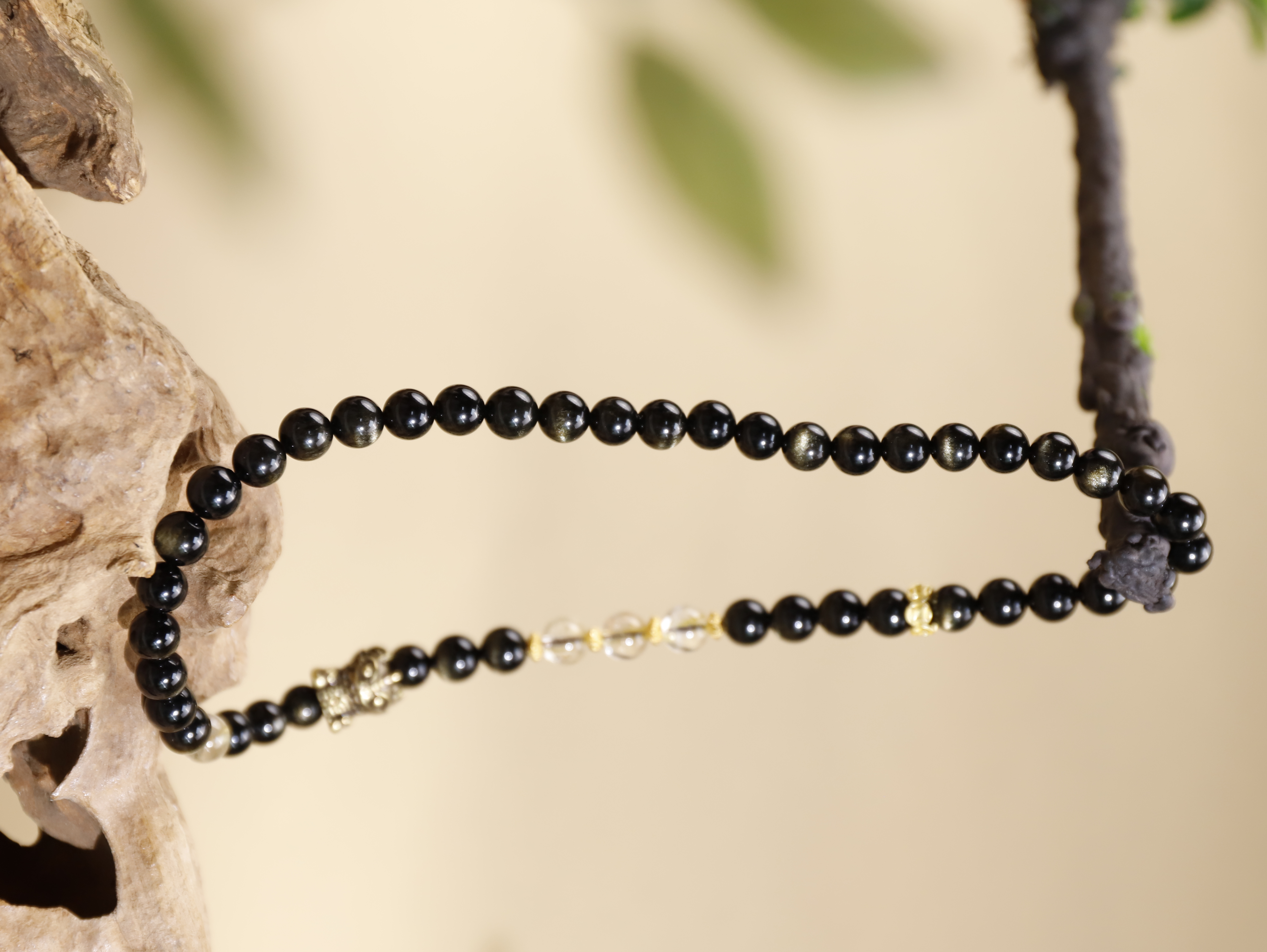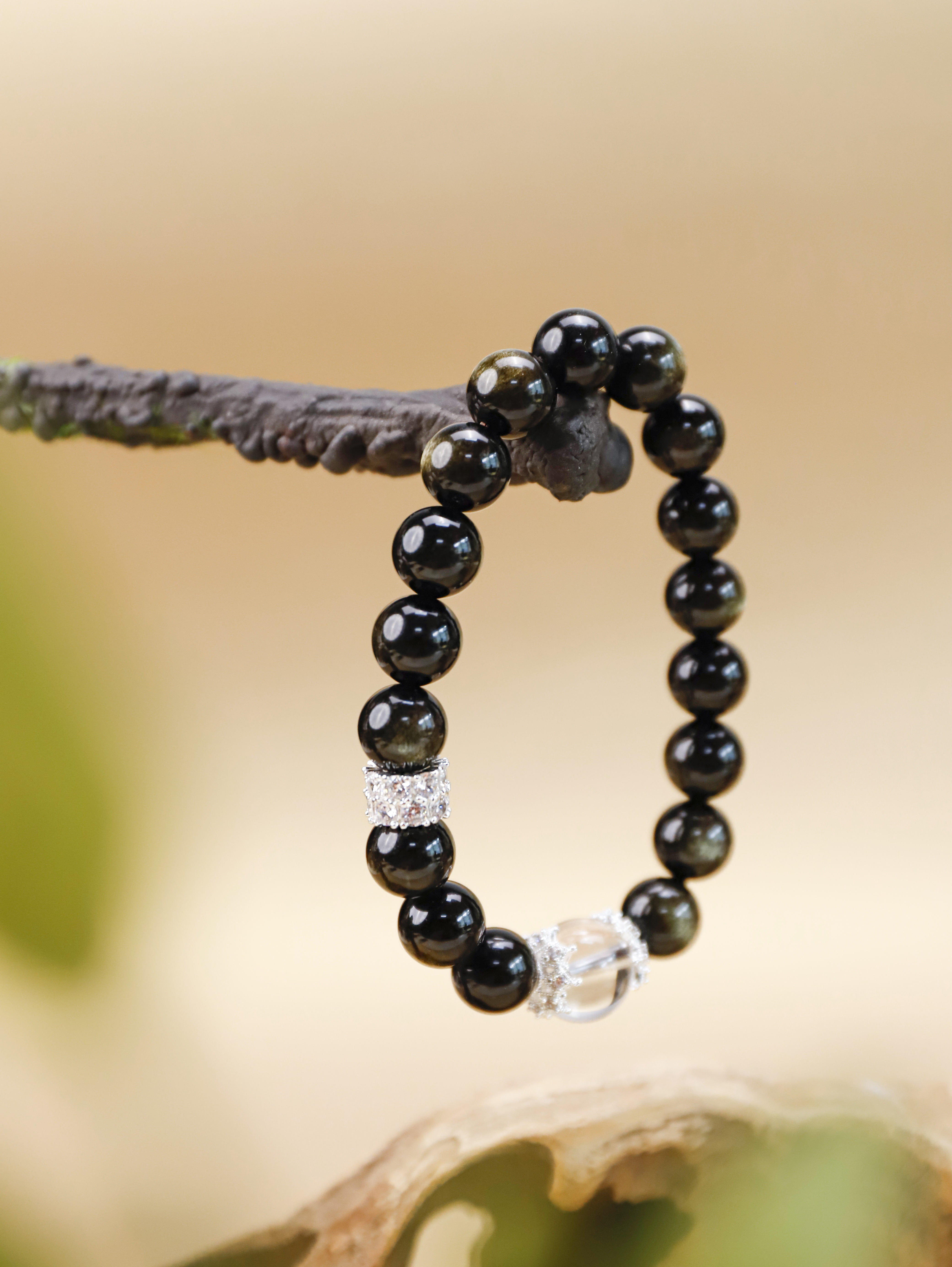 【下单即赠12mm黄水晶手串】珠宝级墨西哥猫眼金曜石首饰 ,稀世珍品,墨韵金辉,金光璀璨,灵动永恒