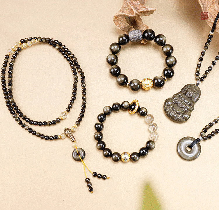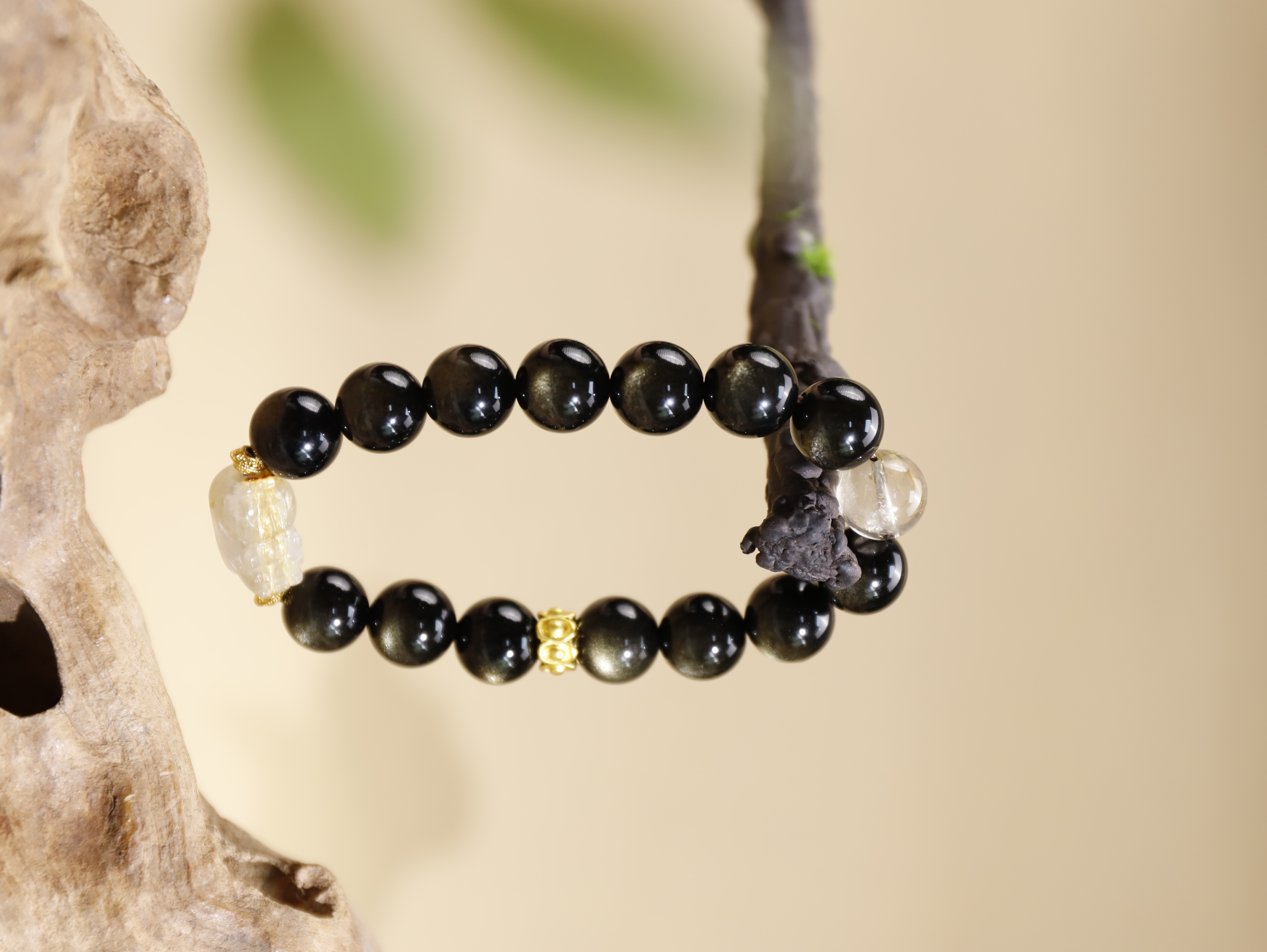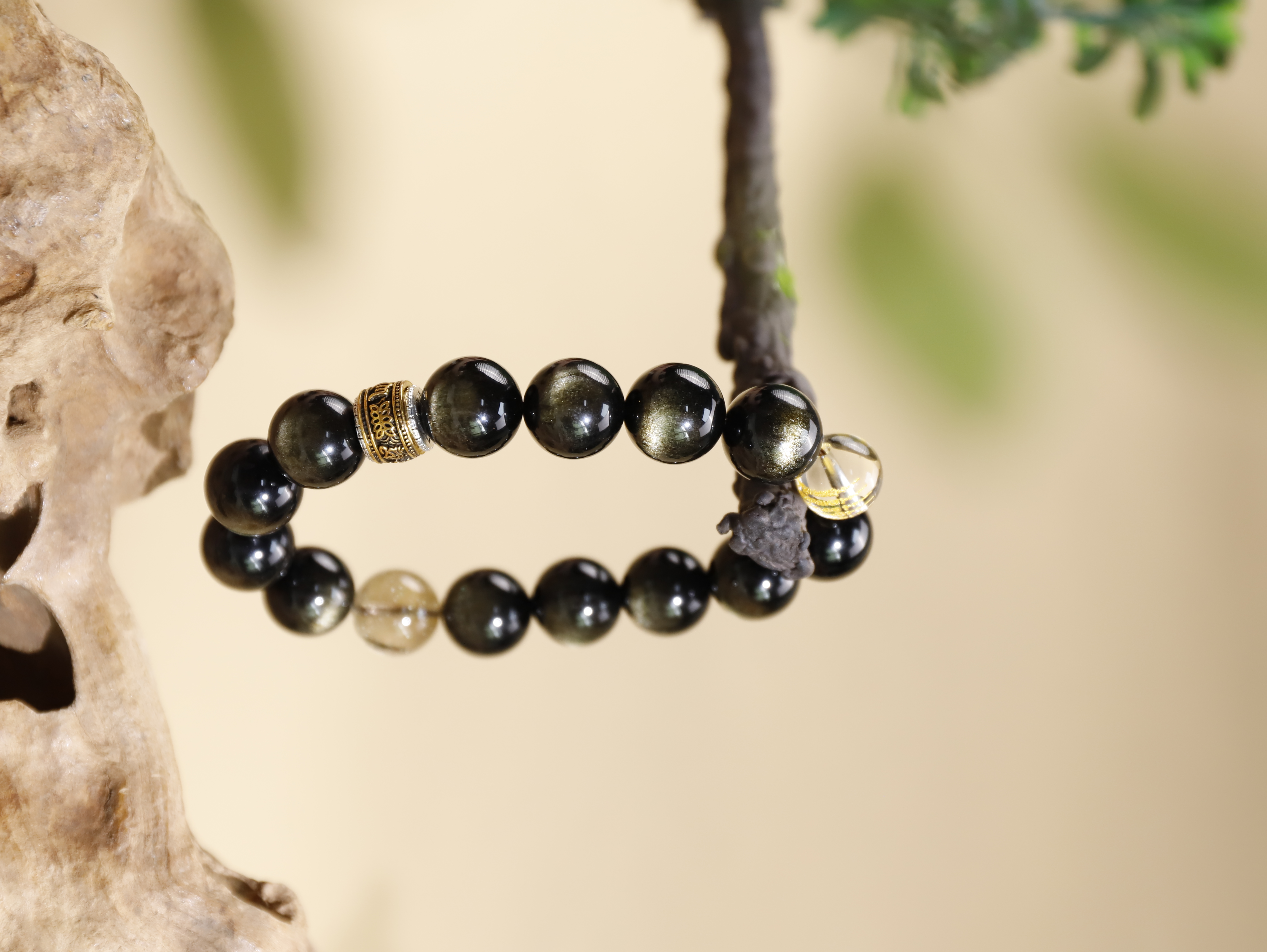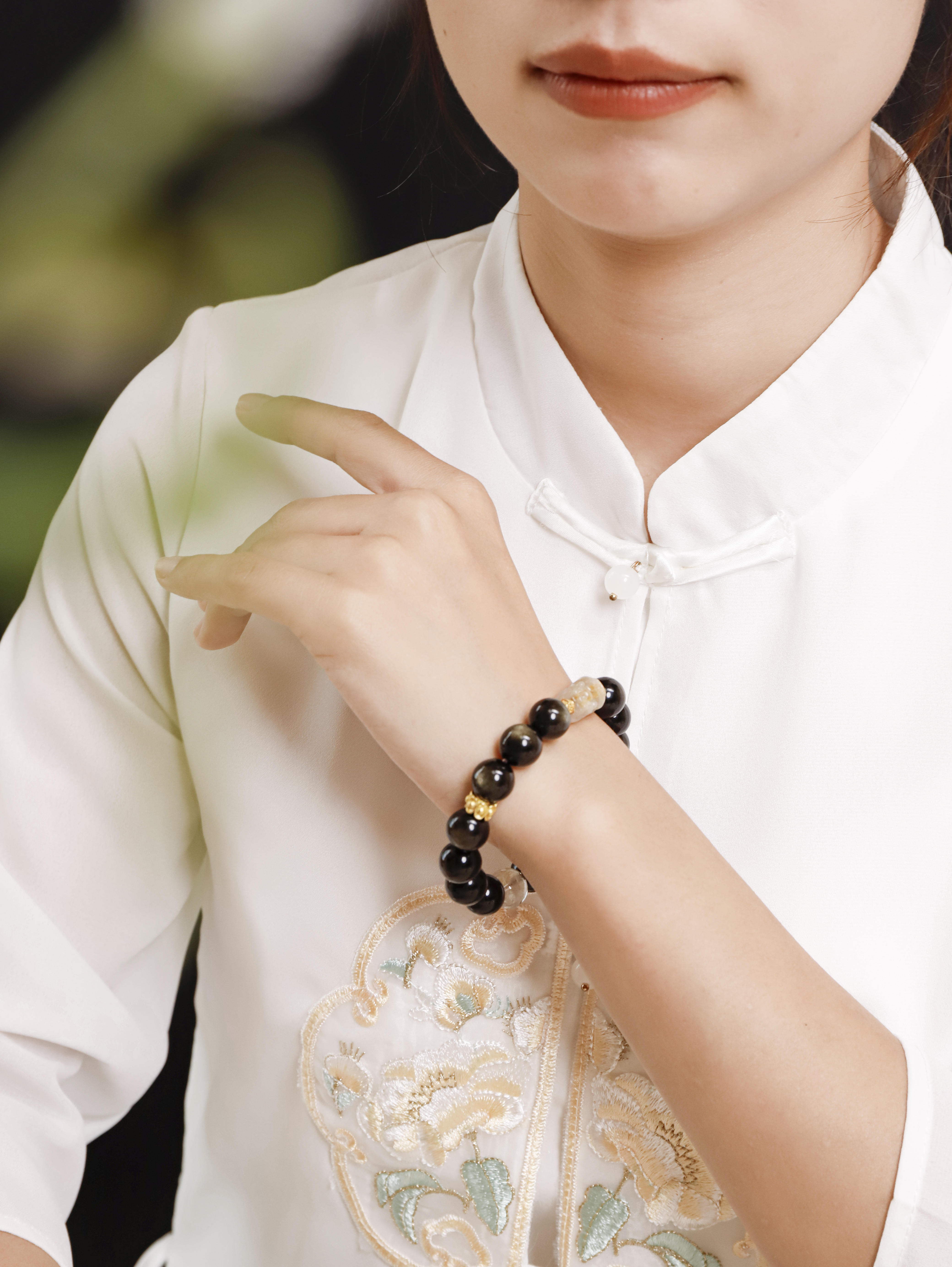 【下单即赠12mm黄水晶手串】珠宝级墨西哥猫眼金曜石首饰 ,稀世珍品,墨韵金辉,金光璀璨,灵动永恒
