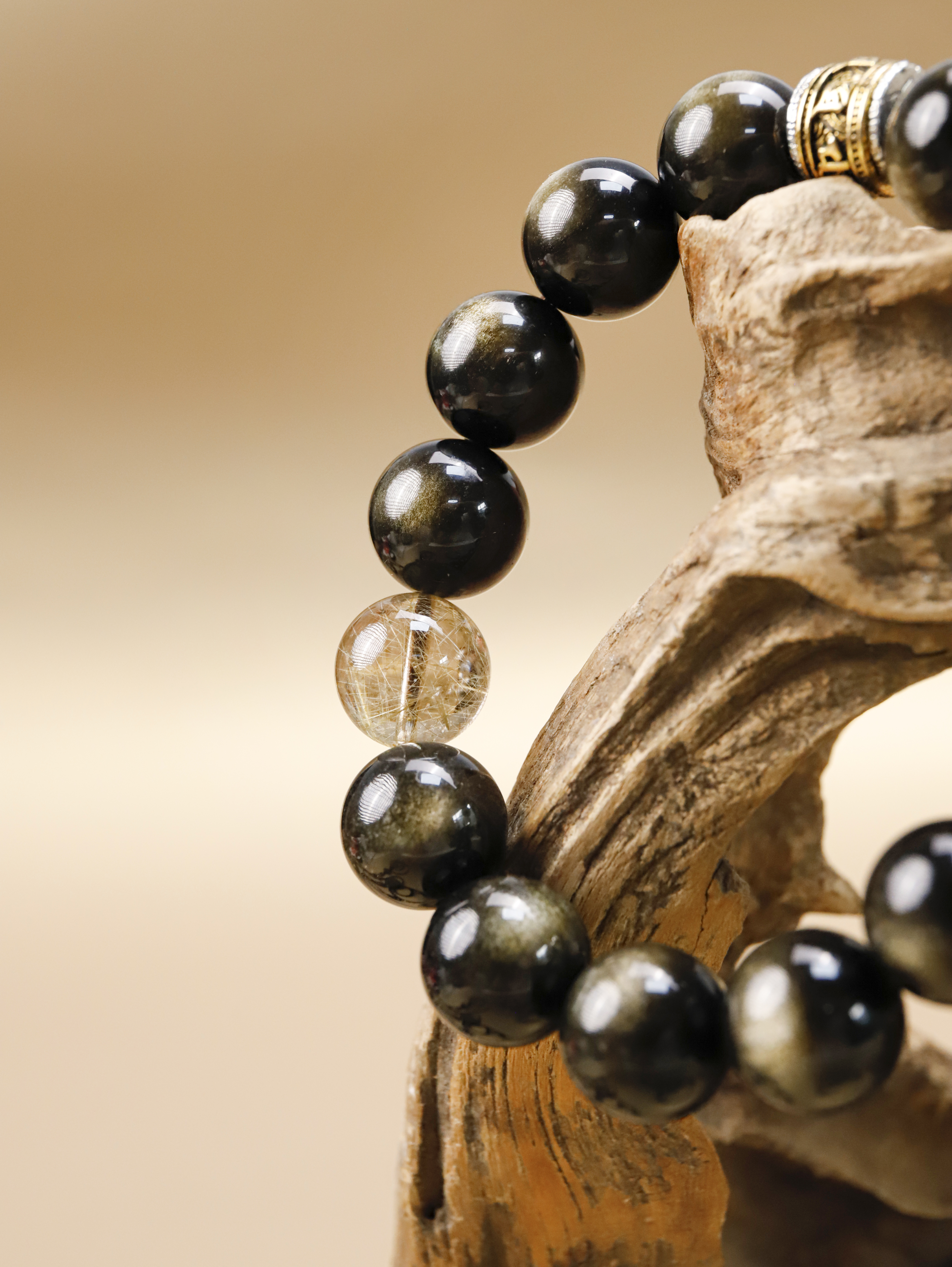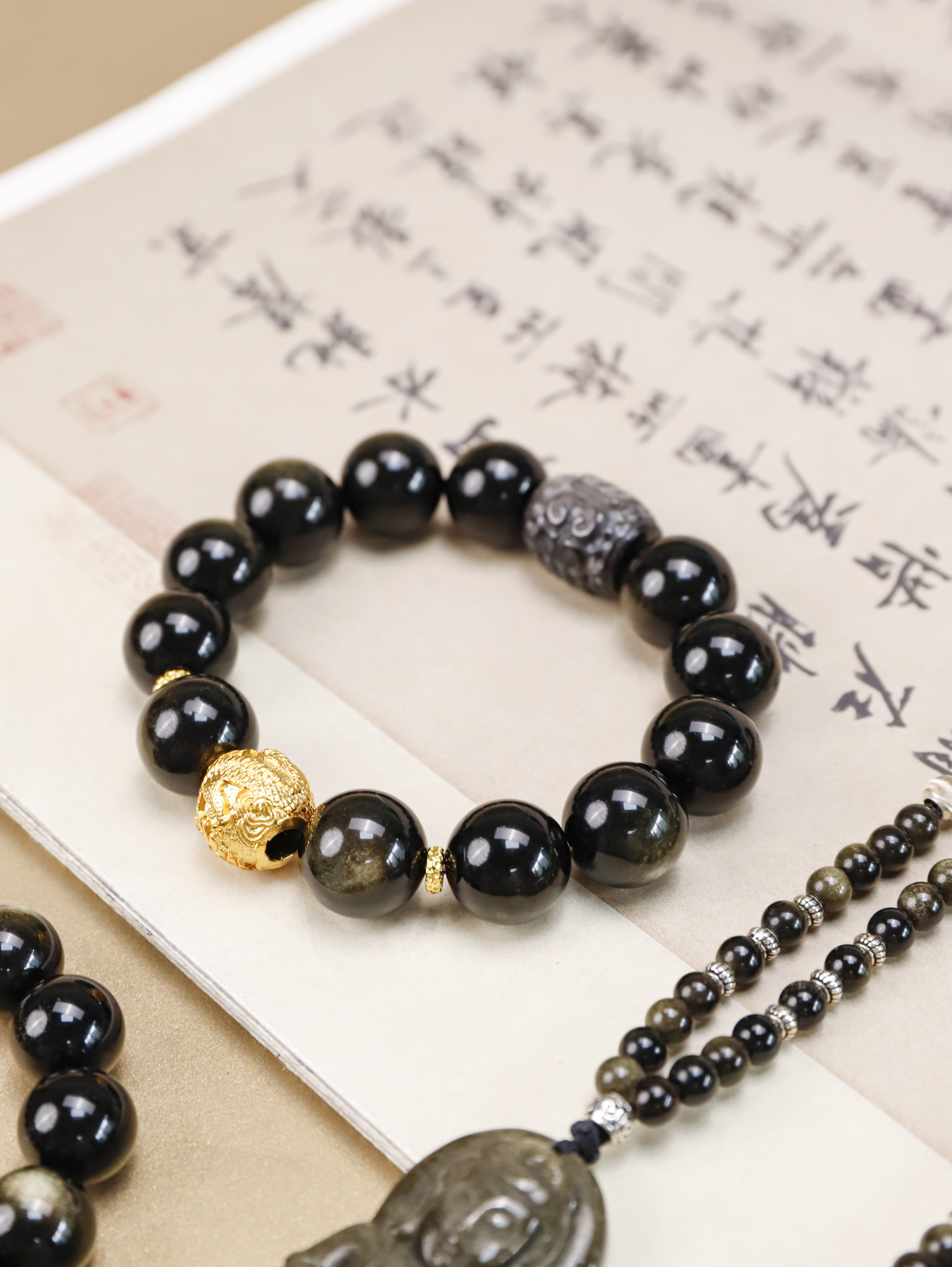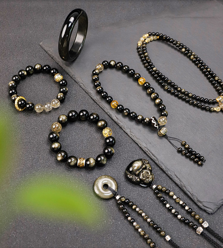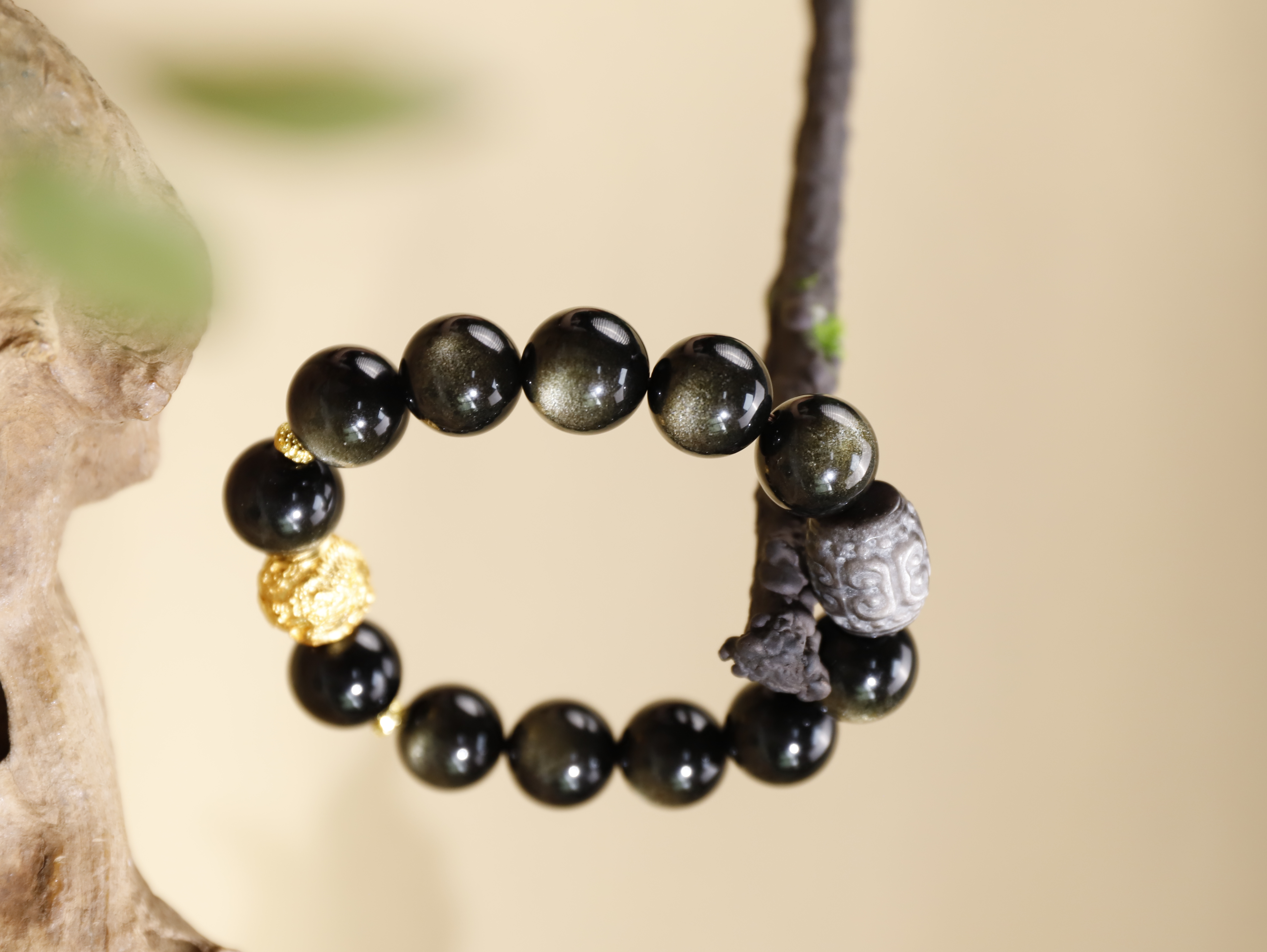 【下单即赠12mm黄水晶手串】珠宝级墨西哥猫眼金曜石首饰 ,稀世珍品,墨韵金辉,金光璀璨,灵动永恒