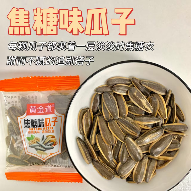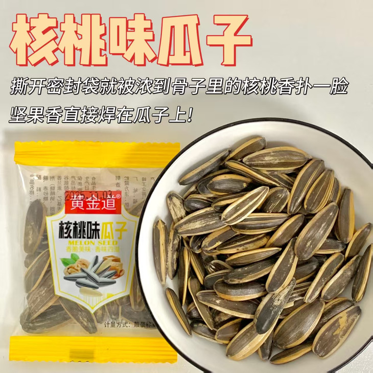 ✨神仙双口味来啦💰19.9到手50包【黄金道手抓包瓜子】🥳核桃味➕焦糖味任选👇大颗粒果仁超实在,一口一个嘎嘣脆💥皮薄易嗑不费牙🦷百煮入味越嚼越香😋