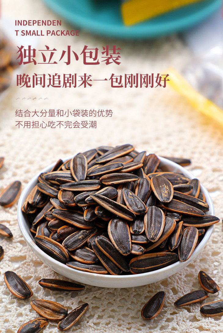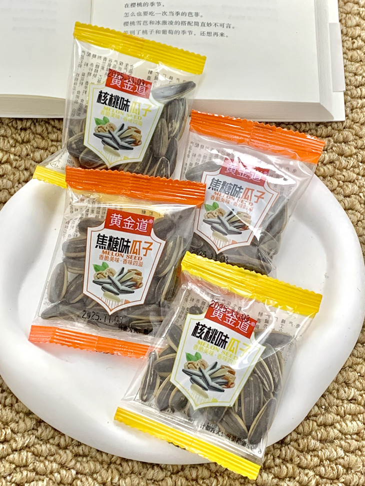 小包装真的太贴心了❤️ 以前买大袋瓜子 拆开没吃完就受潮了直接浪费了💸 这款都是独立密封小包装 想吃的时候拆一包,量刚刚好👌 吃完随手一扔包装,干净又方便 我现在不管是上班摸鱼、出门野餐 包里都会揣几包,简直是快乐续命神器🌟