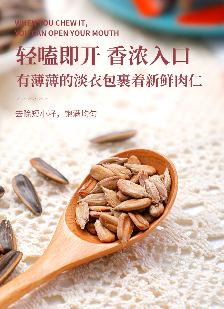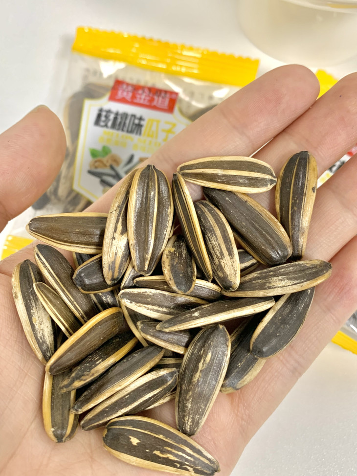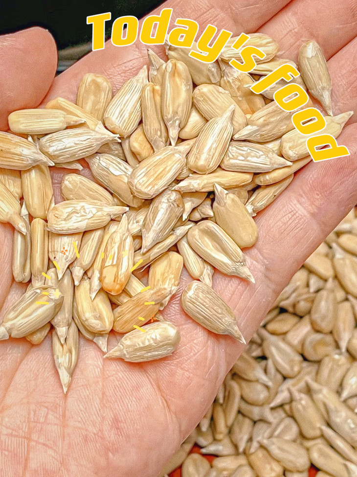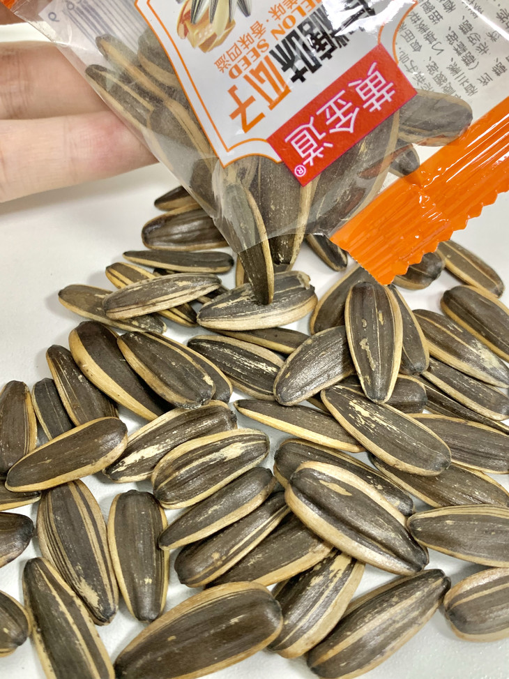 首先必须吹爆它的大颗粒 葵花籽个个长短一致、个大均匀 随便抓一把👋,没有一颗小矮子 全是高个子帅哥级别的😎 而且皮薄仁满,真正的一嗑三开 不用费劲儿咬,轻轻一嗑壳就碎💥 果仁完整度超级高✅ 再也不用跟瓜子壳死磕到底了🙅