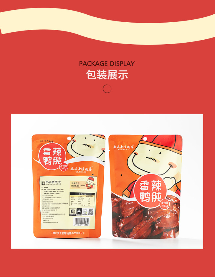 真正老陆稿荐 香辣鸭肫100g 鸭胗卤味零食小吃下酒菜独立小包装