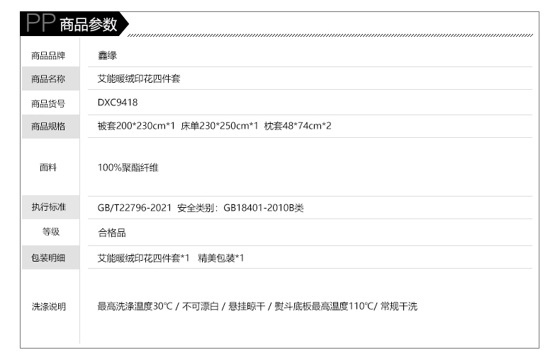 鑫缘 艾能暖绒印花四件套 DXC9418 -DXC9420