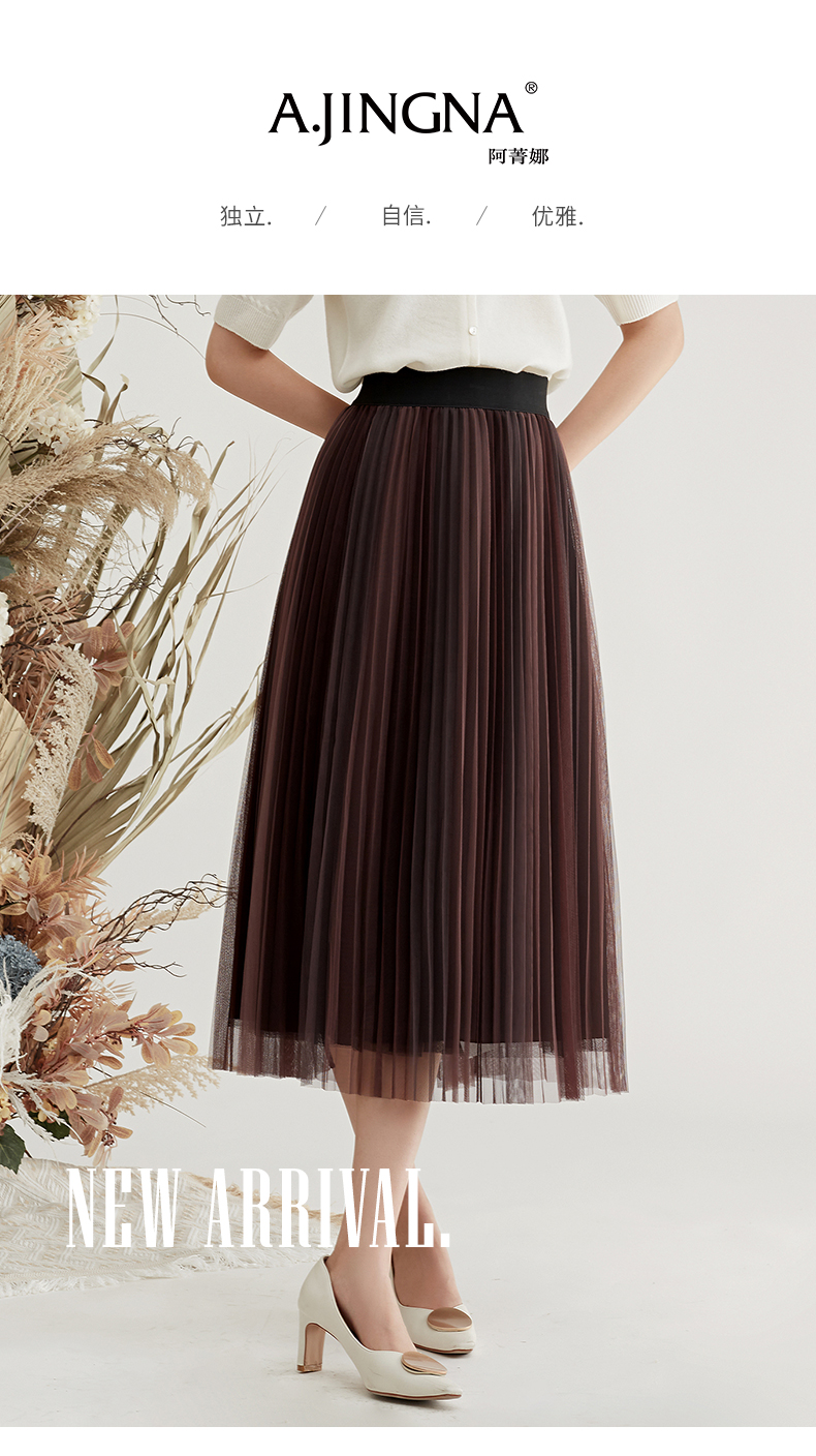 【特价不退换】阿菁娜百褶半身裙渐变轻盈垂坠高密网纱A27Q213010