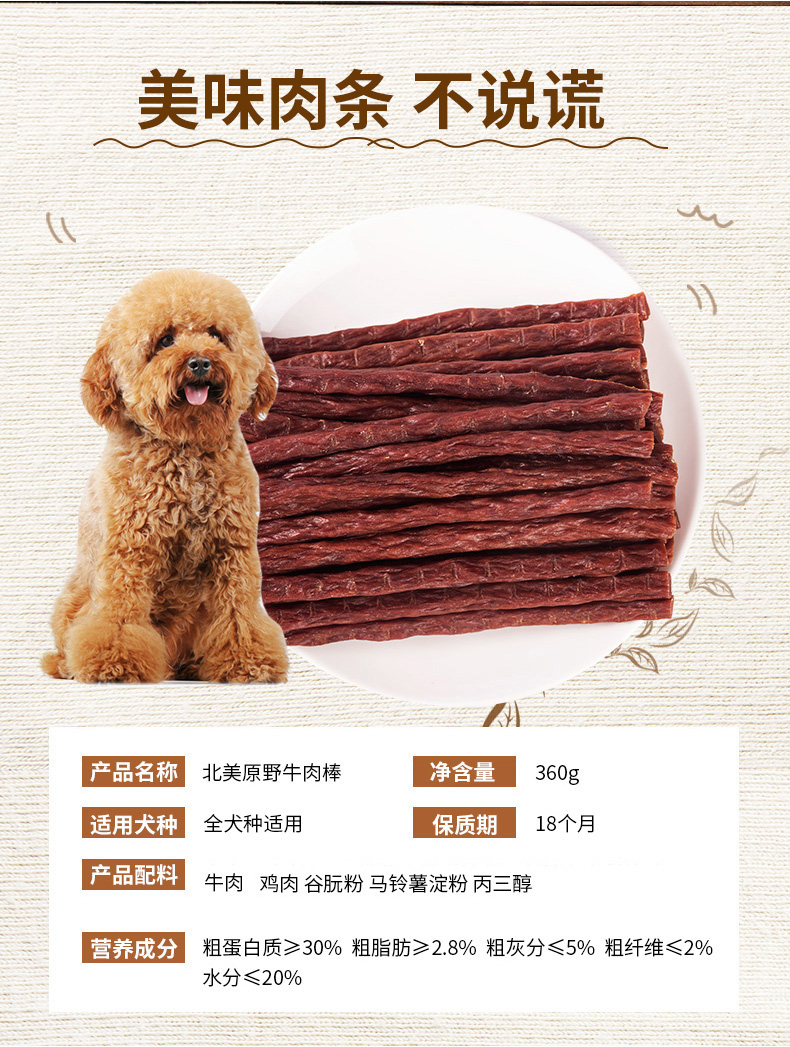 麦富迪零食牛肉棒宠物泰迪零食牛肉干条成犬幼犬训奖励360g