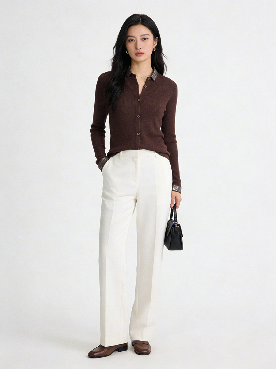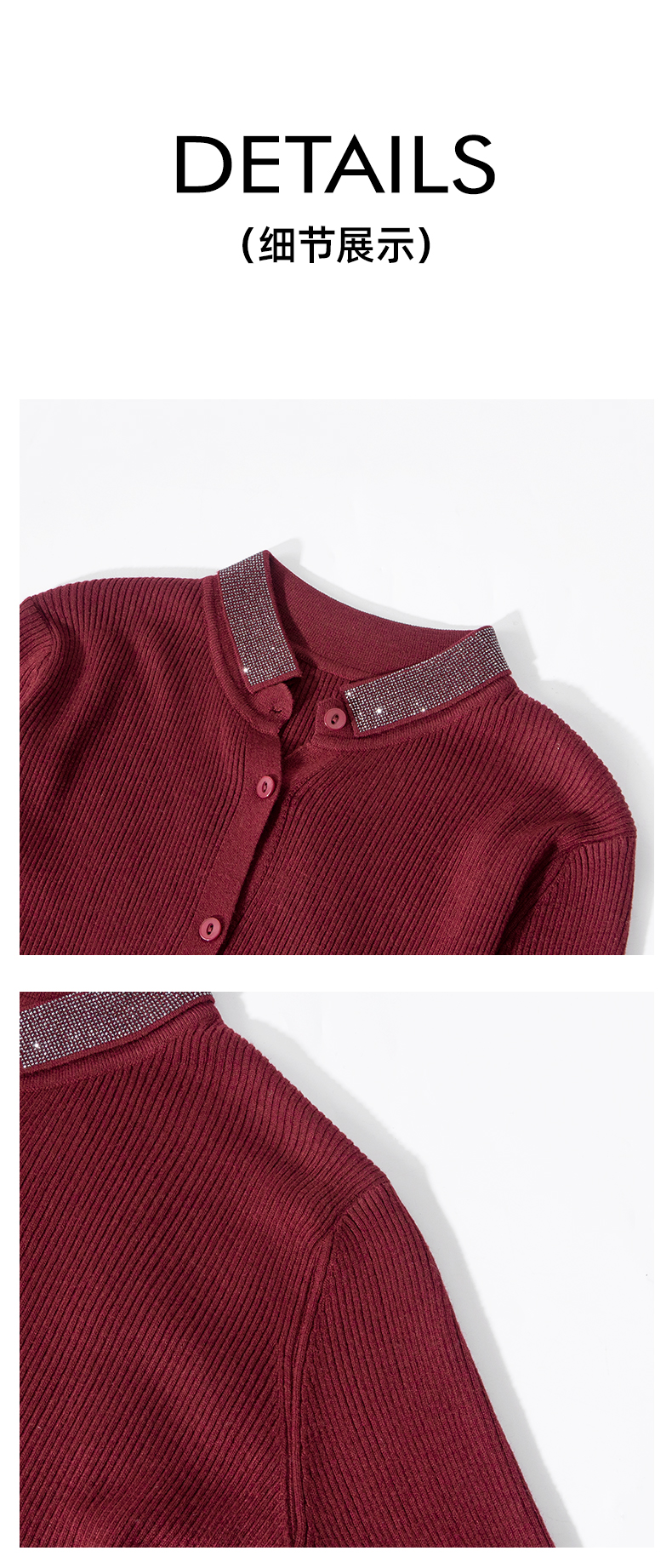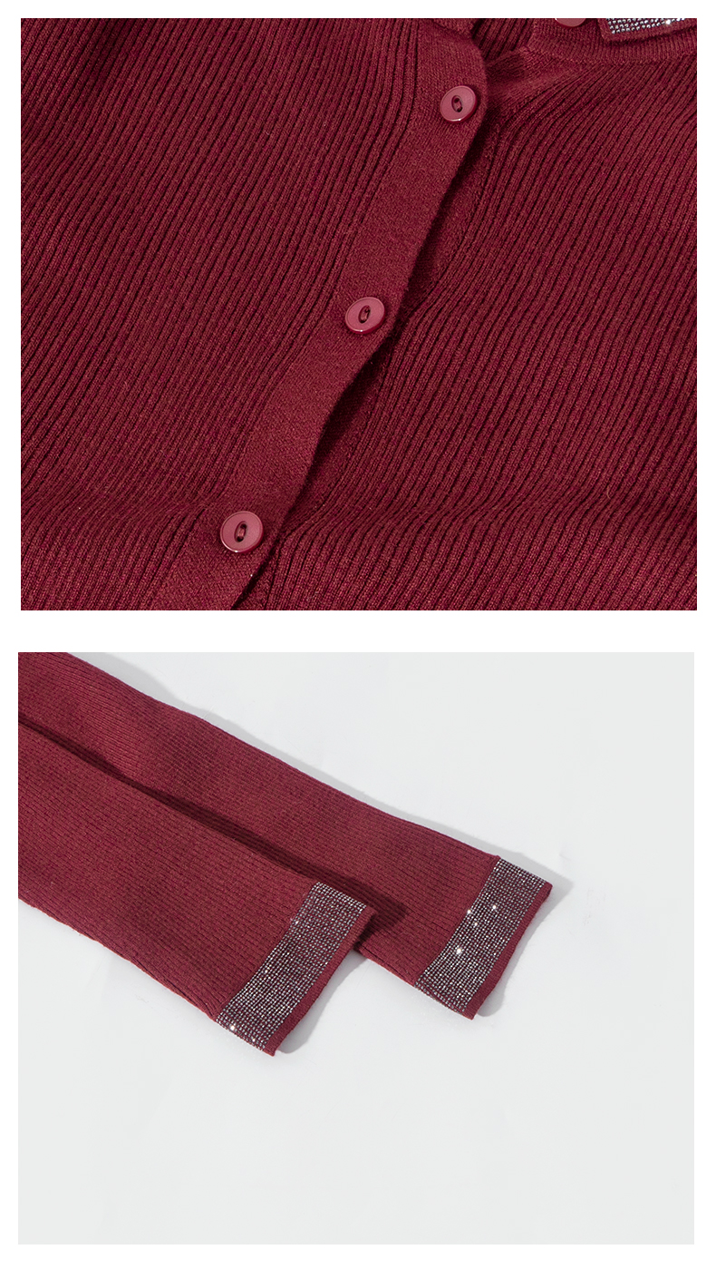 茧墨 精纺气质烫钻羊毛翻领显瘦开衫