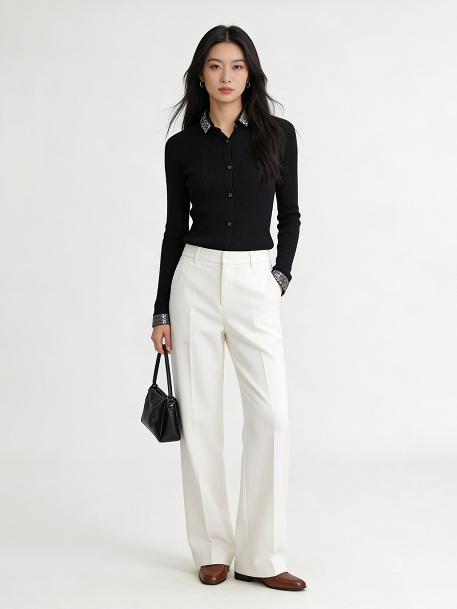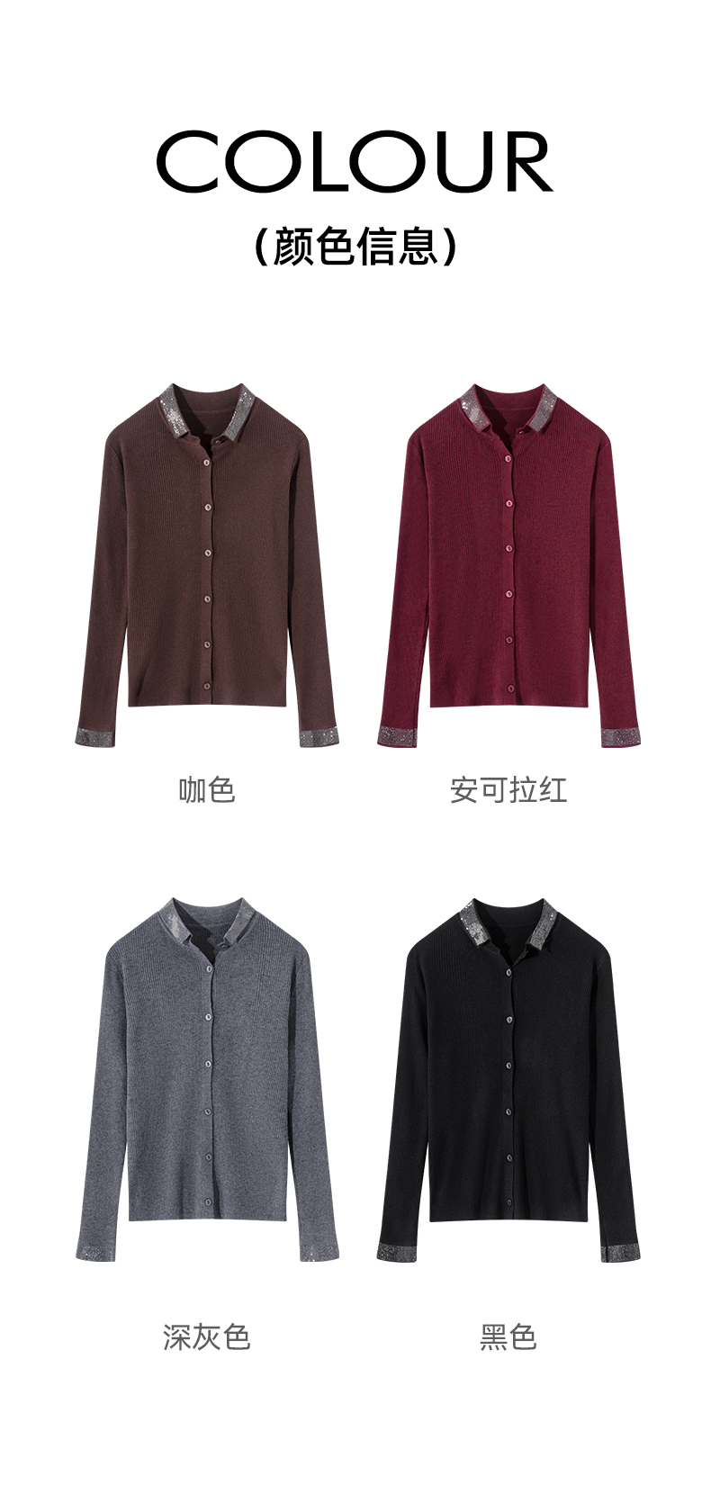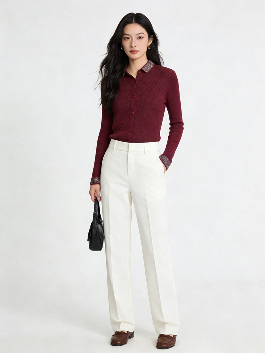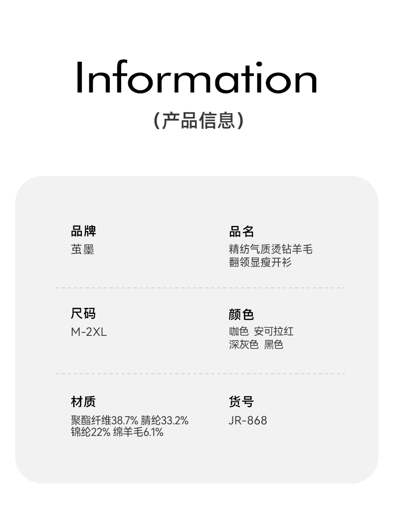 茧墨 精纺气质烫钻羊毛翻领显瘦开衫