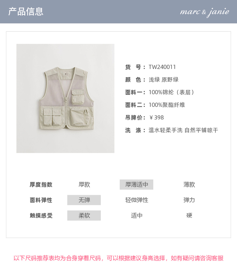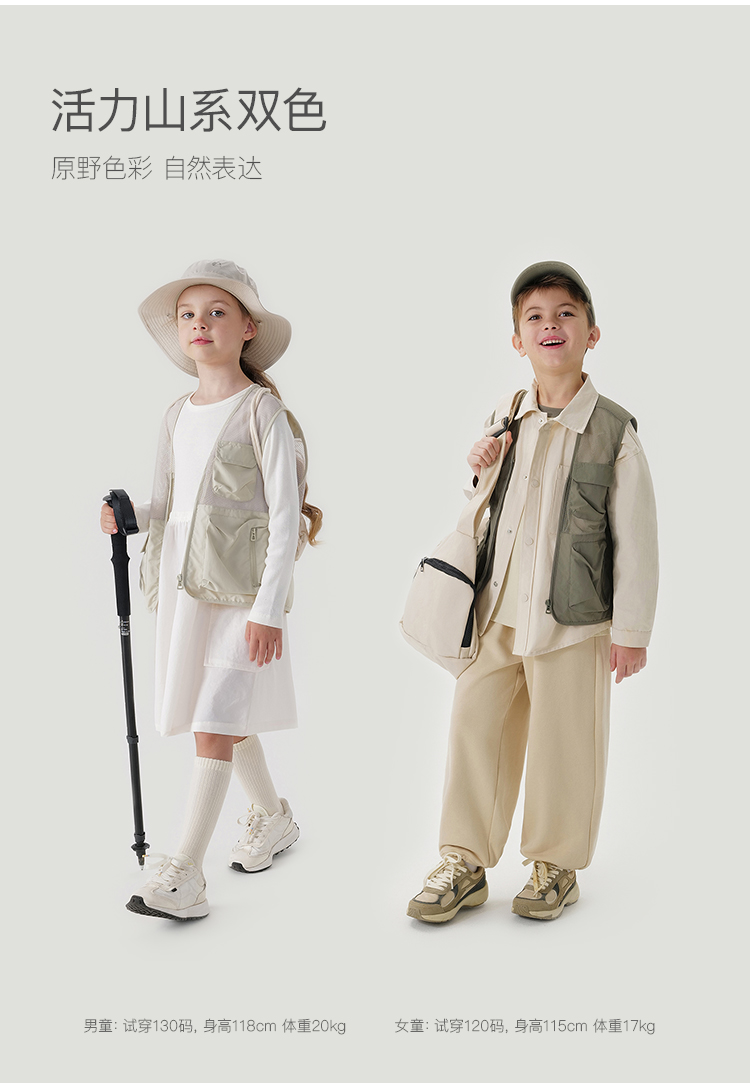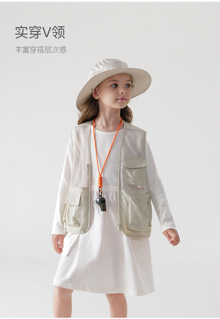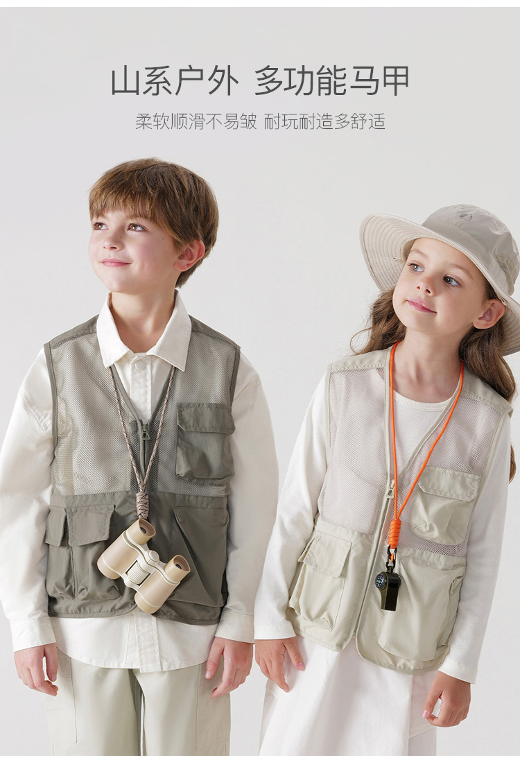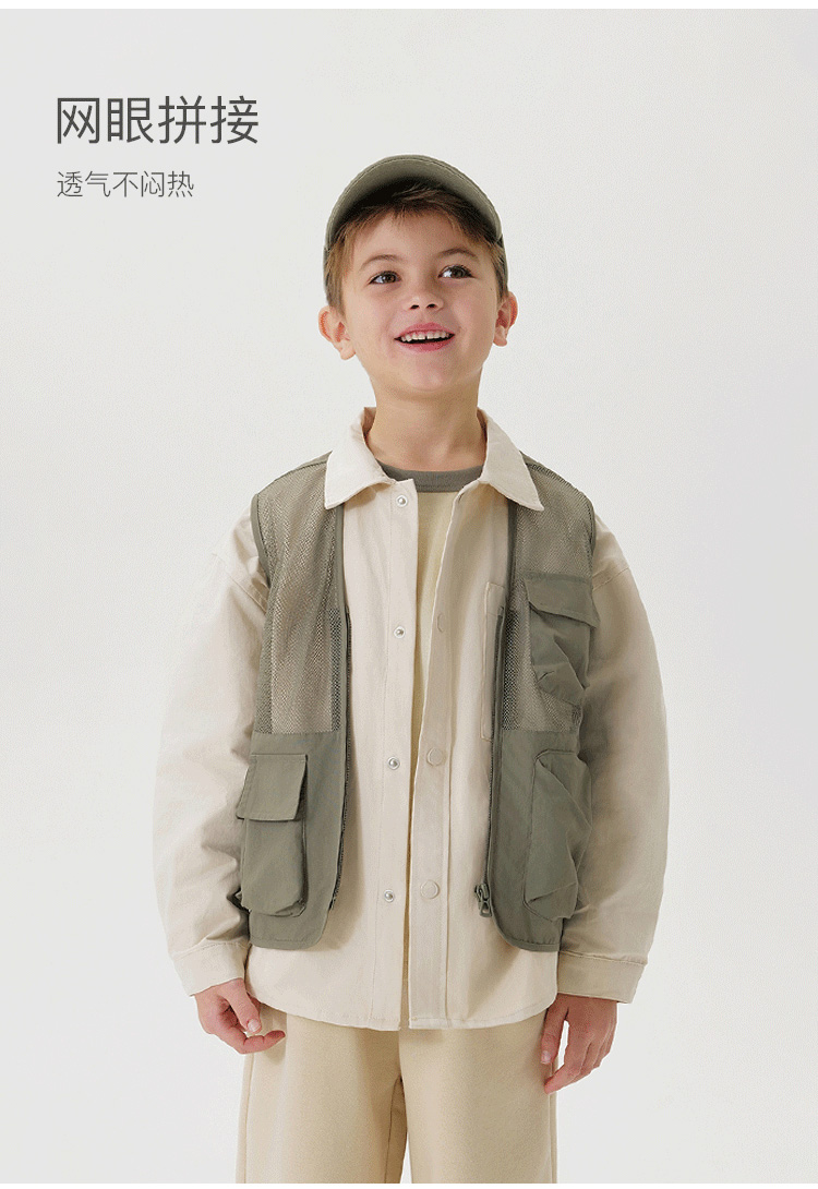 [山系户外]马克珍妮男女童镂空网眼拼接多口袋工装马甲春装550351