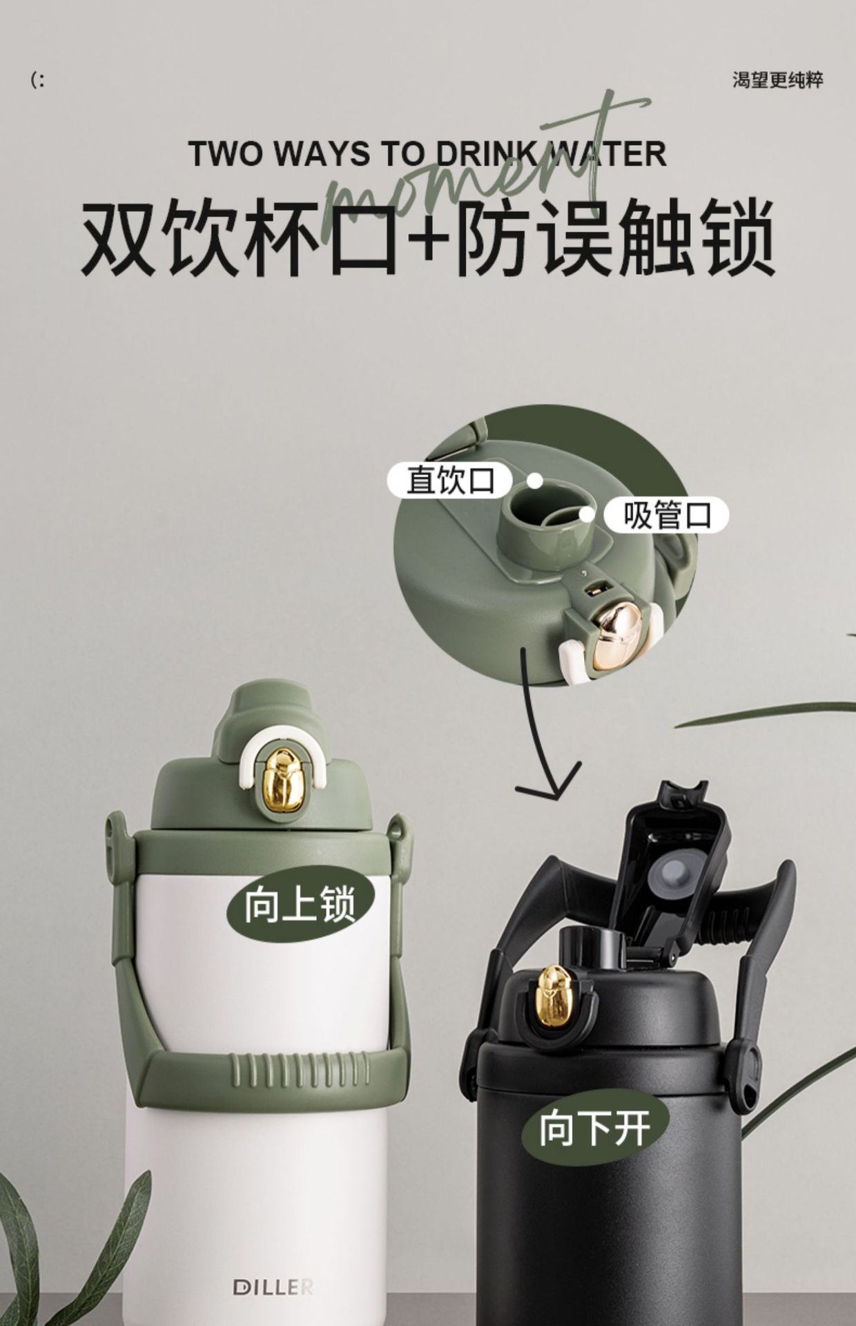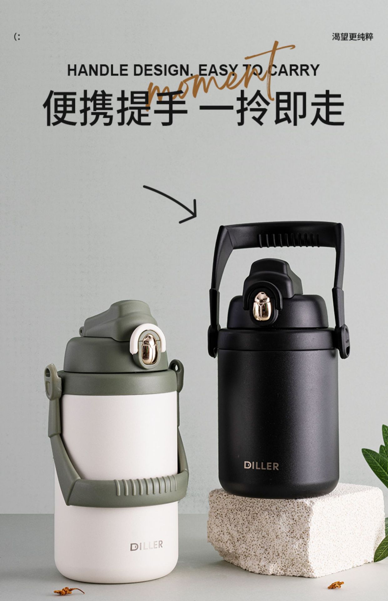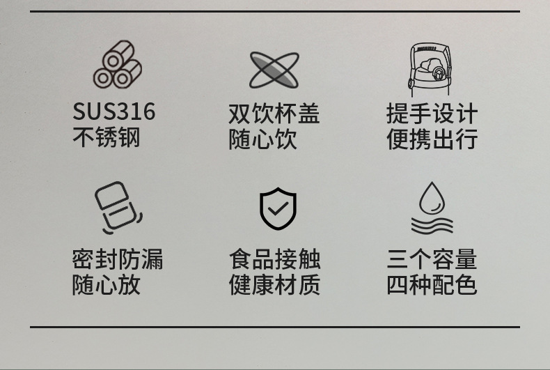 「1500ml大容量!颜值派」保温杯大容量便携户外颜值316不锈钢男女士通用保温保冷餐饮用具