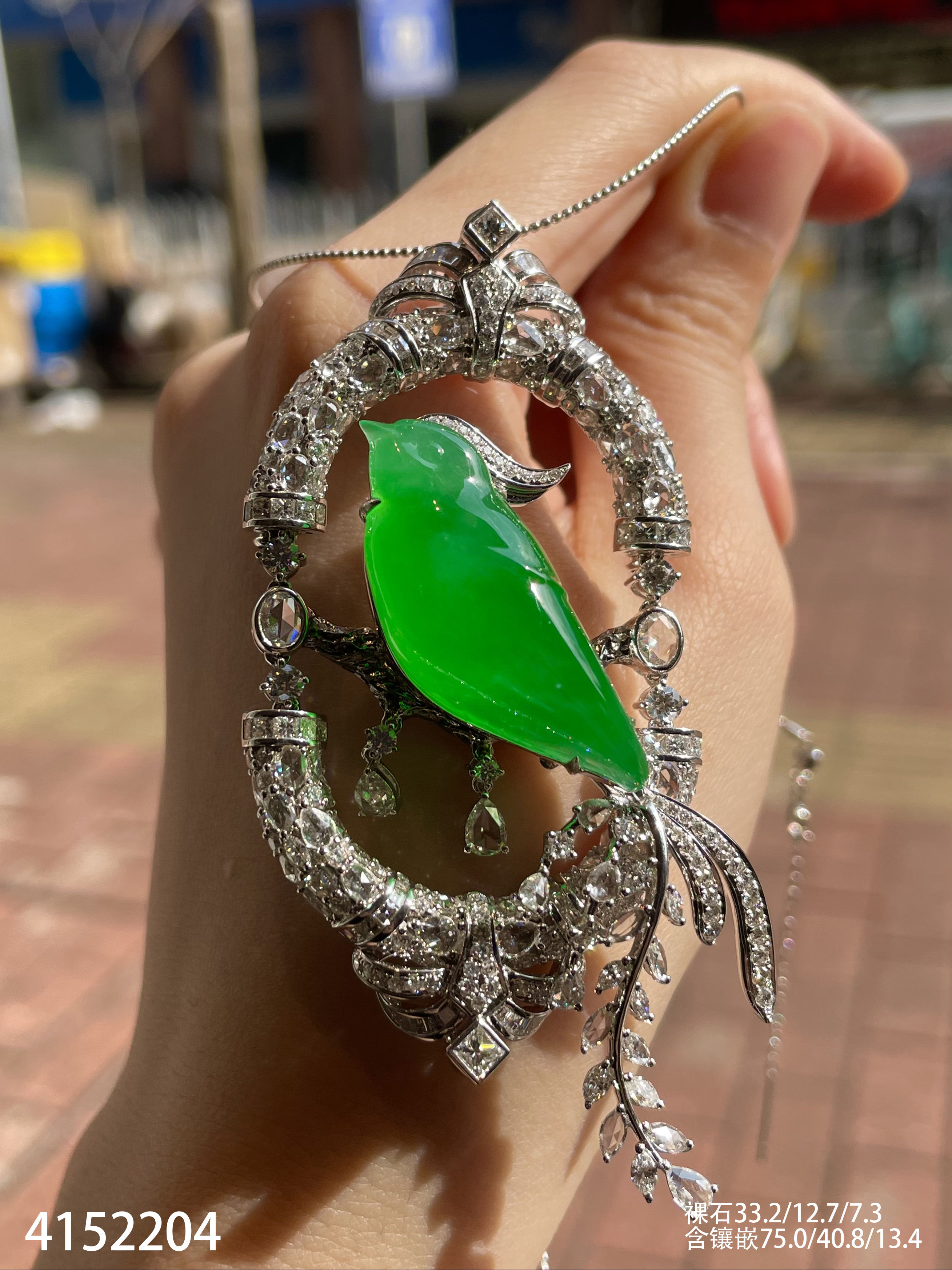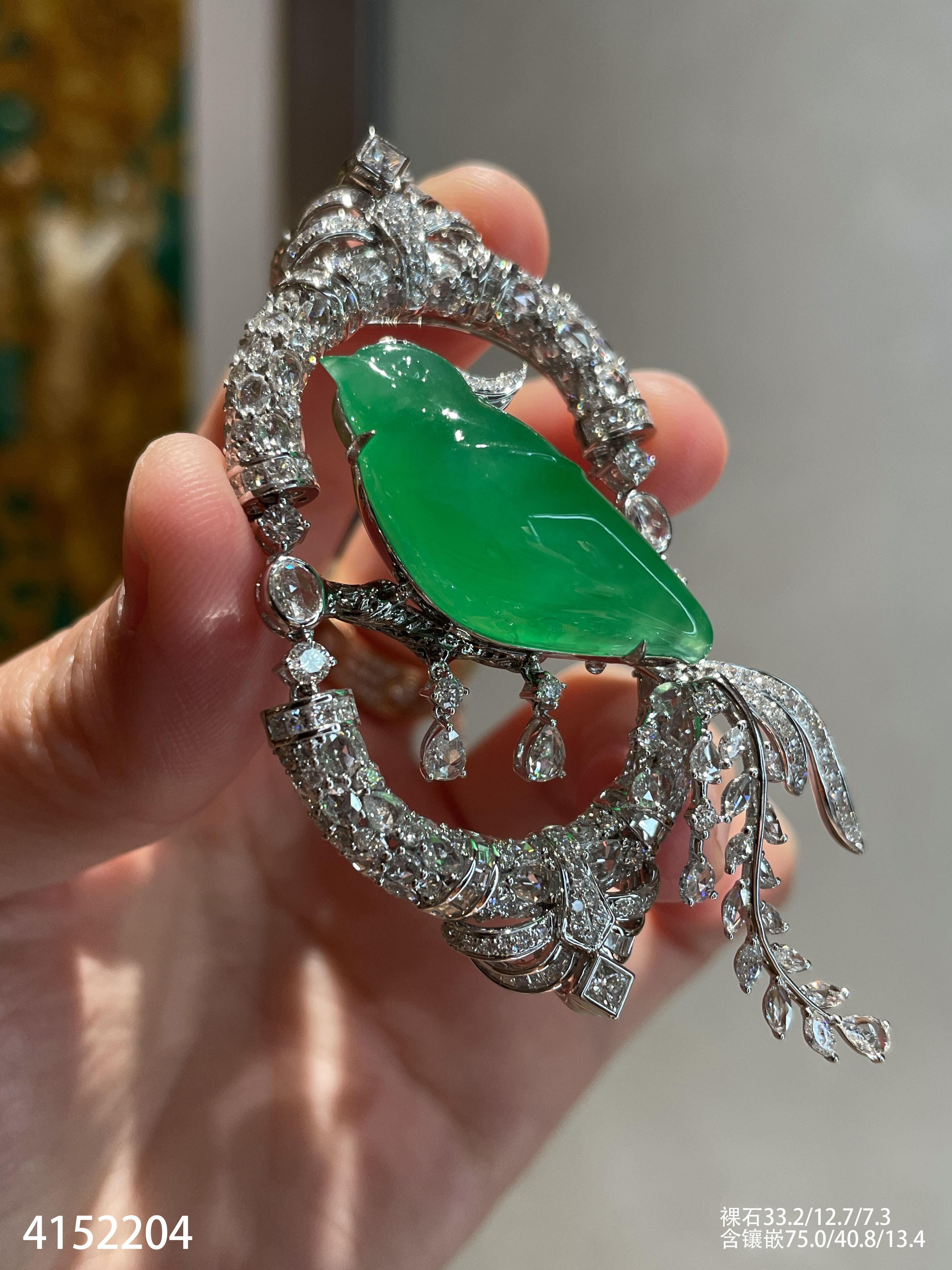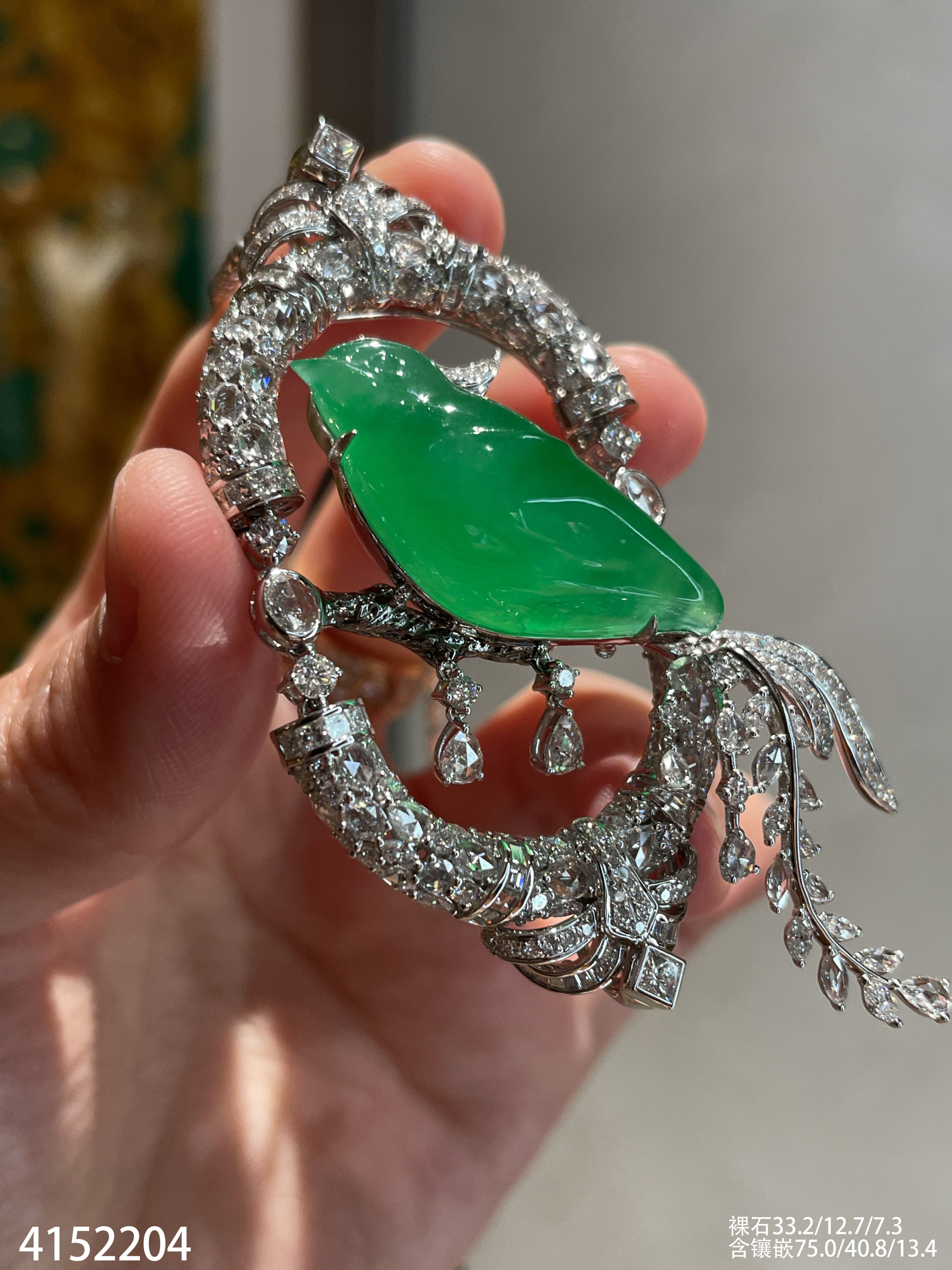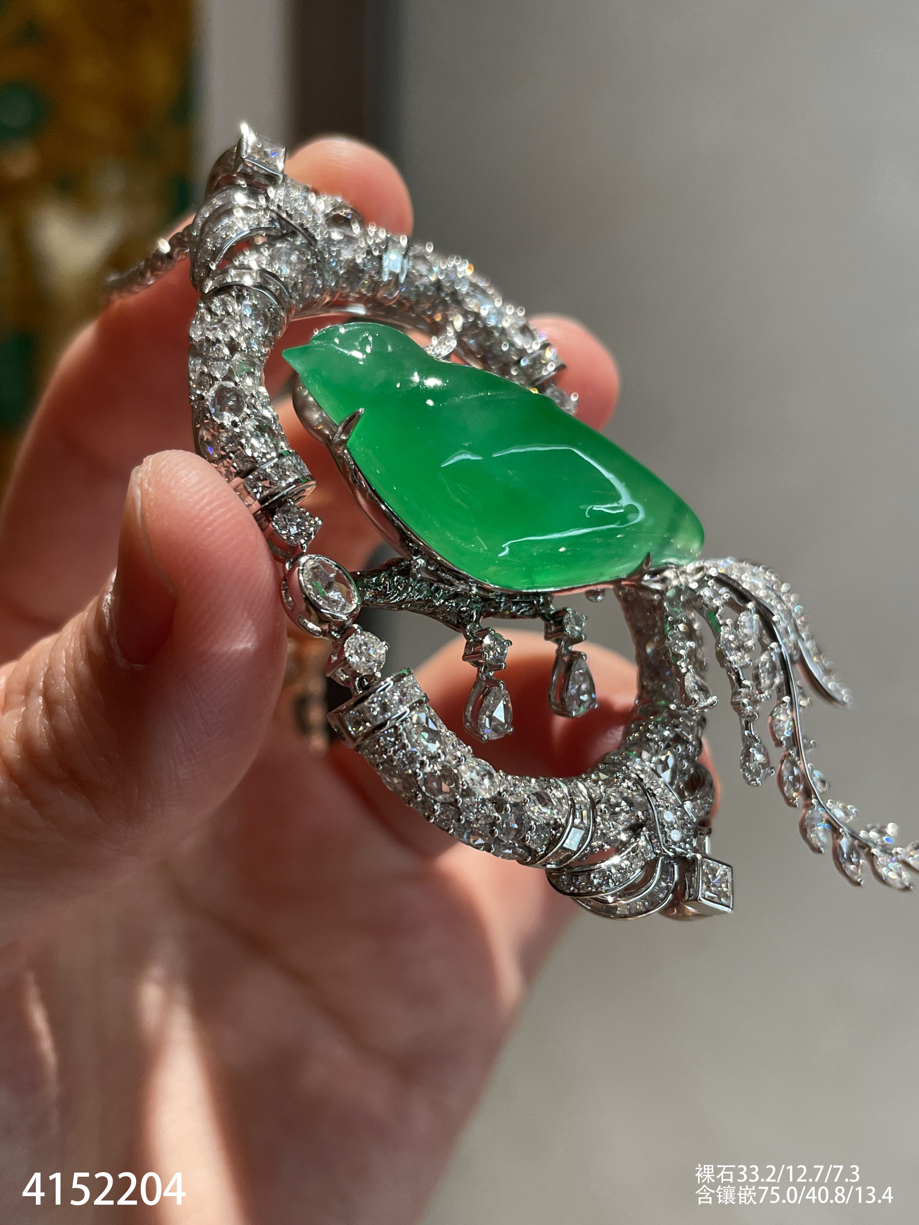 玻璃种木那喜鹊胸针【4152204】具体价格微信咨询