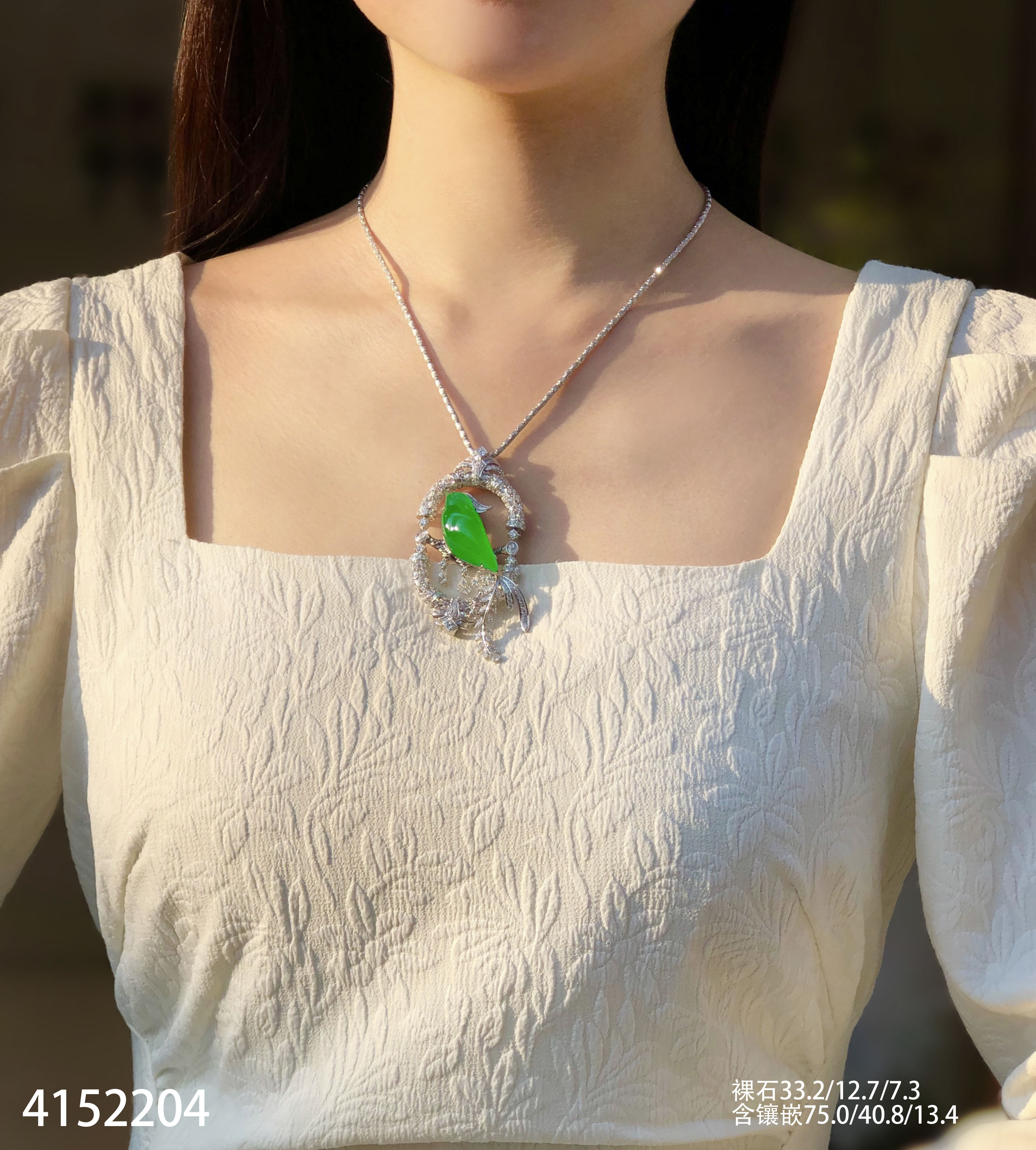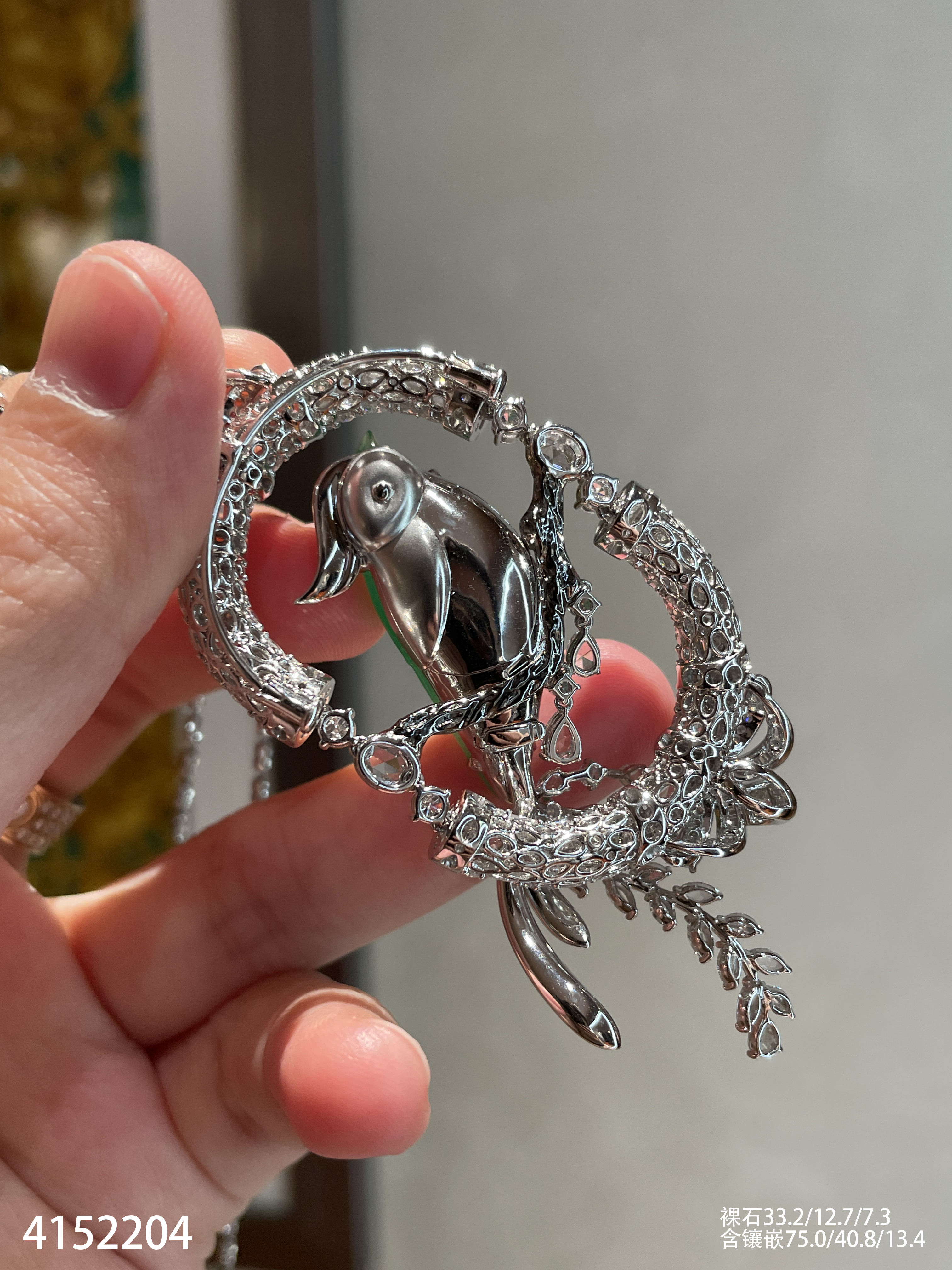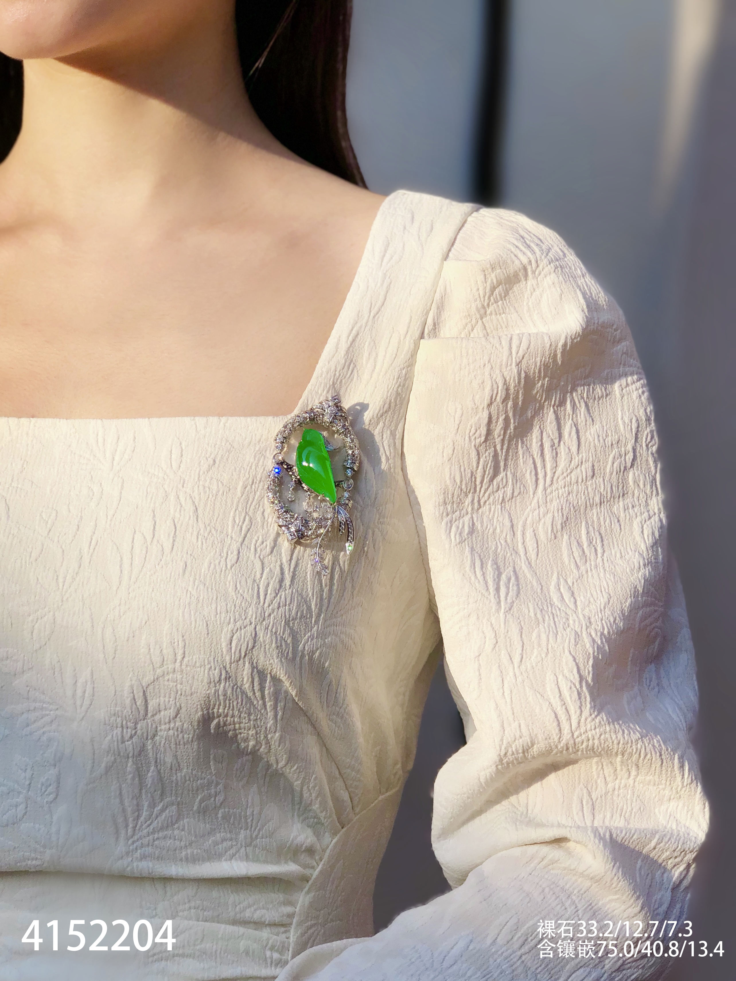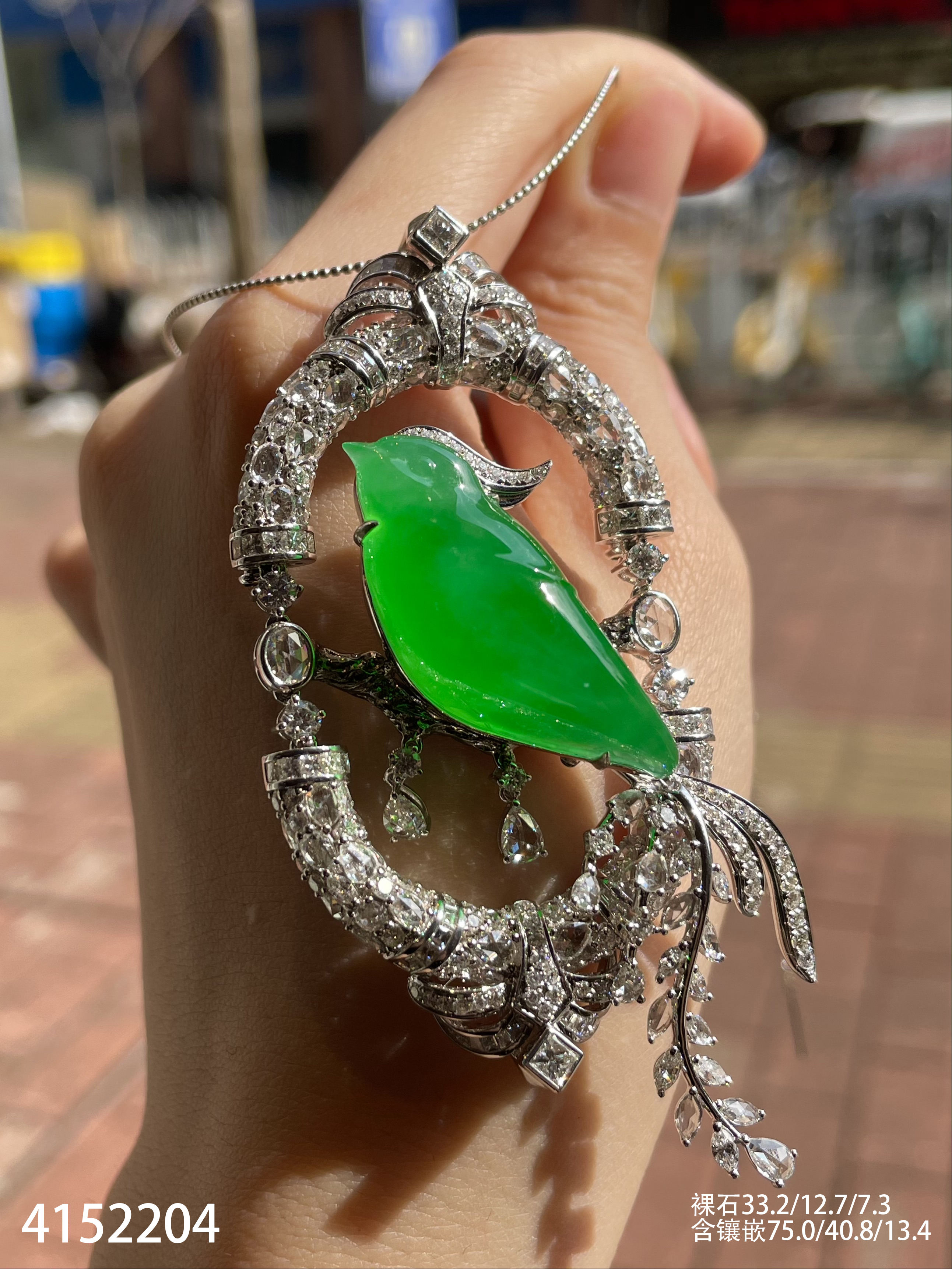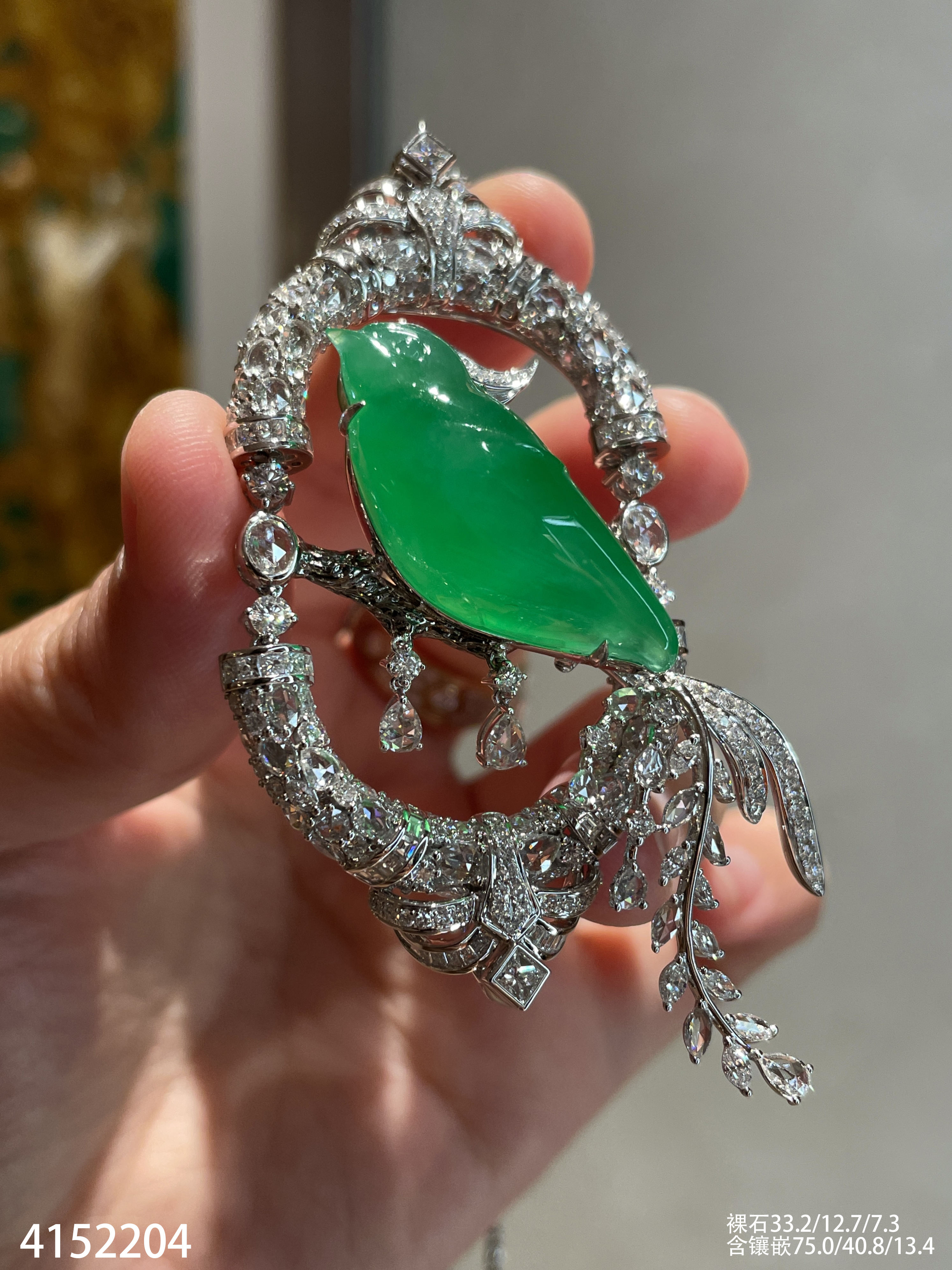 玻璃种木那喜鹊胸针【4152204】具体价格微信咨询
