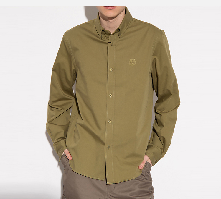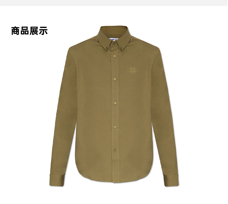 KENZO 高田贤三 男士棉质小虎头刺绣徽标翻领长袖衬衫 军绿色 FC55 CH400 1LH 49