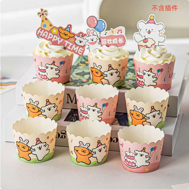 50个 【快乐小狗】机制纸杯 黄色粉色小狗图案蛋糕纸杯 马芬蛋糕纸杯纸托