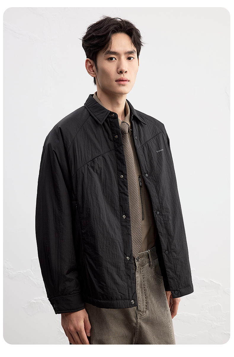 GXG男装25冬季时尚百搭简约翻领夹克户外山系男式短款保暖棉服K&C