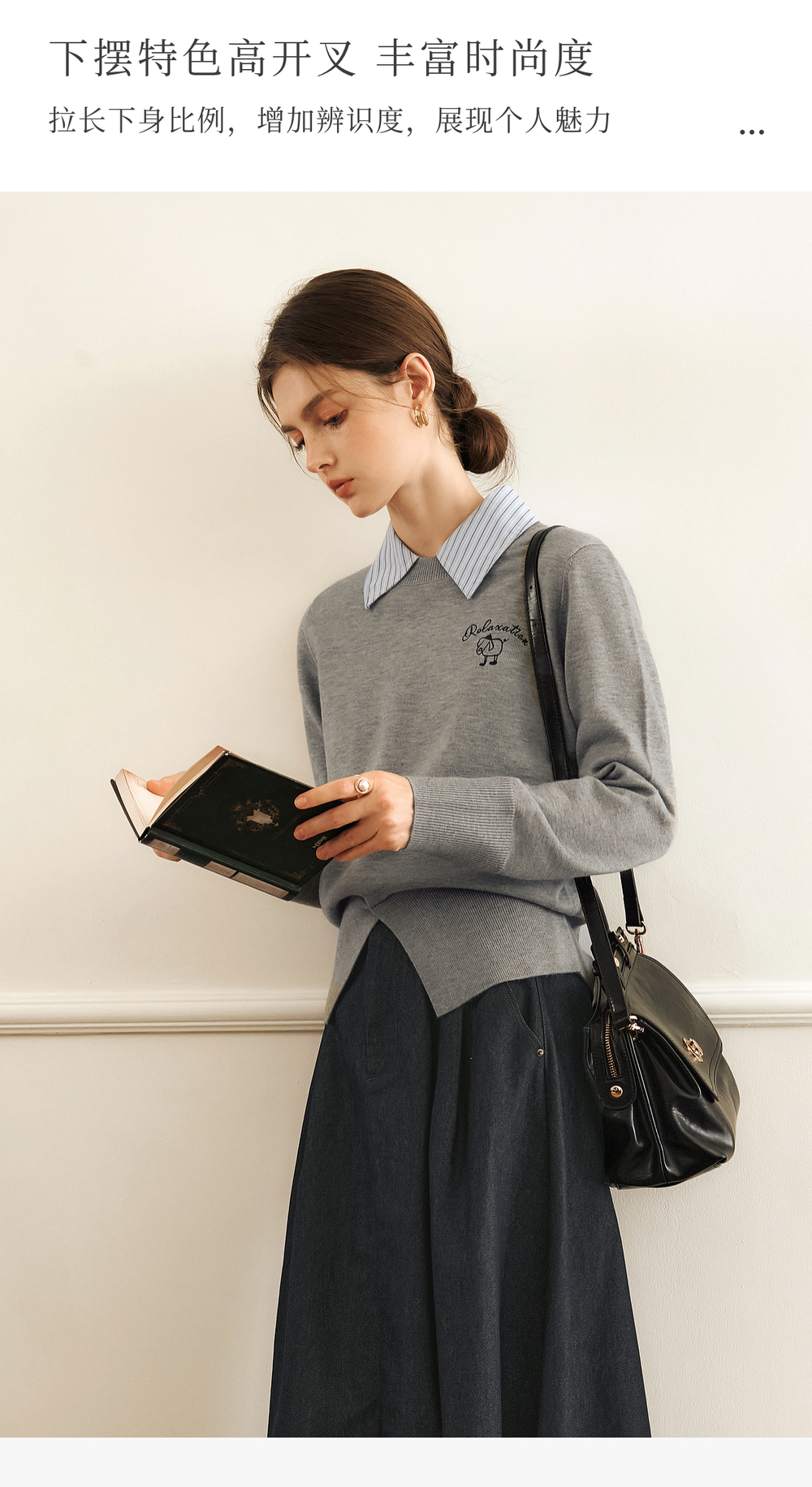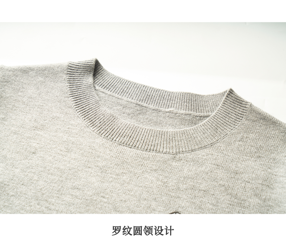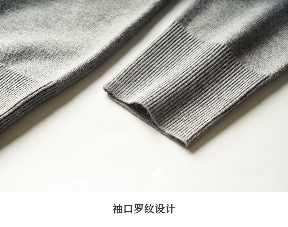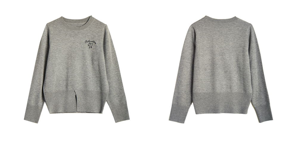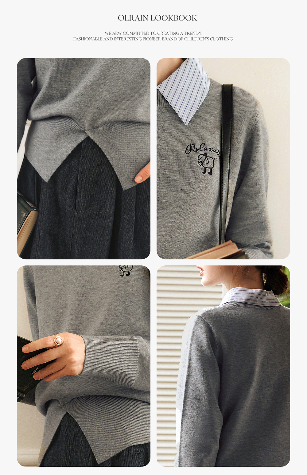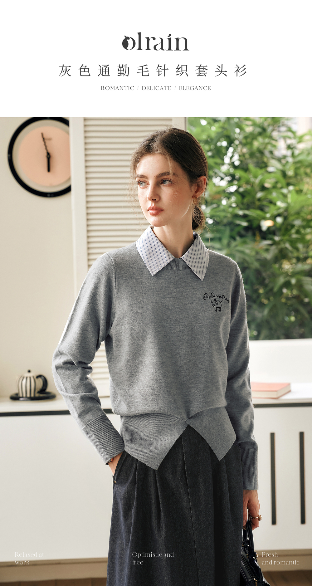 OLrain欧芮儿灰色套头针织衫女冬季2024年新款通勤开叉圆领长袖