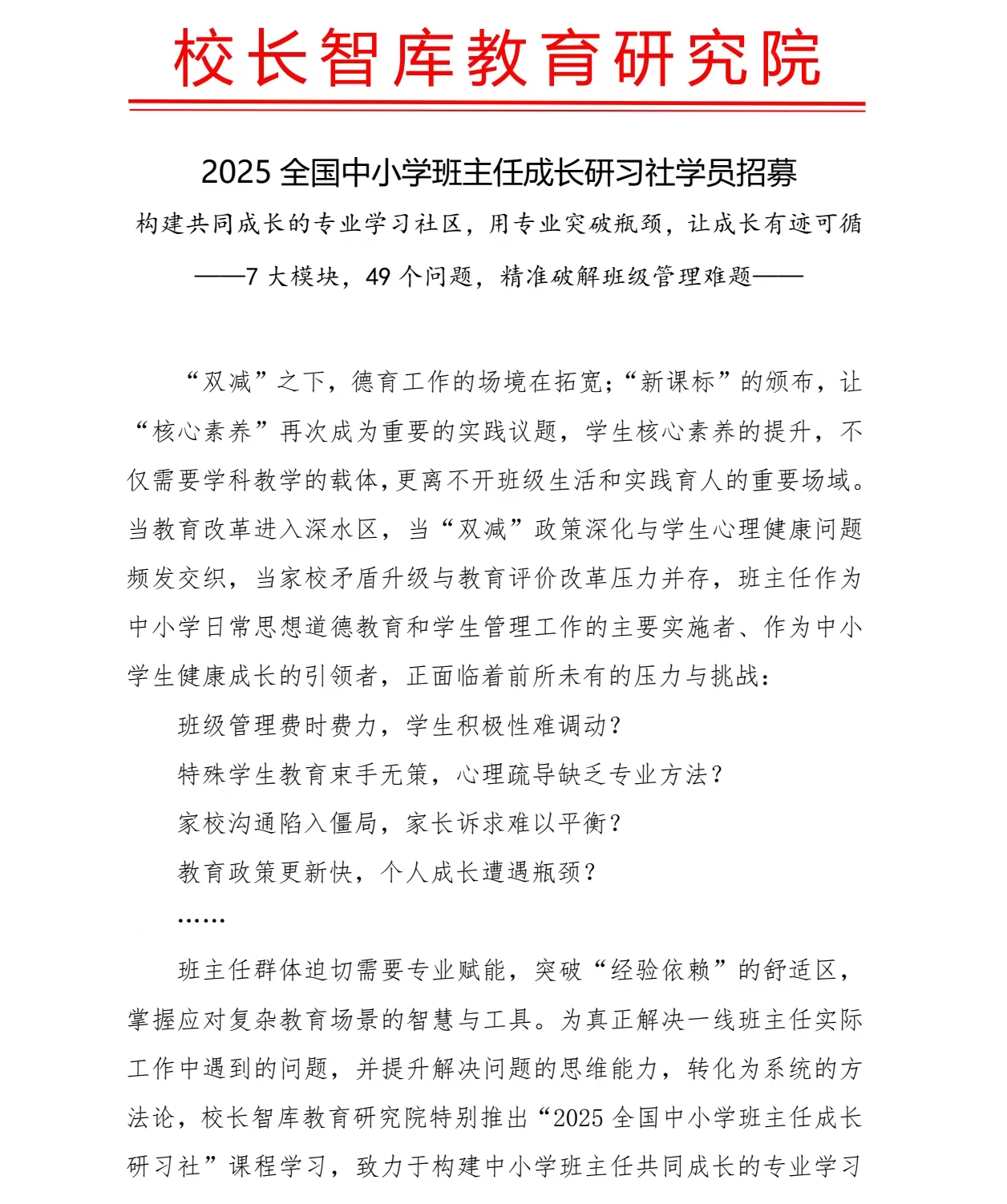 2025全国中小学班主任成长研习社学员招募 构建班主任共同成长的专业学习社区 校长智库教育研究院