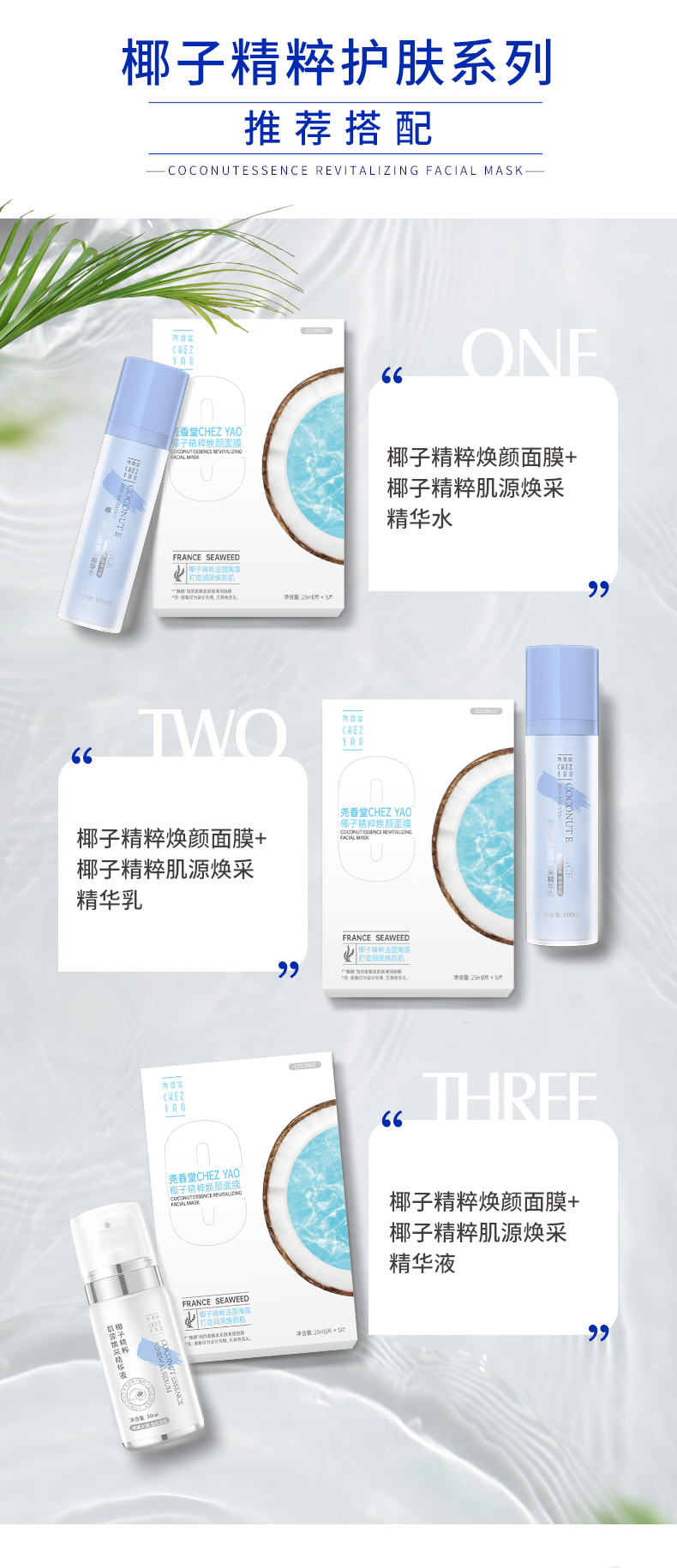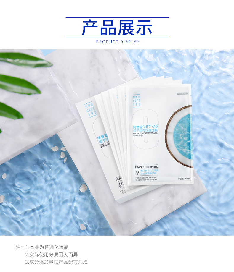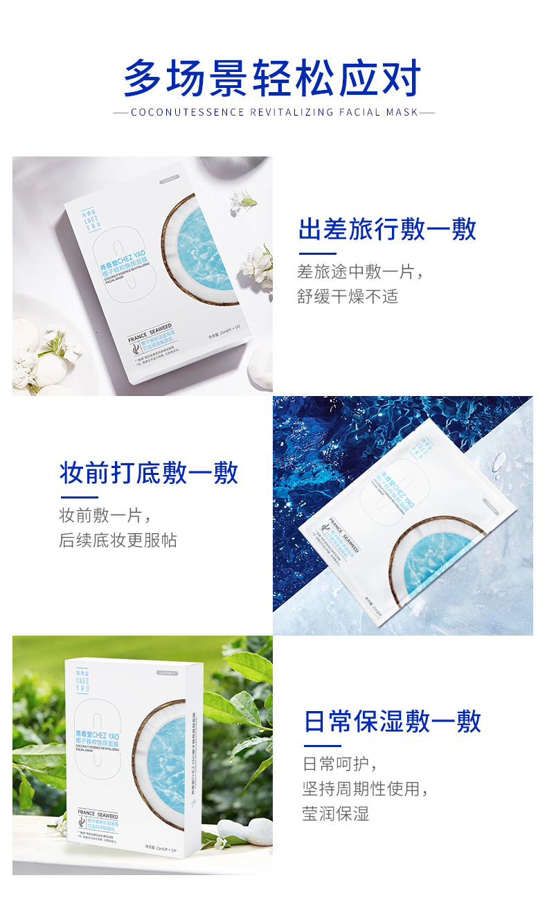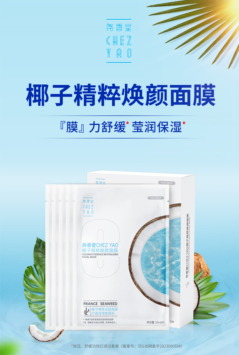 【买2送1,数量拍3】尧香堂椰子精粹焕颜面膜补水保湿舒缓滋润面部水润面膜25ml*5片
