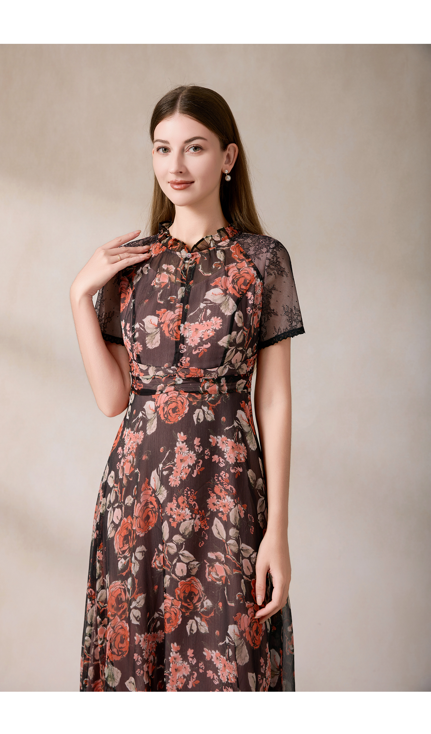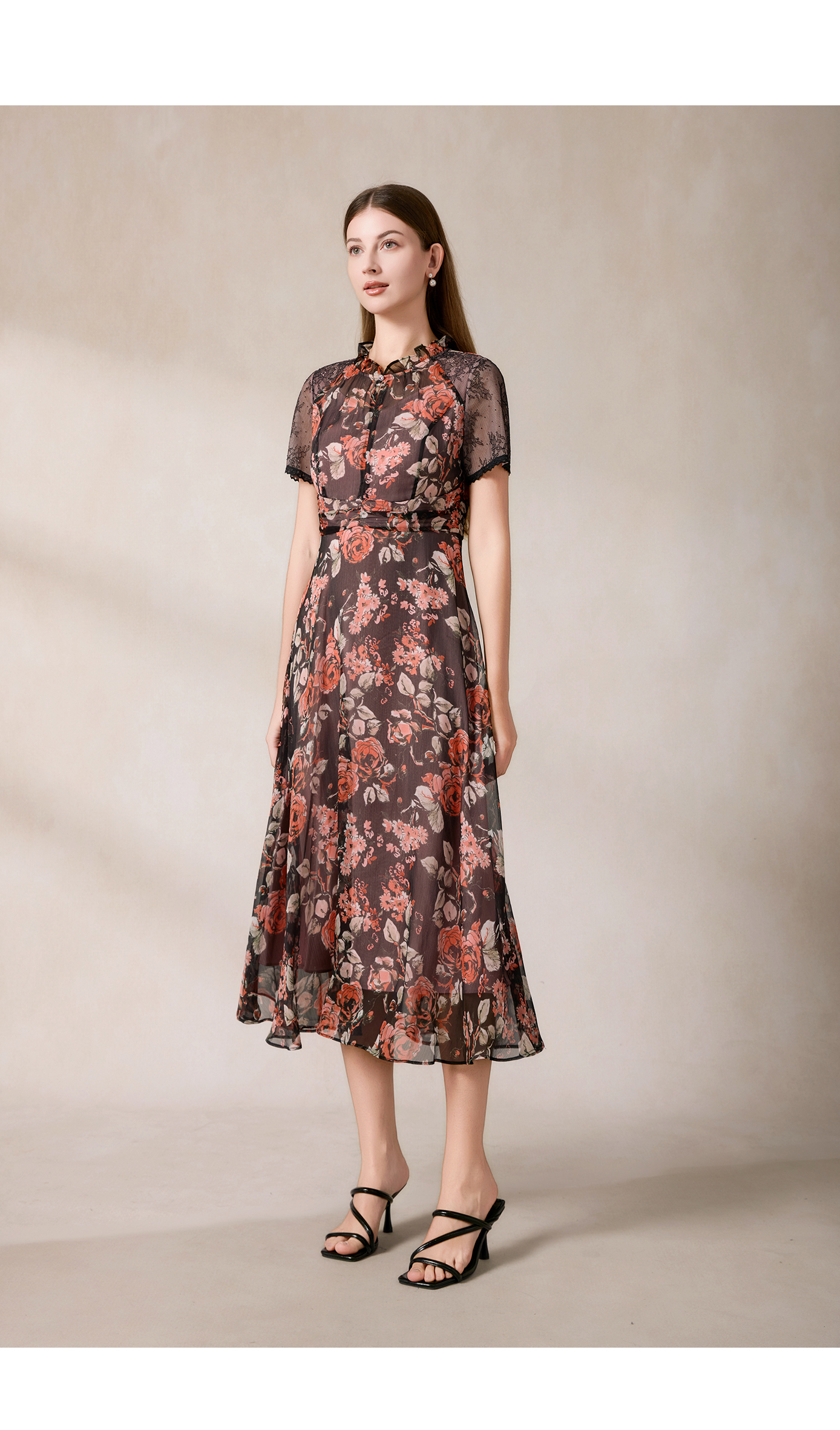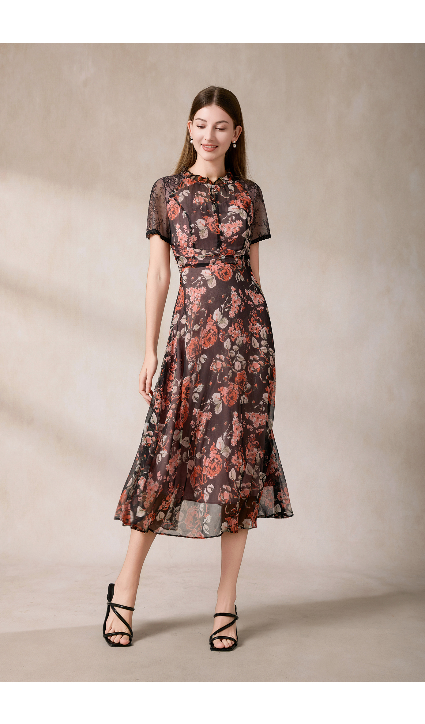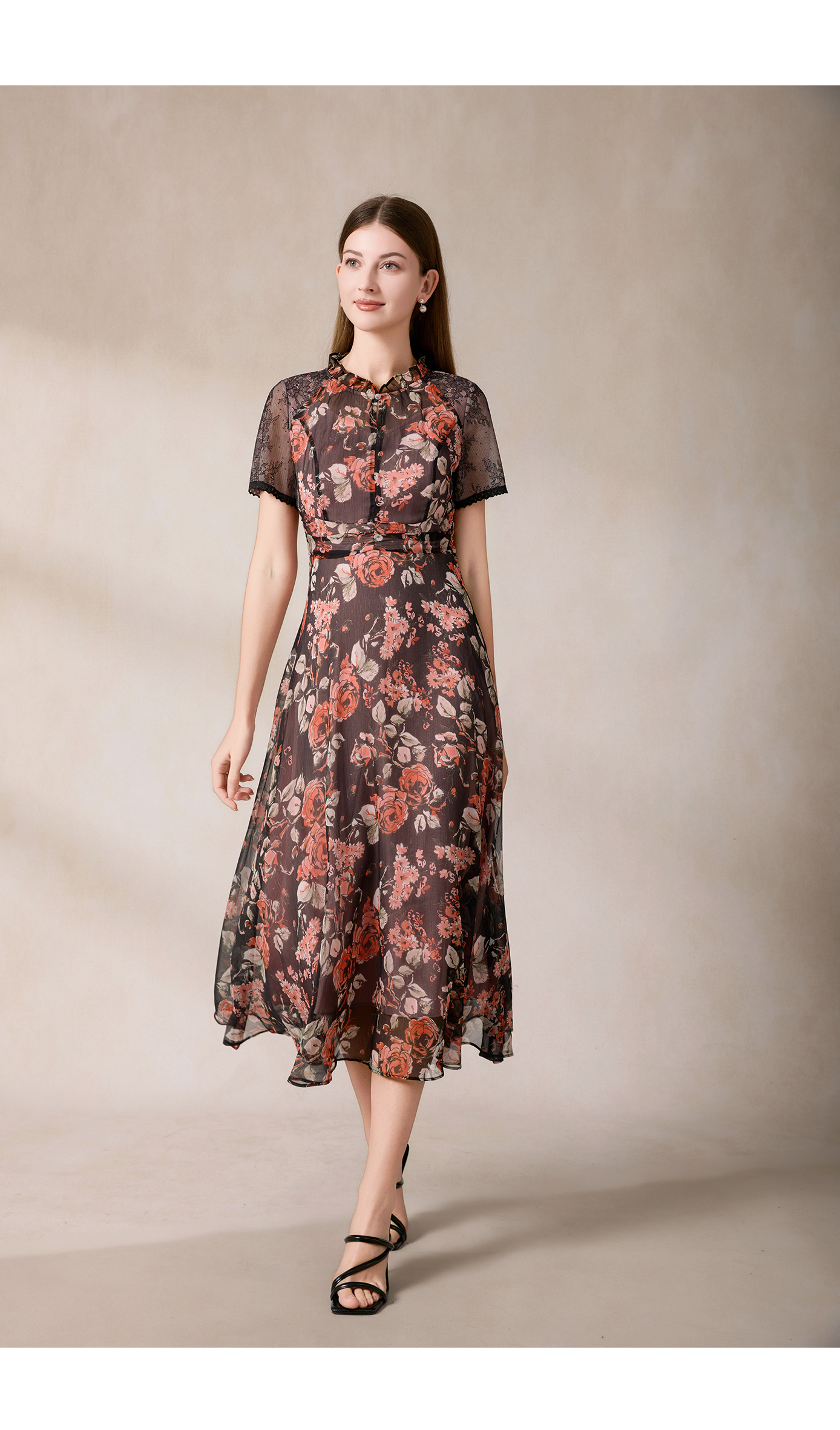 司歌收腰显瘦短袖度假裙连衣裙雪纺中长款裙A911323X
