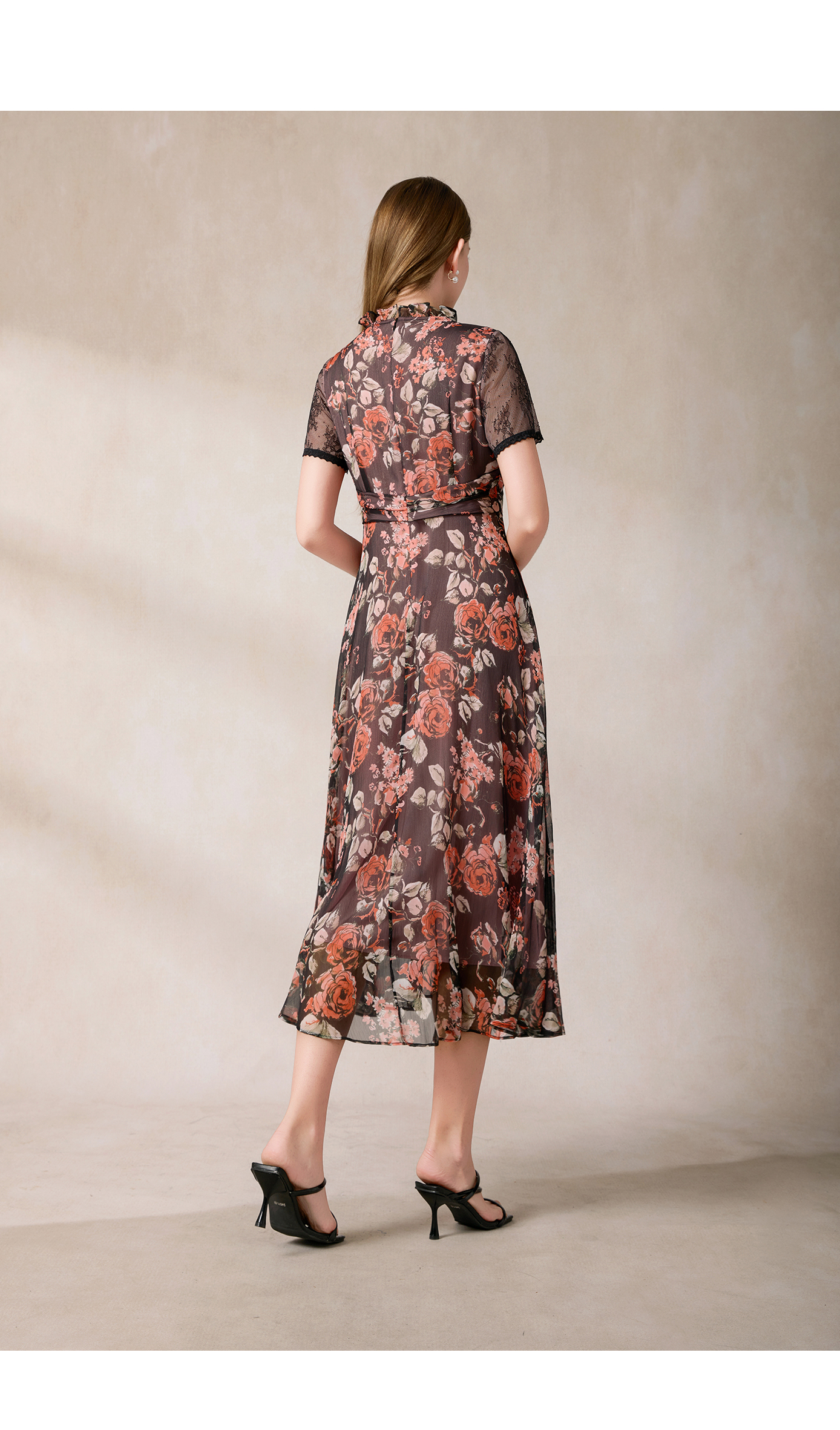 司歌渐变网纱长袖春秋连衣裙A921097X