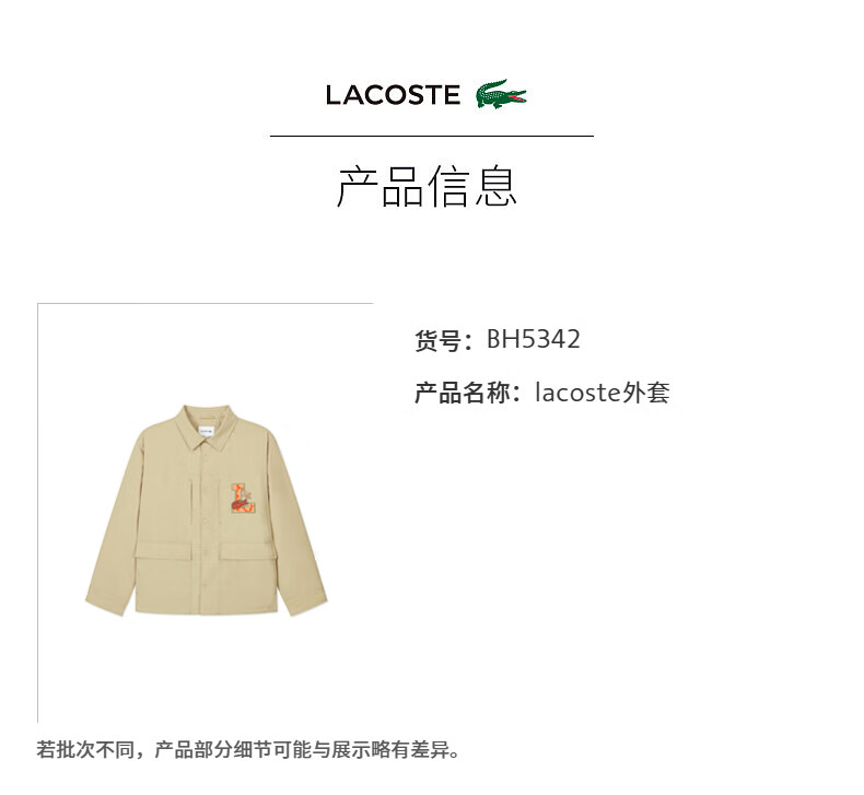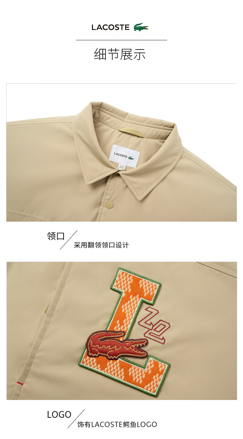 Lacoste福蛇新春系列男装新款潮流短款翻领棉服外套BH5342-98