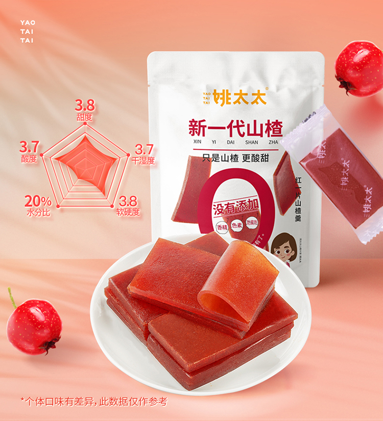 姚太太山楂羹128g*3袋红一片休闲山楂片蜜饯果脯零食