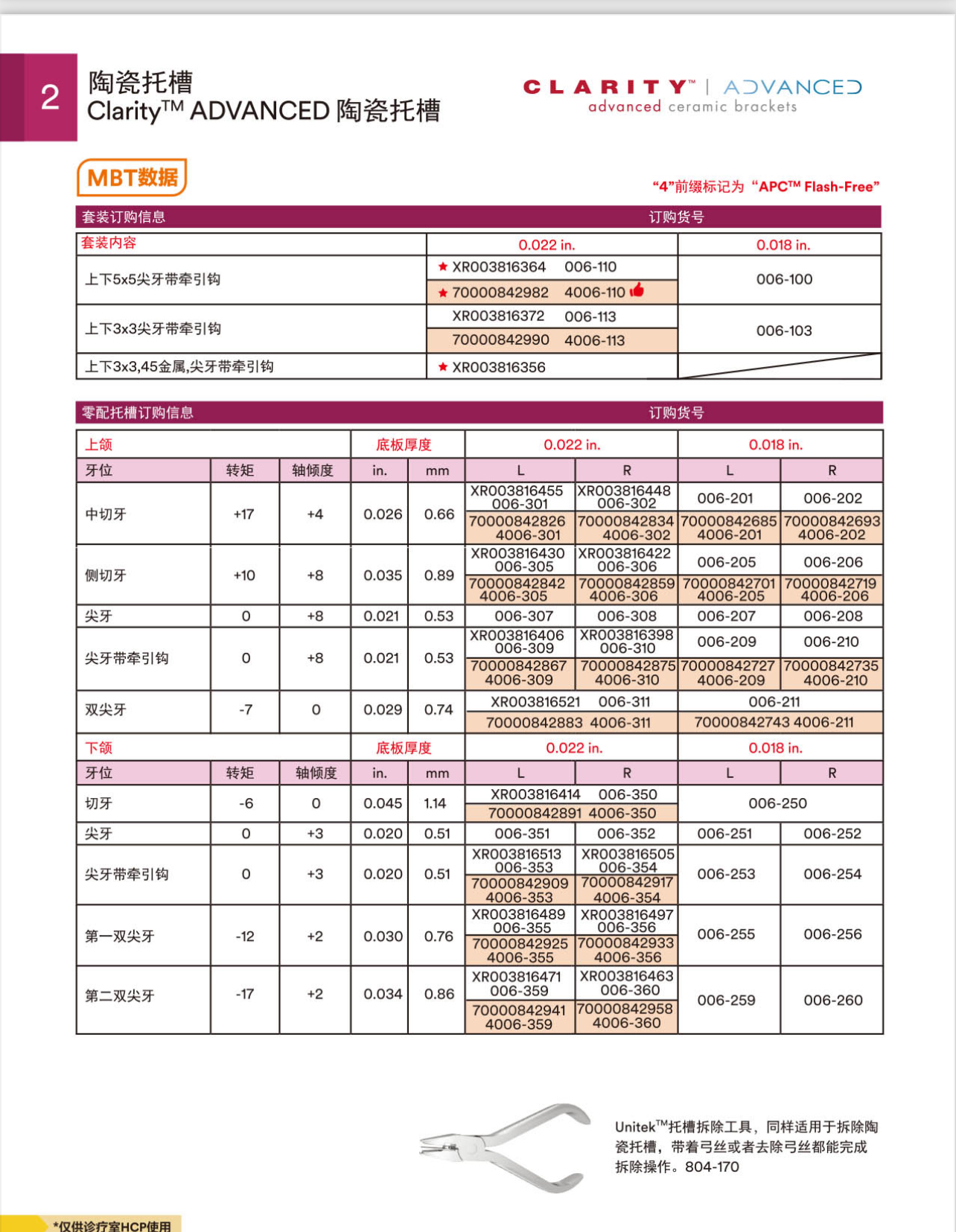 陶瓷托槽Clarity ADVANCED Ceramic Brackets(3M CA微多晶陶瓷托槽/正畸托槽)可议价