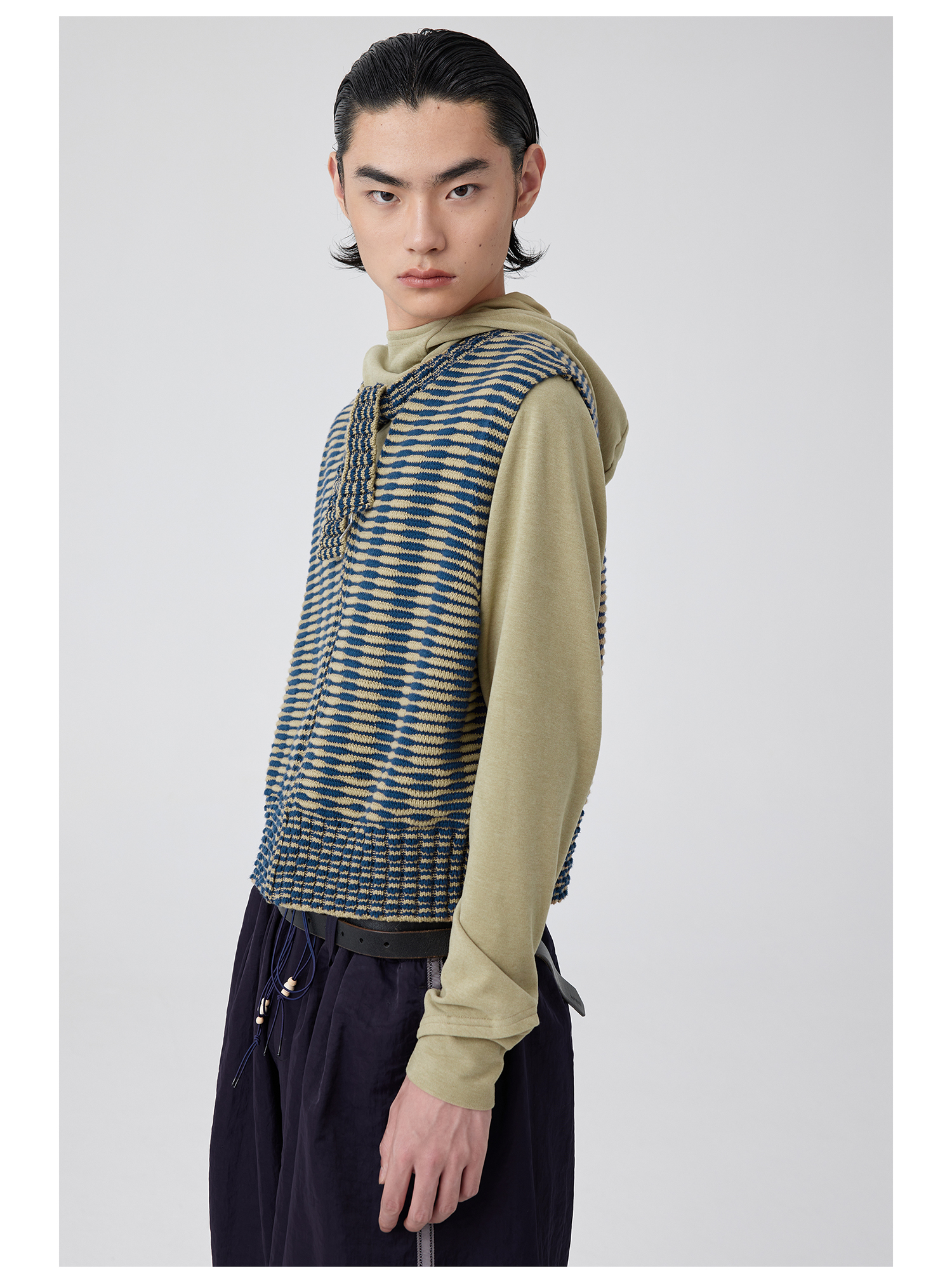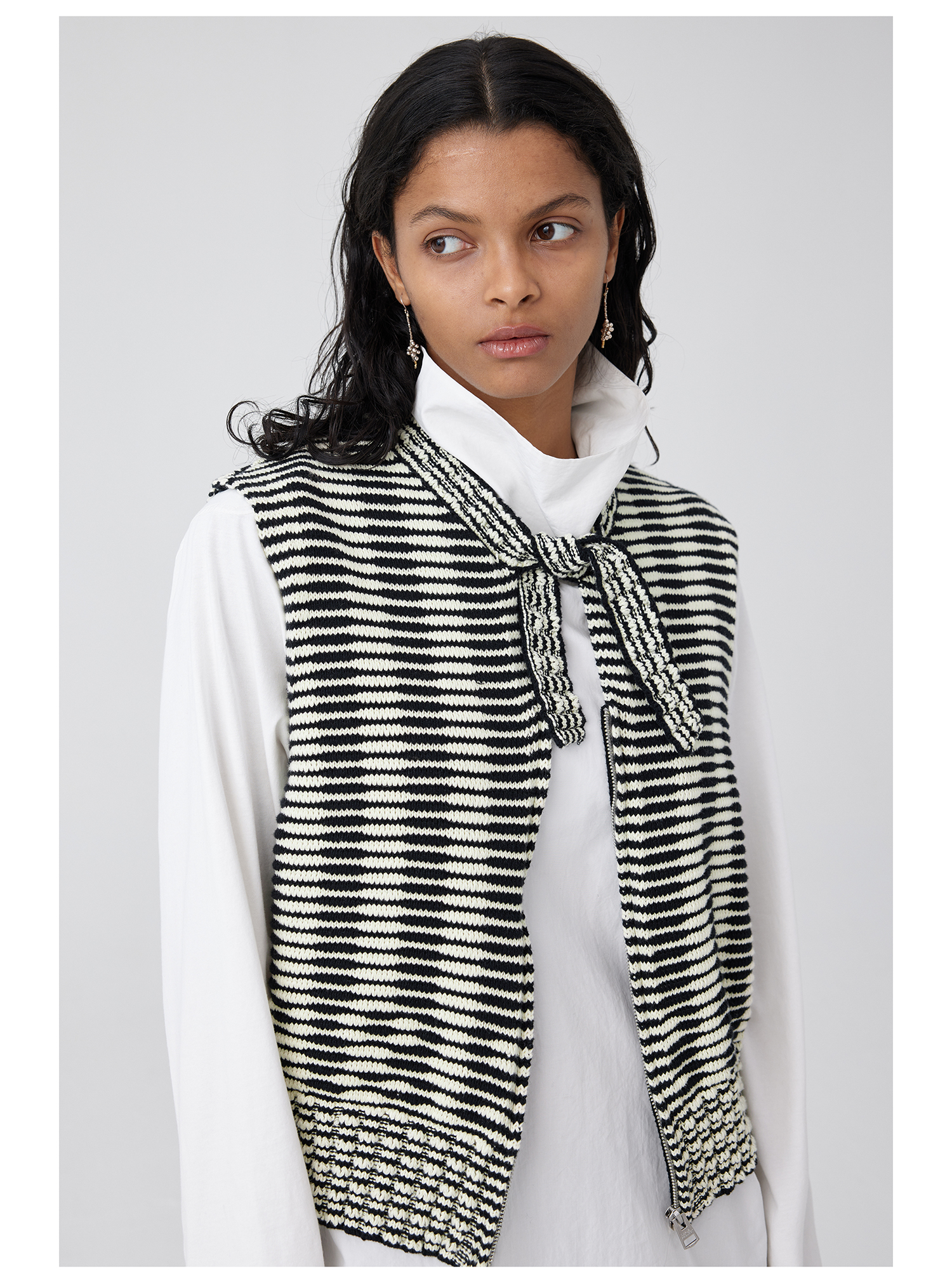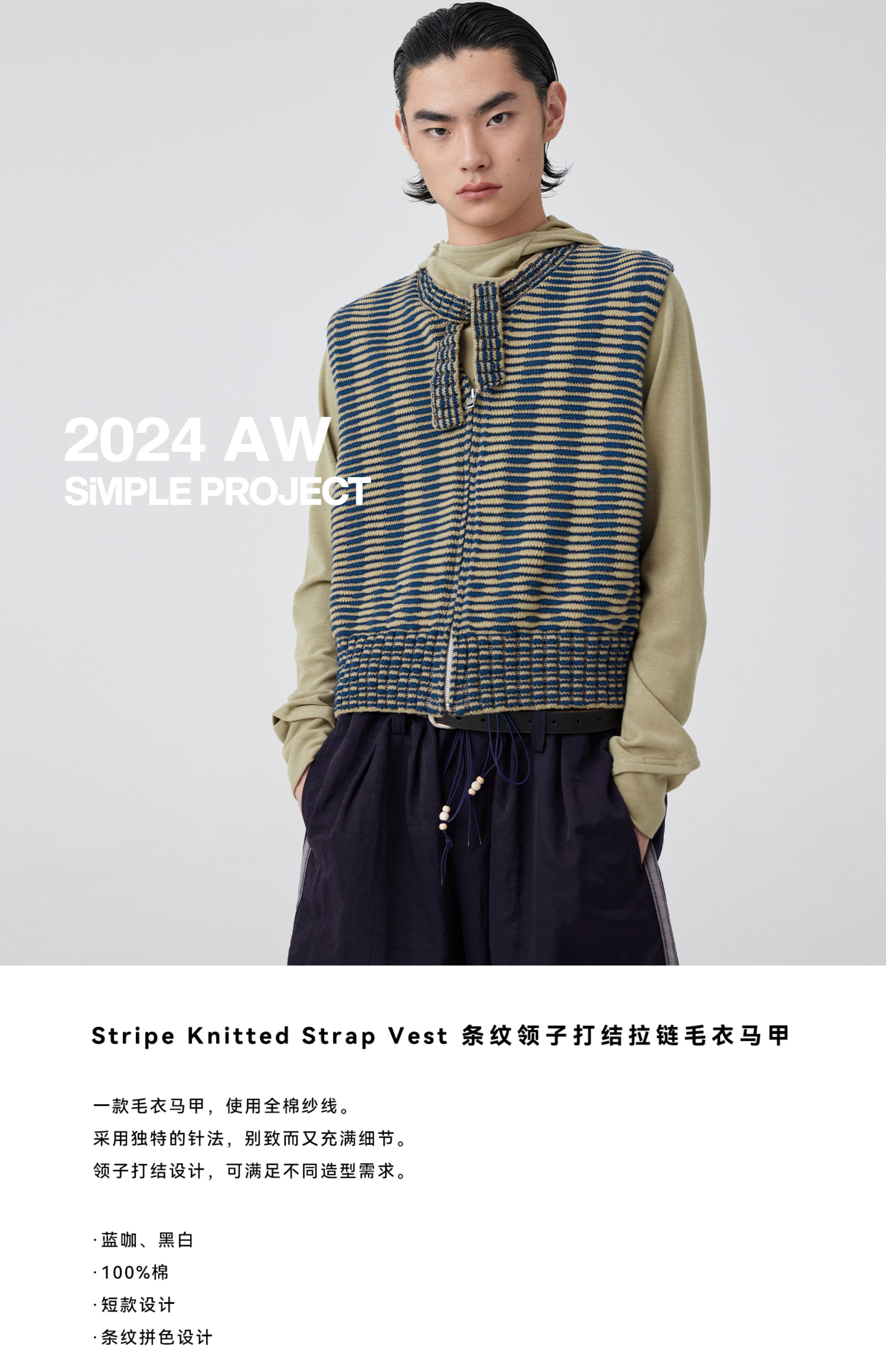 Simple Project/M24175/条纹领子打结毛衣马甲