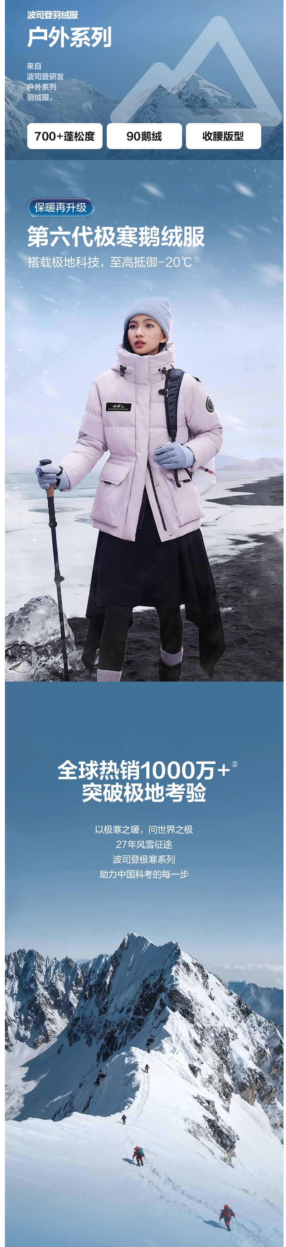 波司登冬季新款羽绒服女收腰短款极寒鹅绒连帽户外工装B250242302