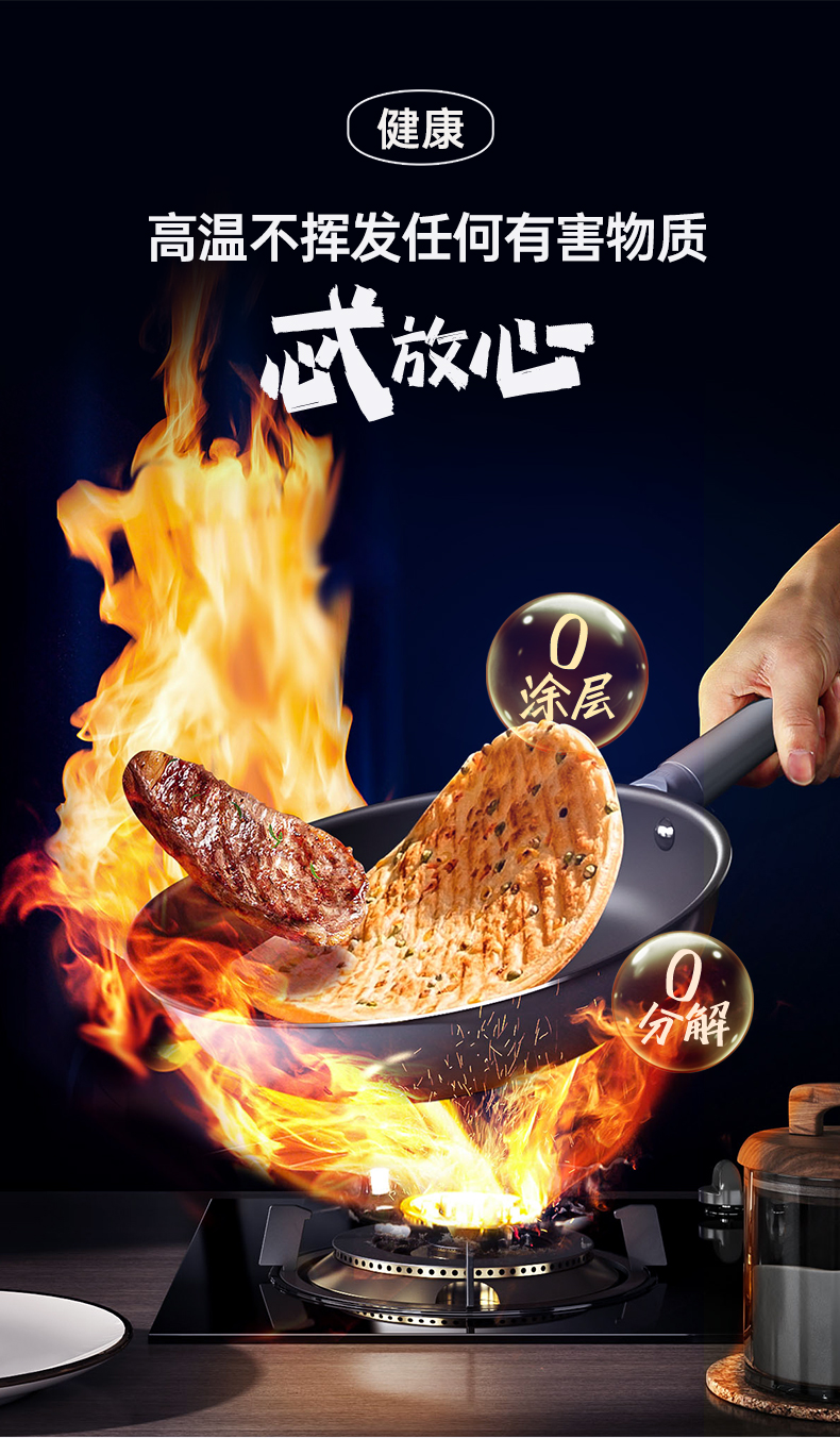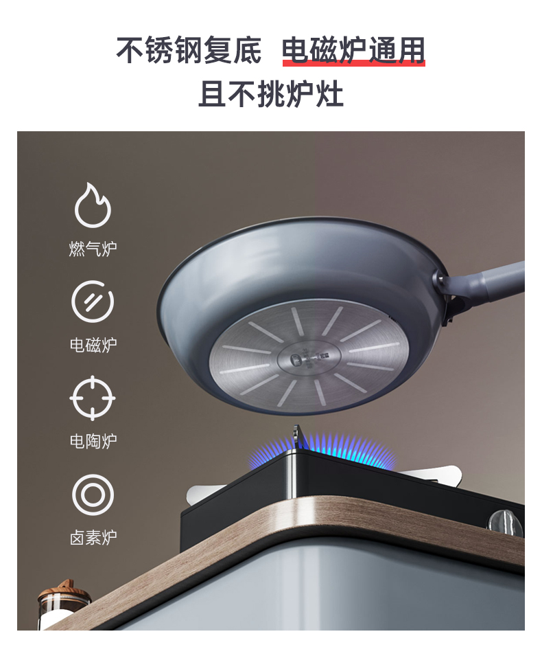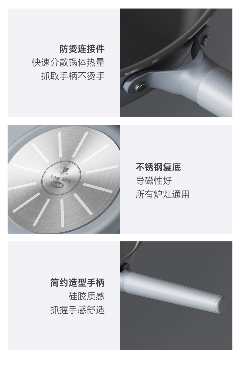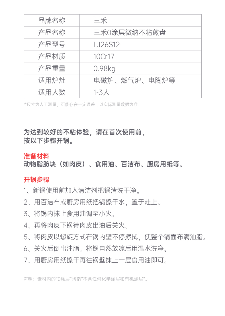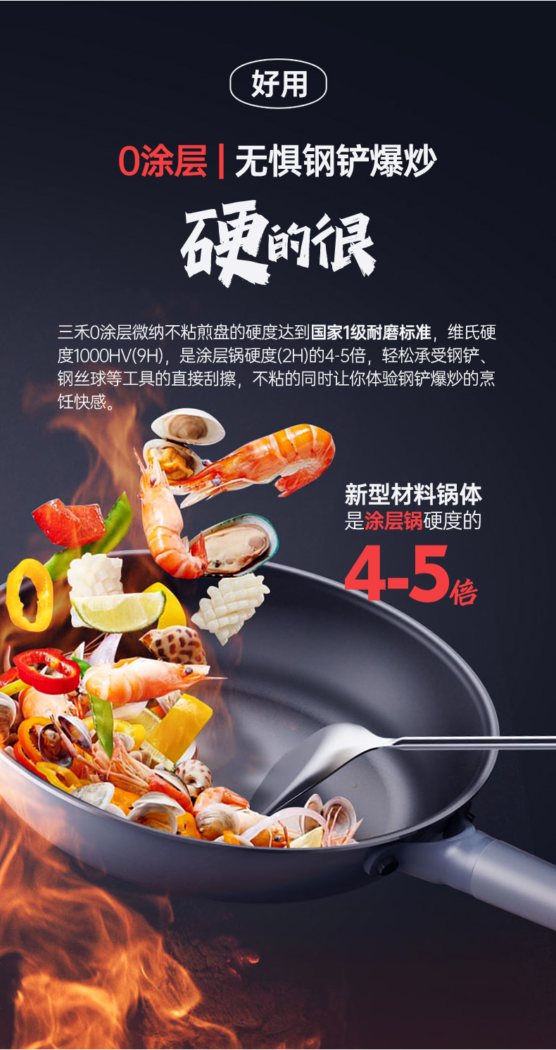 三禾0涂层微纳不粘平底煎锅26cm家用牛排煎锅煎饼煎蛋神器厨具
