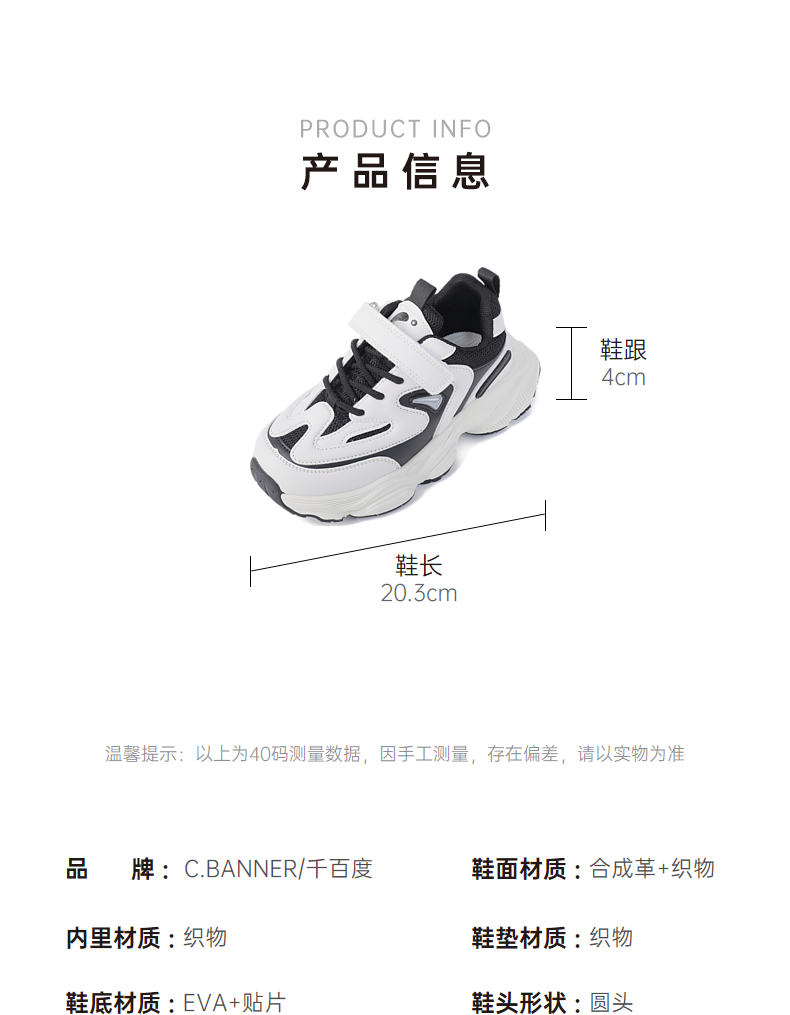 千百度厚底熊猫鞋女春季增高休闲板鞋黑白鞋时尚运动鞋A24113812