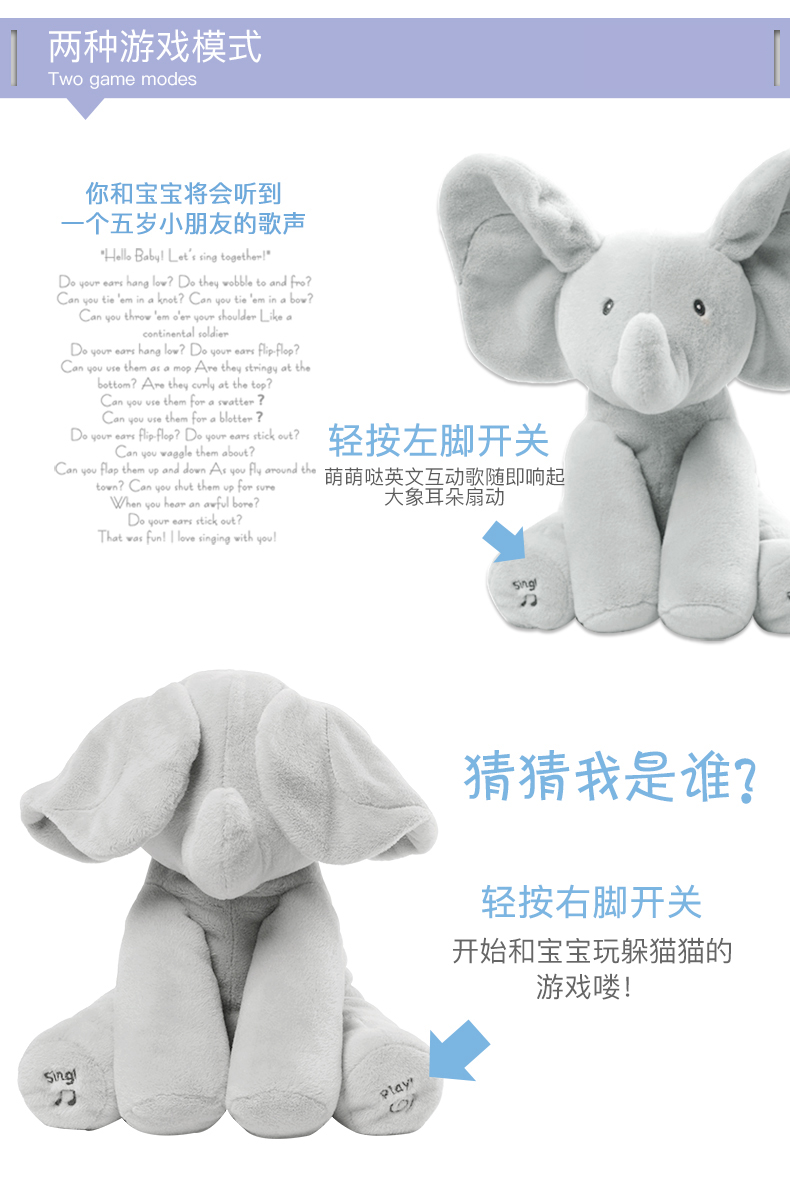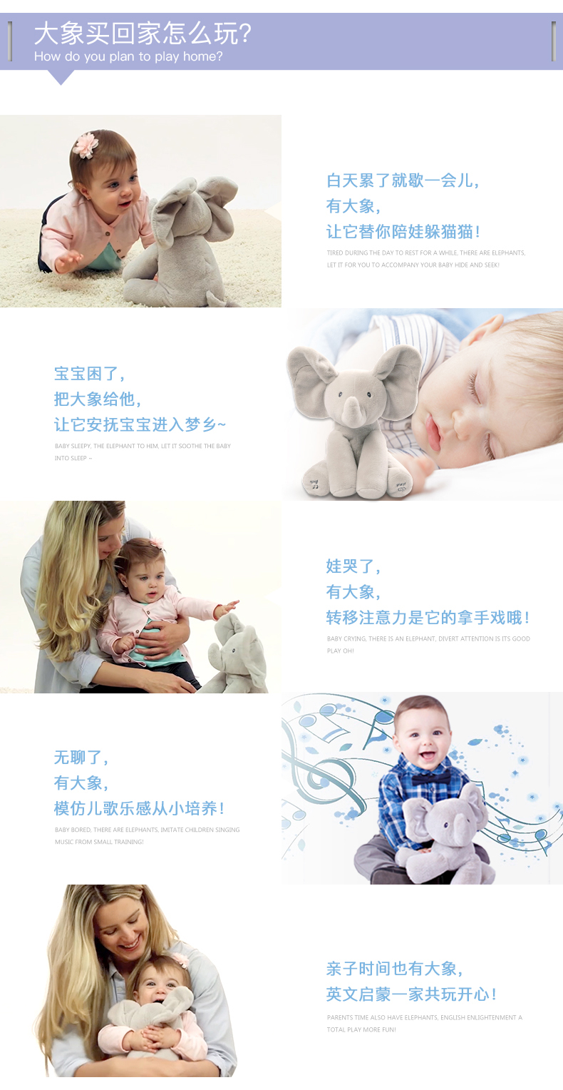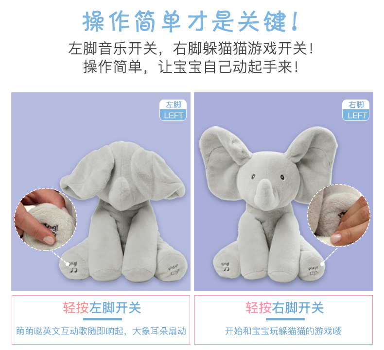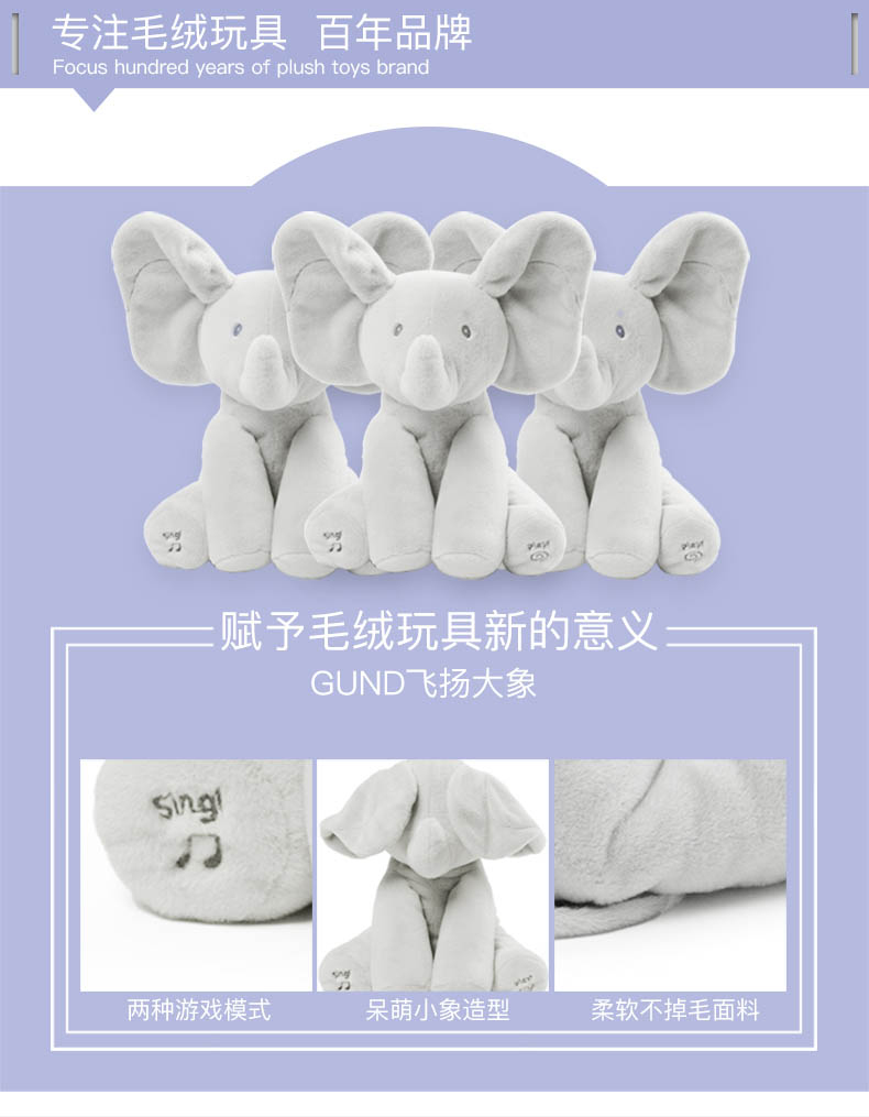 BabyGund菲比害羞小象会躲猫猫婴儿音乐英文启蒙毛绒玩具安抚玩偶6049314