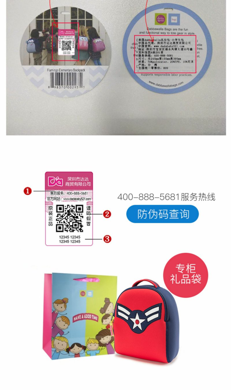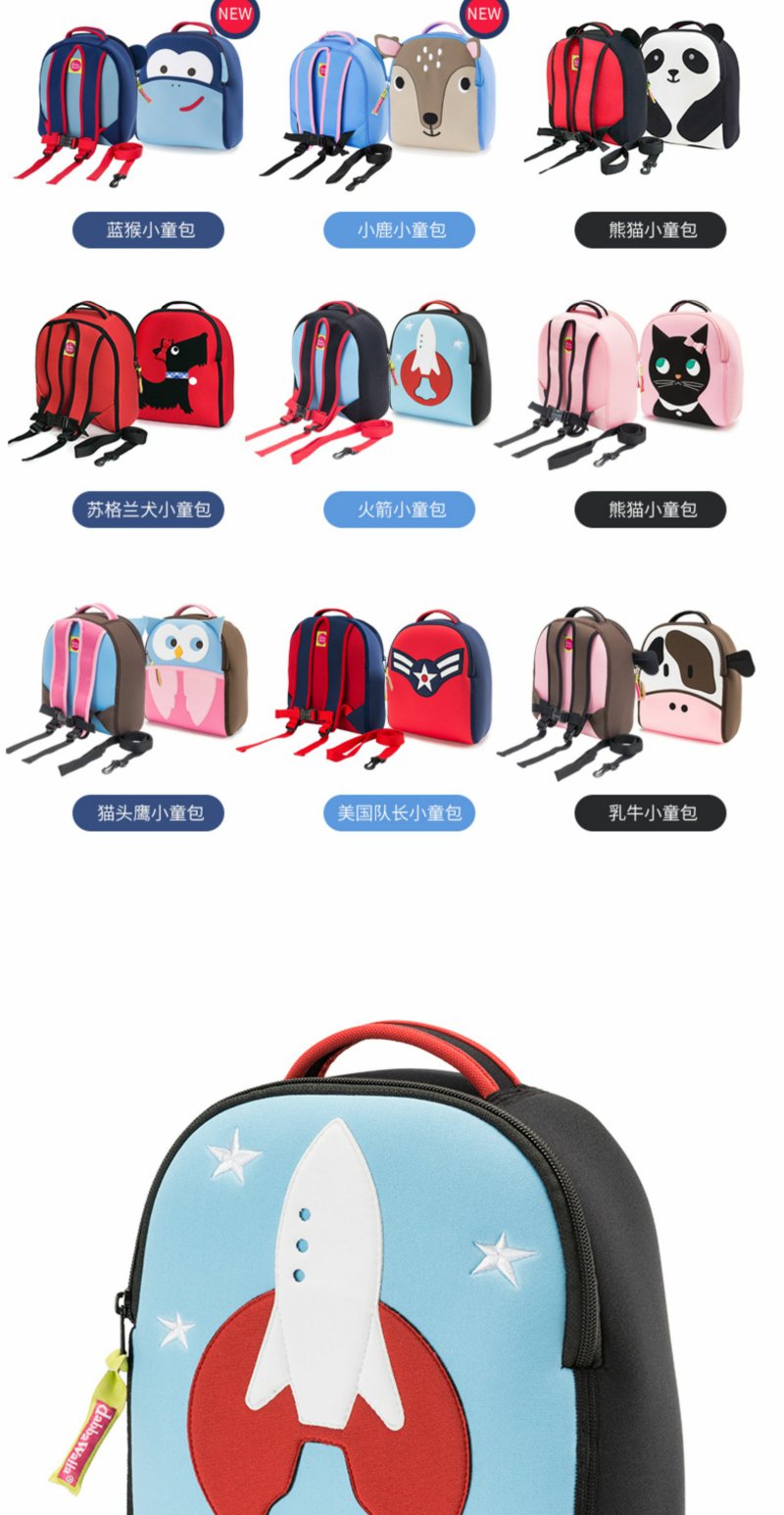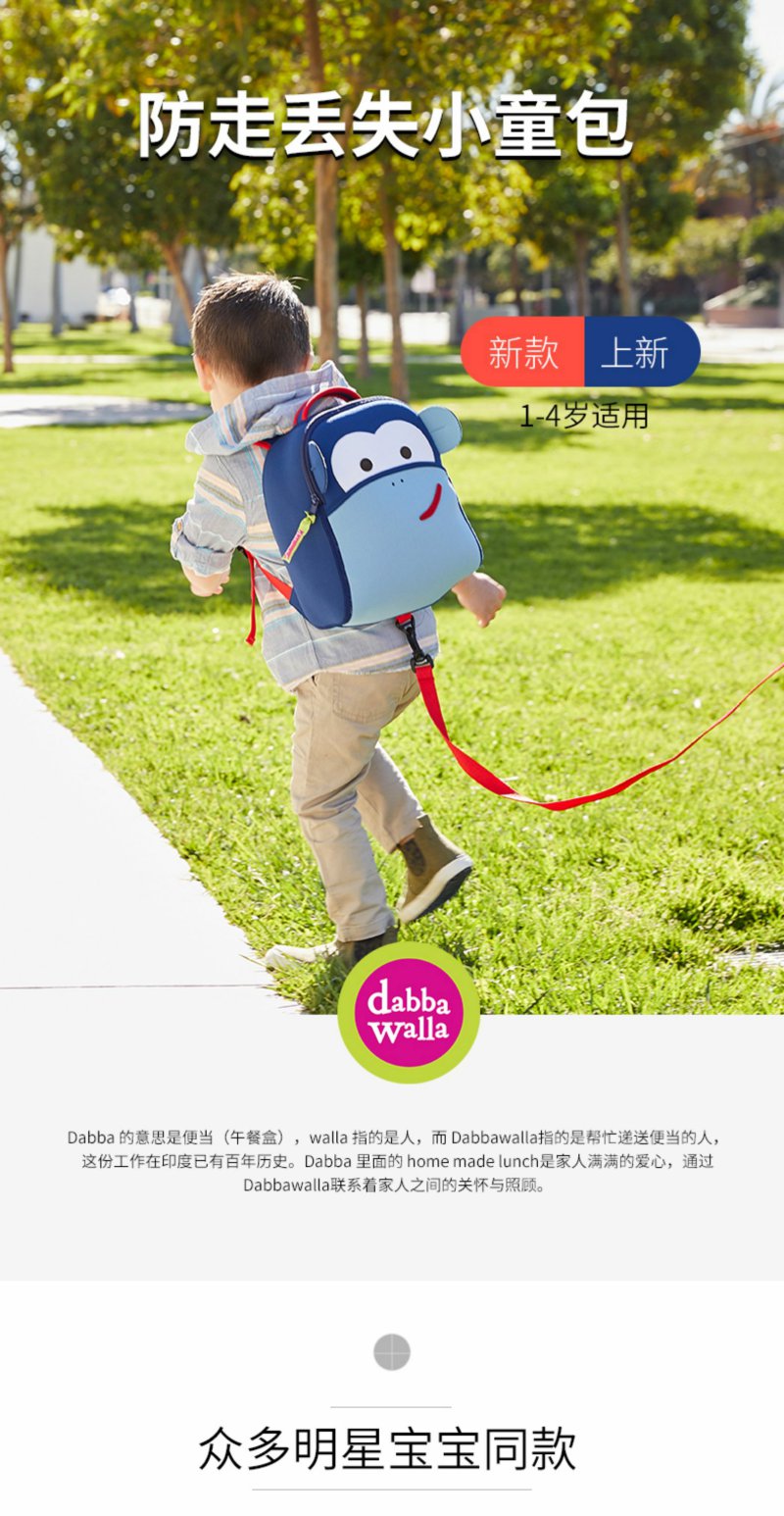 美国dabbawalla瓦拉包男女儿童防走失包牵引绳迷你双肩书包1-4岁