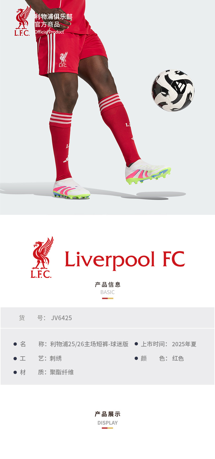 【官网同款】利物浦俱乐部 | 利物浦25/26主场球迷版短裤男女同款夏季