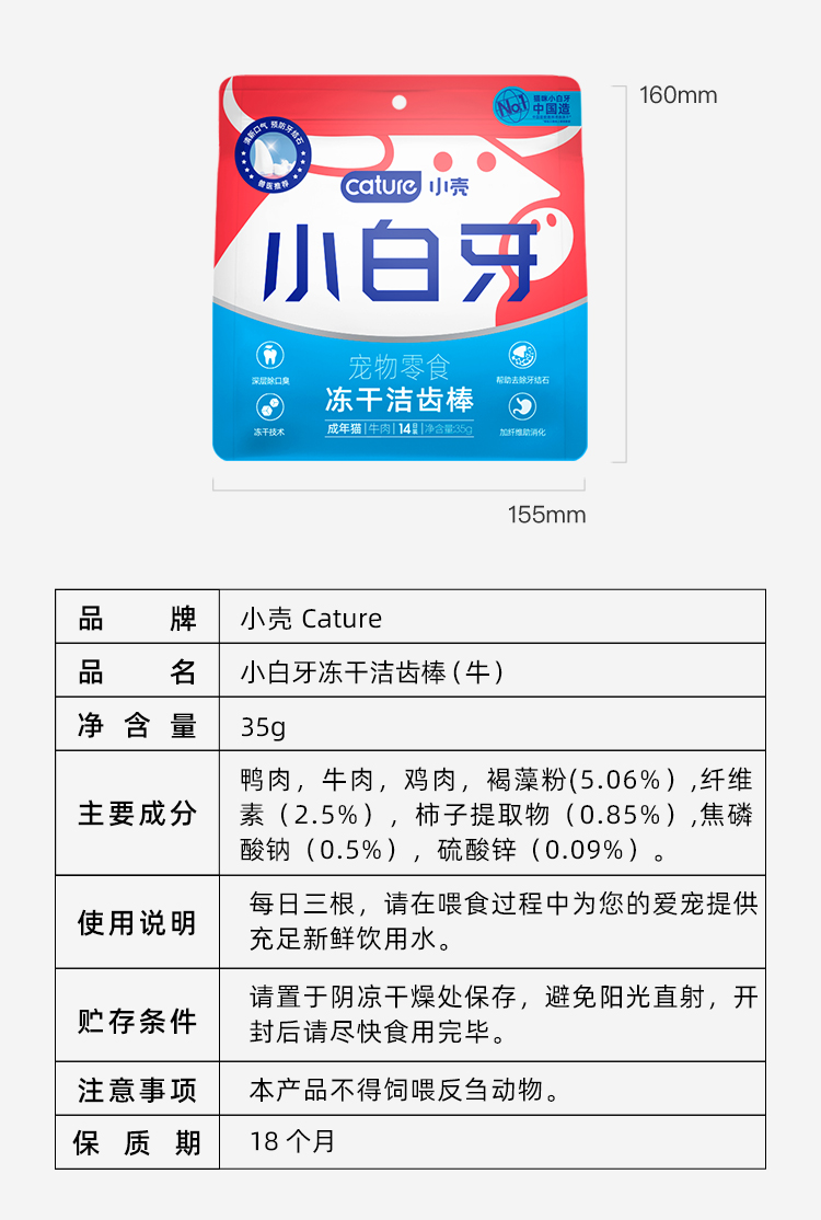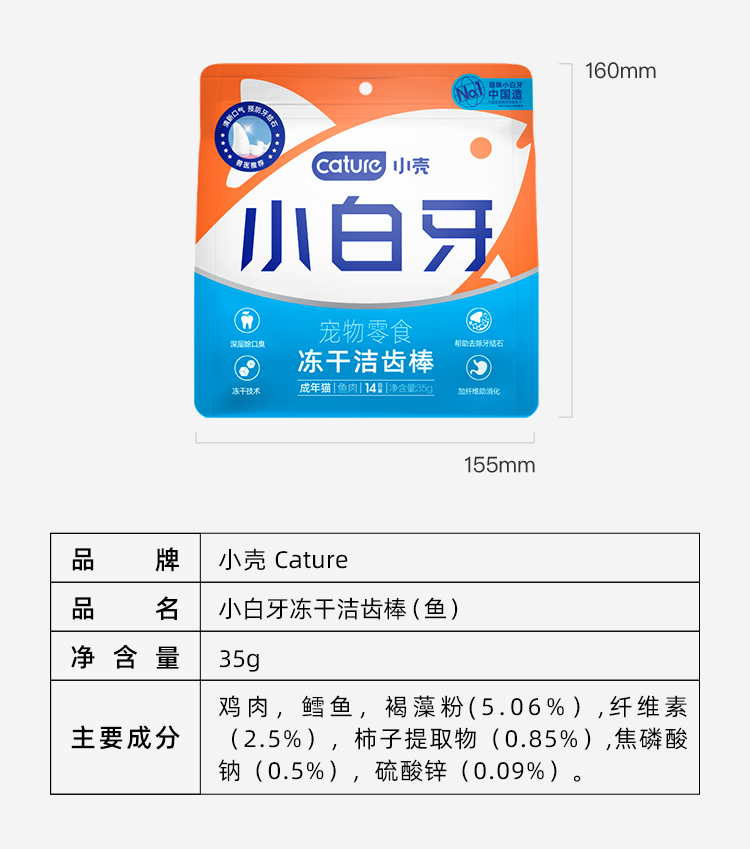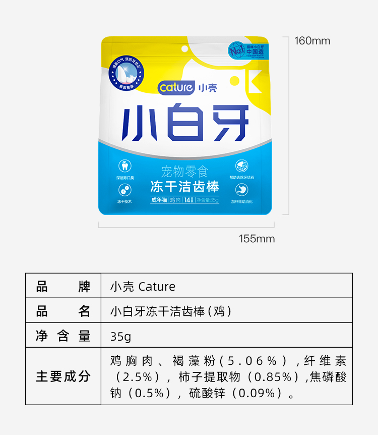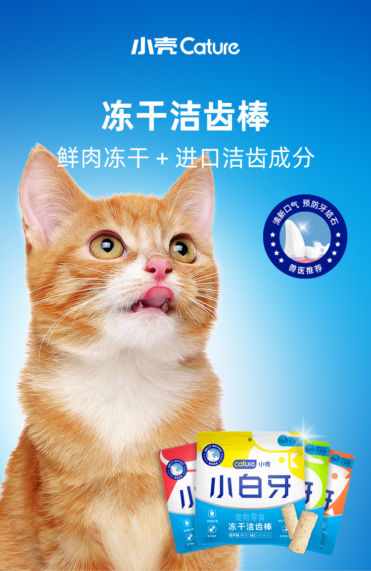 小壳小白牙冻干猫咪零食猫咪用品鸡肉洁齿棒