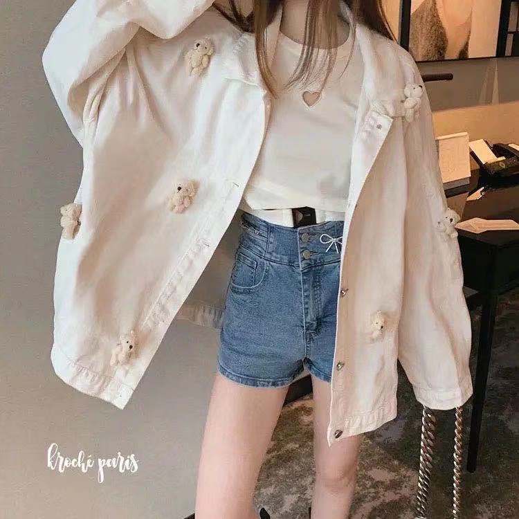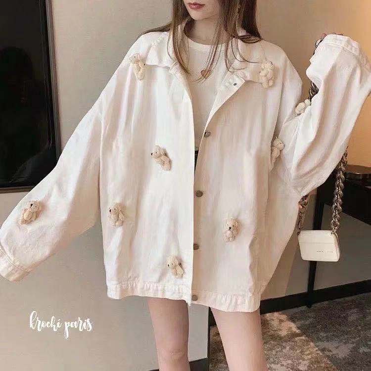 送小熊韩版纯色港风外套女学生秋季新款复古宽松百搭夹克工装上衣