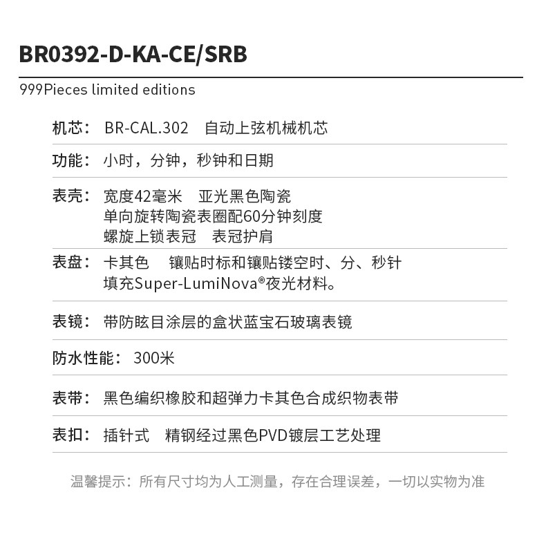 Bell & Ross 柏莱士 INSTRUMENTS系列 BR0392-D-KA-CE/SRB 腕表