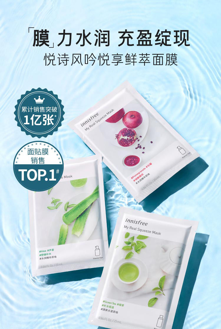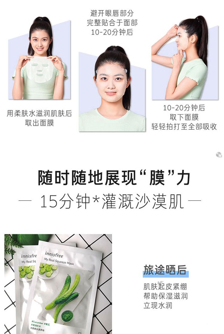 【预售 急单慎拍】悦诗风吟鲜萃面膜补水保湿水润紧致弹润滋养舒缓修护黄瓜10片装