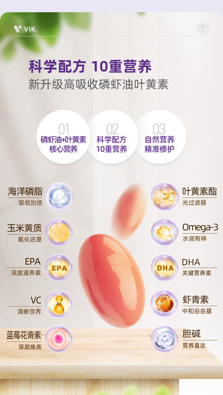 【主要成分】叶黄素酯10mg、玉米黄质2mg、磷虾油10mg