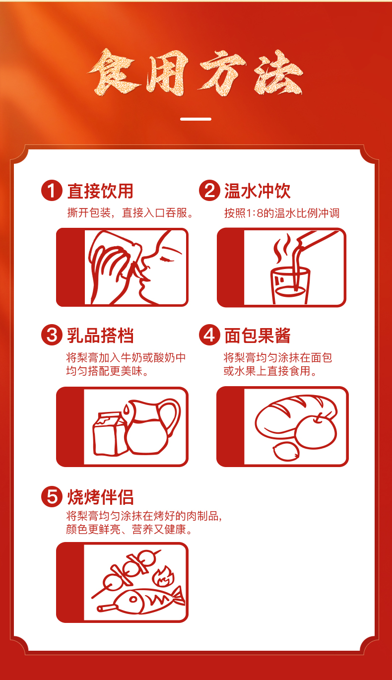6.好彩头 开好运:梨膏名字本身就是最好的彩头,大吉大“梨”,步步“膏”升