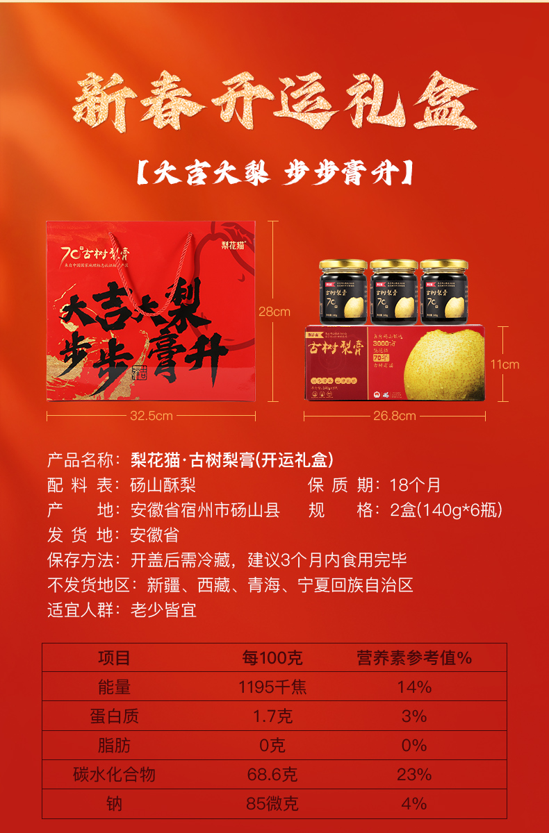 【品名】梨花猫古树梨膏开运礼盒(新春限定款)