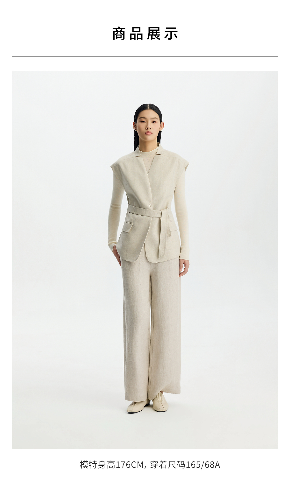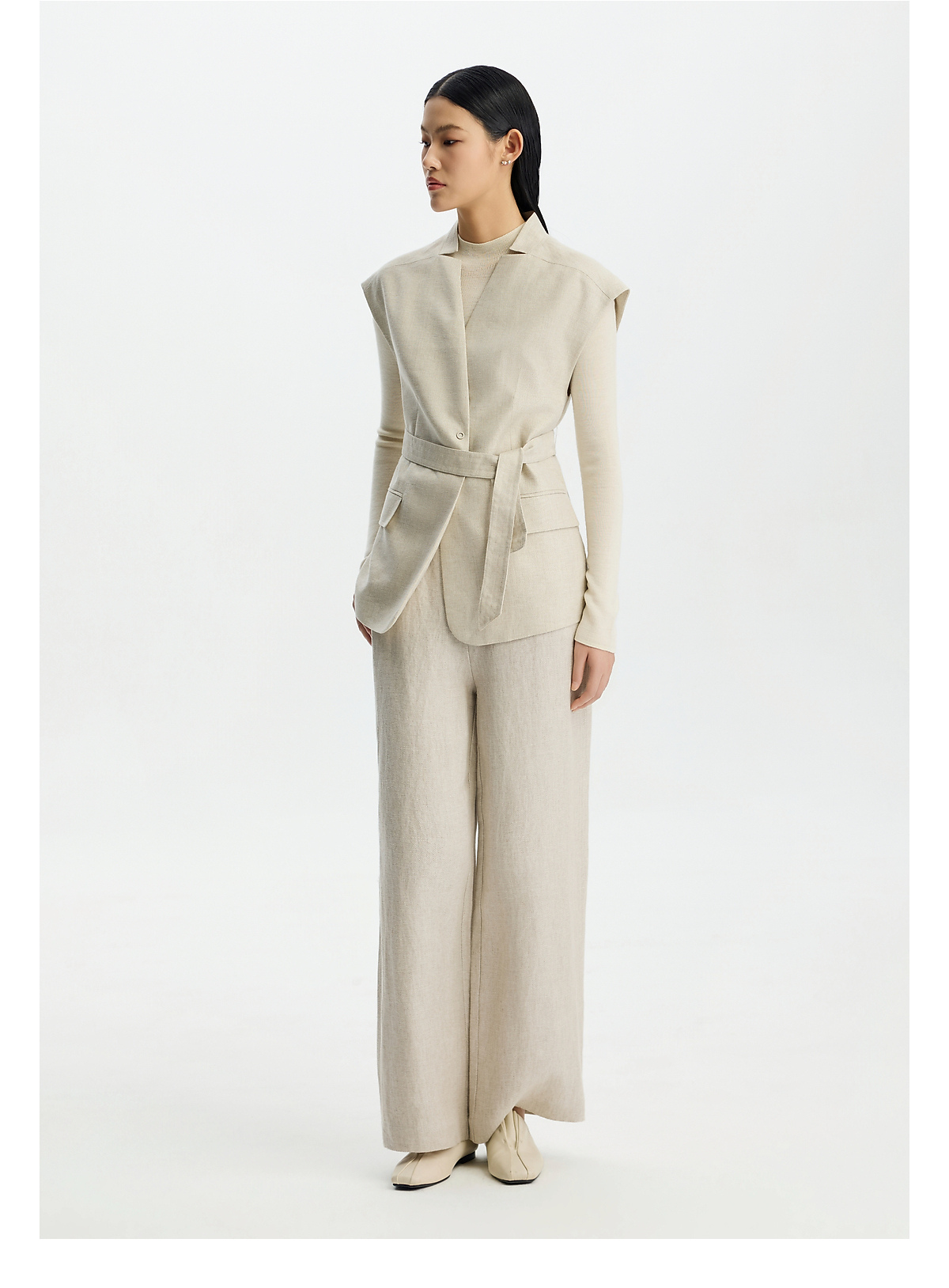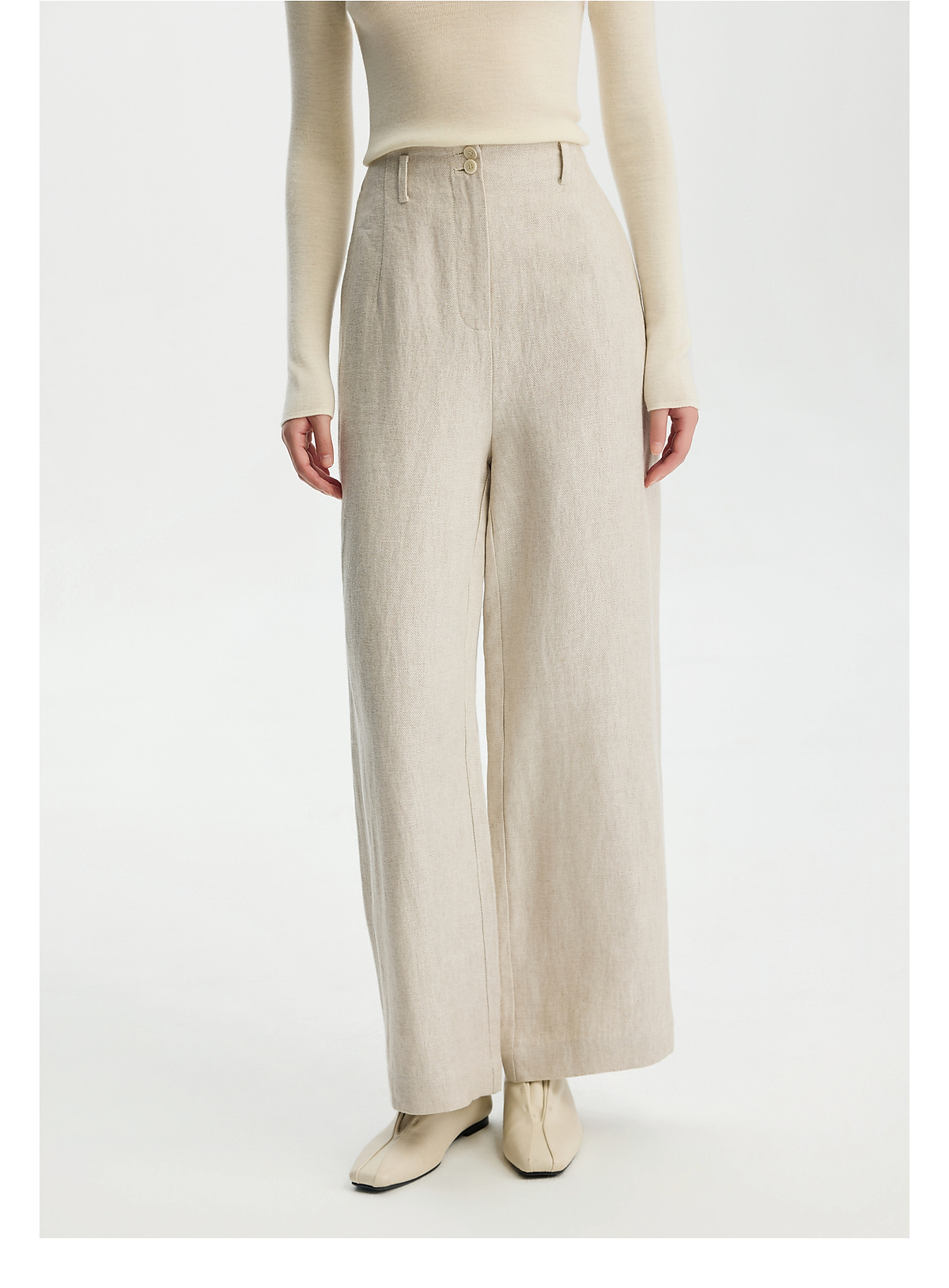 商场同款PURE TOUCH女装 26春夏新款亚麻直筒休闲裤高腰宽松长裤
