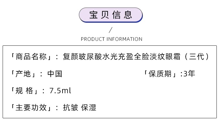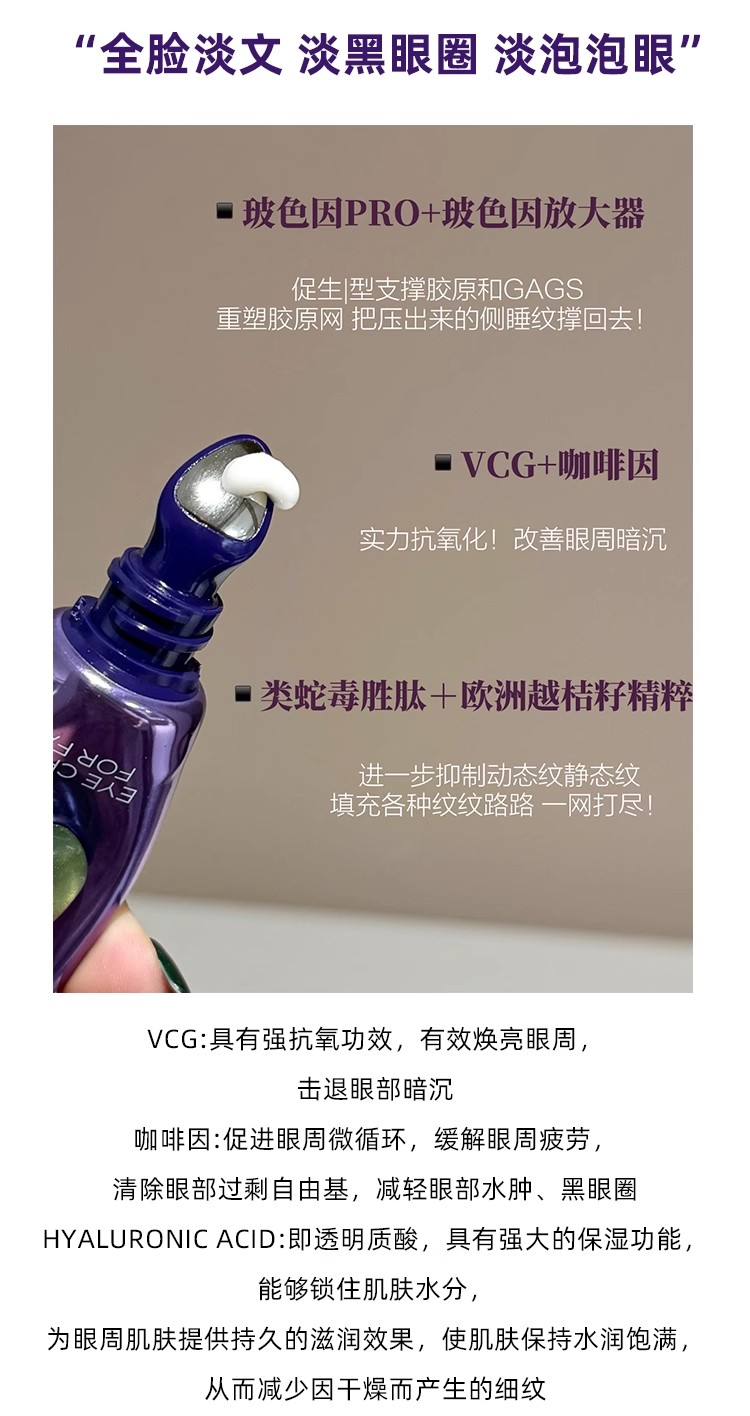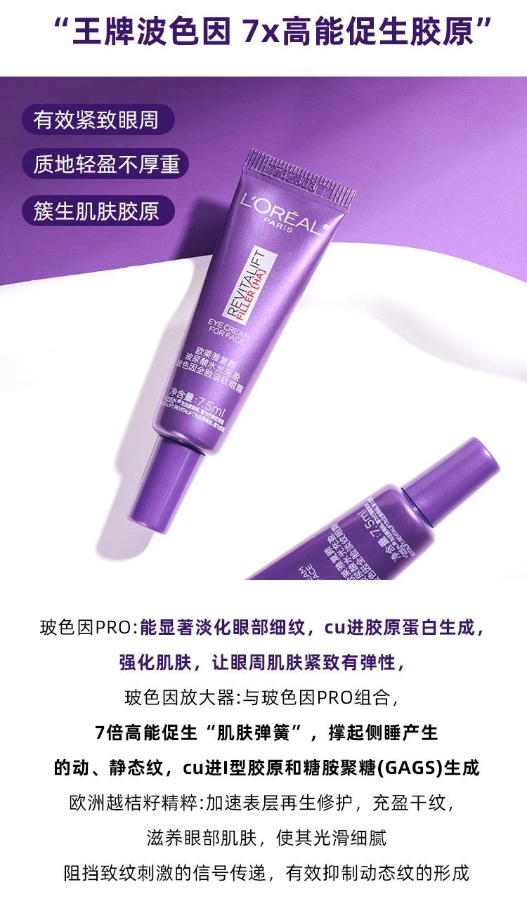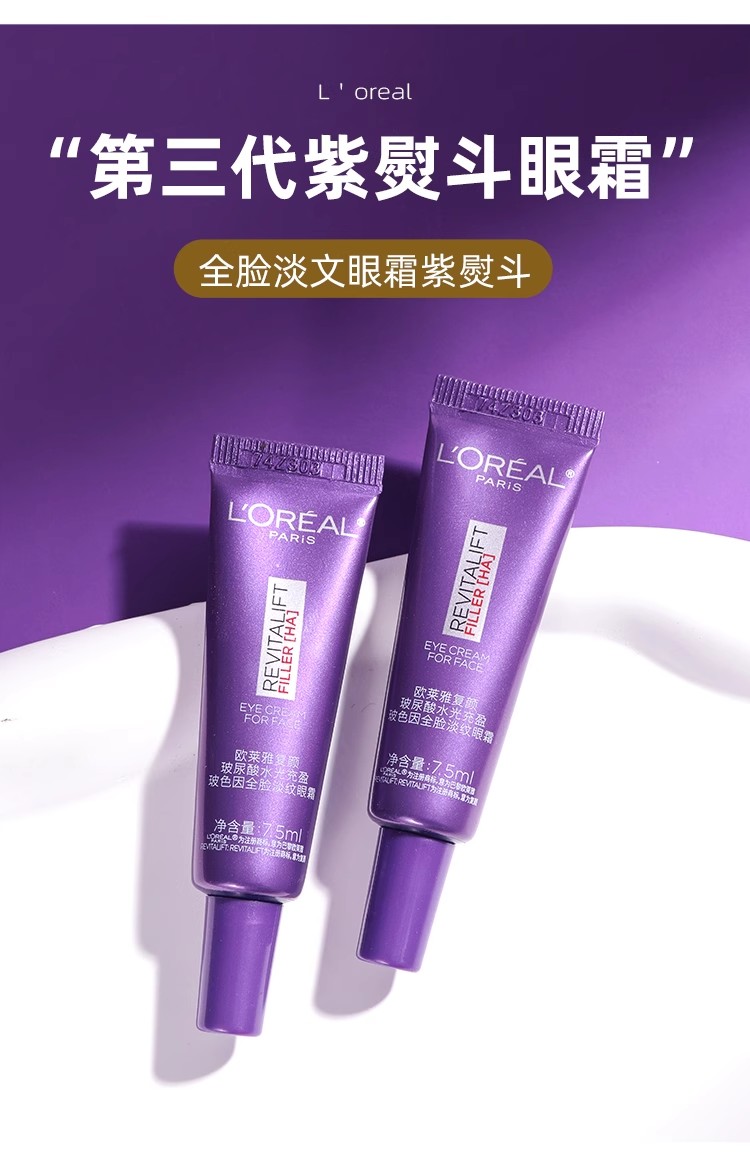 欧莱雅第三代眼霜全新升级紫熨斗复颜玻尿酸水光充盈淡化细纹中样7.5ml